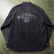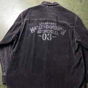 00's Harley Davidson Back Print Corduroy Shirt 00年代 ハーレーダビッドソン 太畝コーデュロイシャツ フェードブラック バックプリント 【1000A5032】【送料無料】