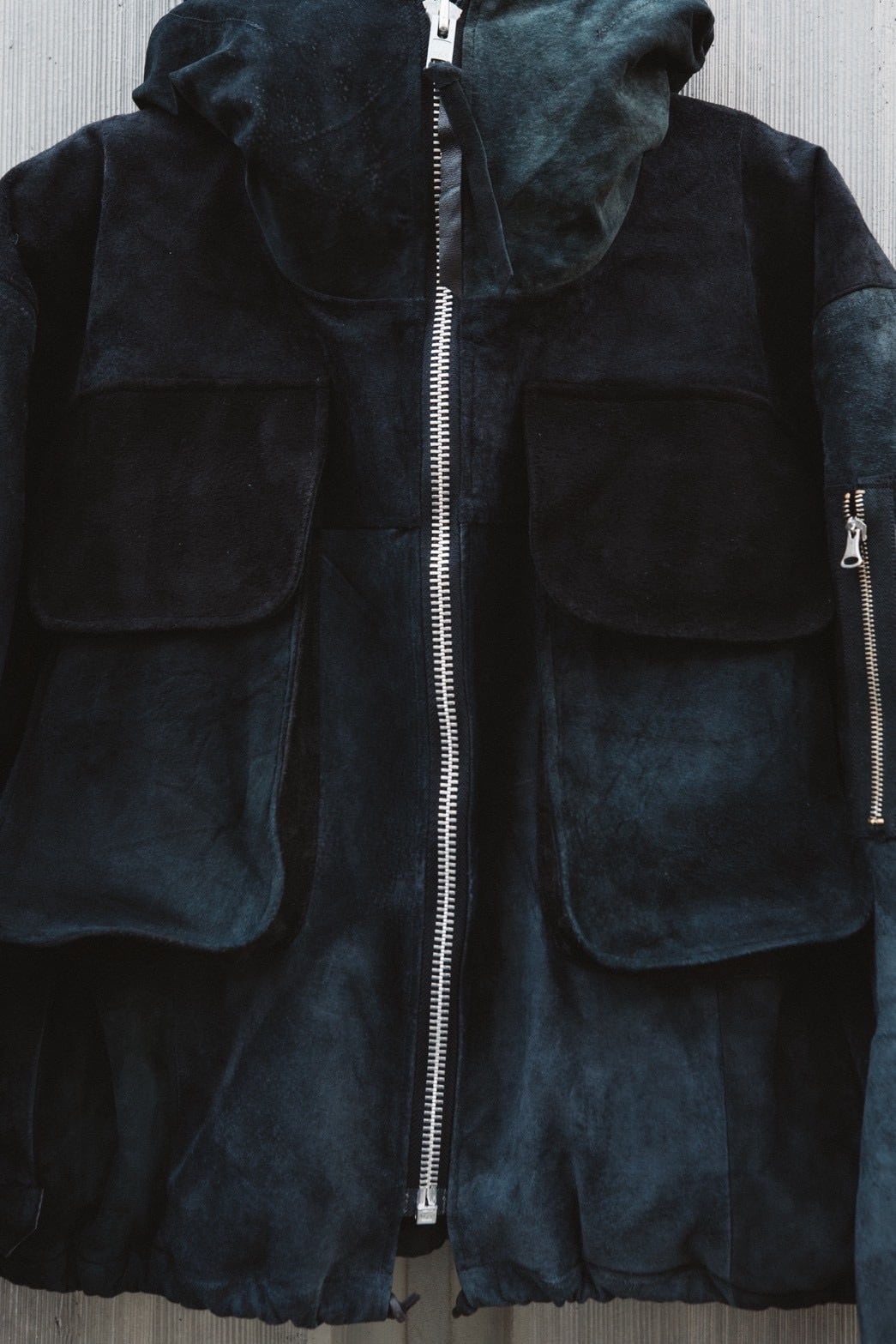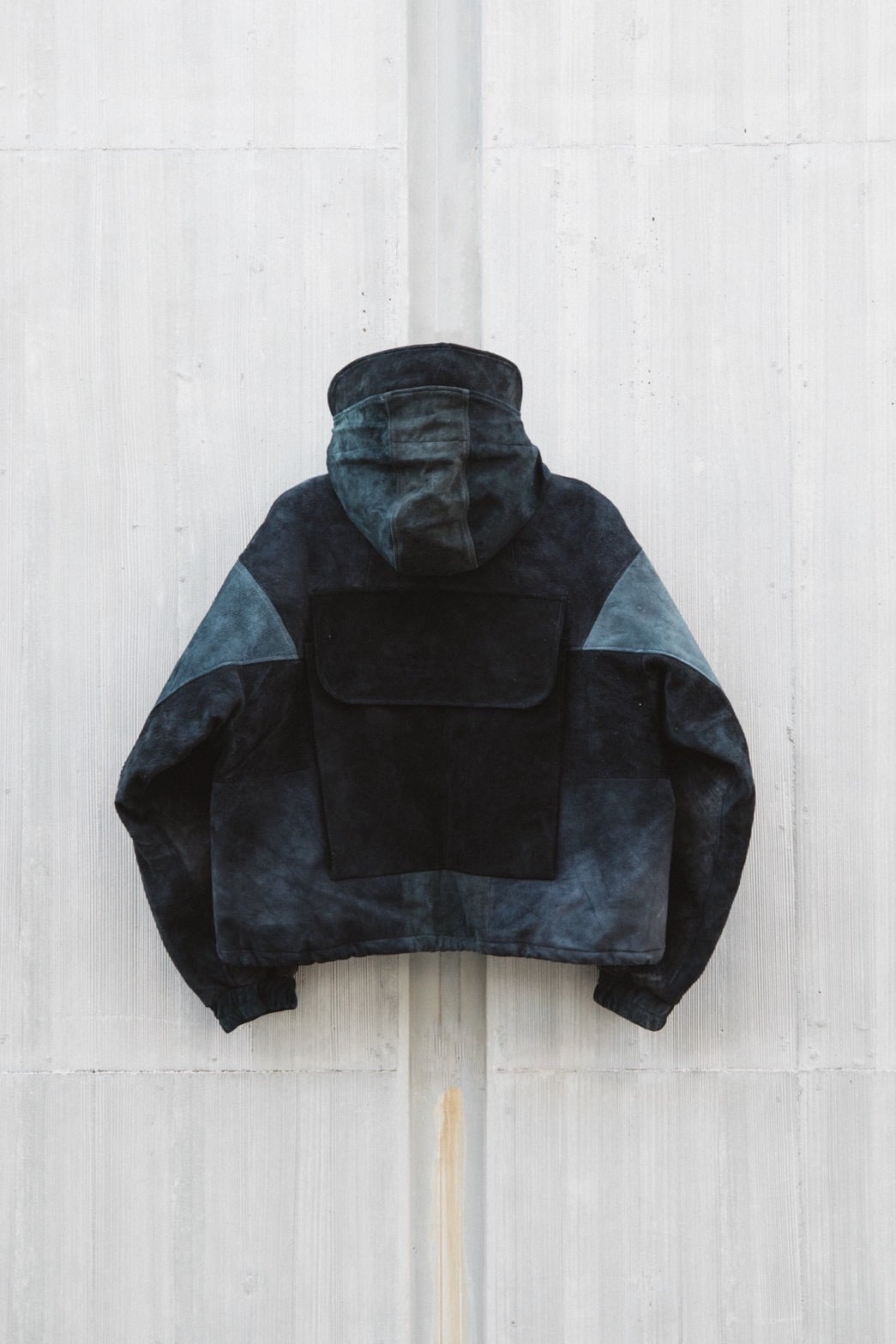 ビンテージ BLK leather jacket を3つ解体し、裁断し縫い合わせてます。