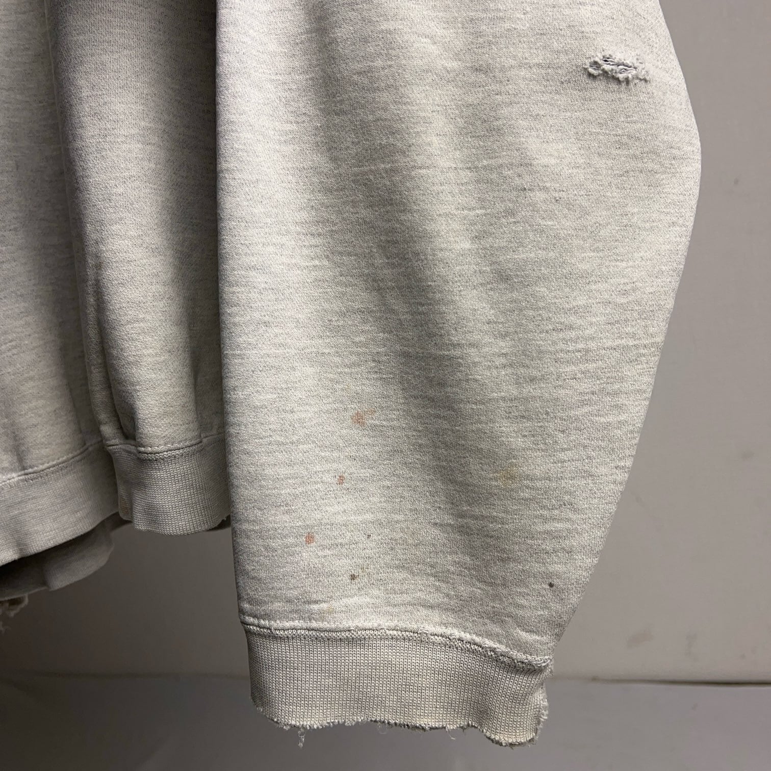 汚れやダメージ具合も相まって50年代などの古いスウェットのようなオーラを放っています。