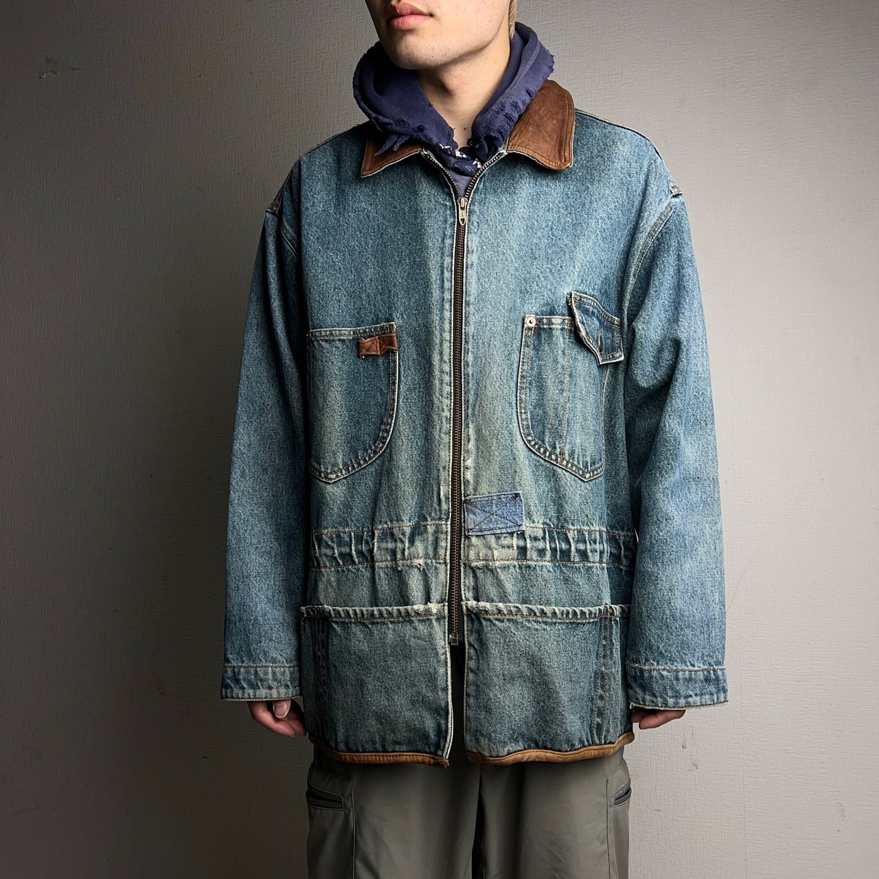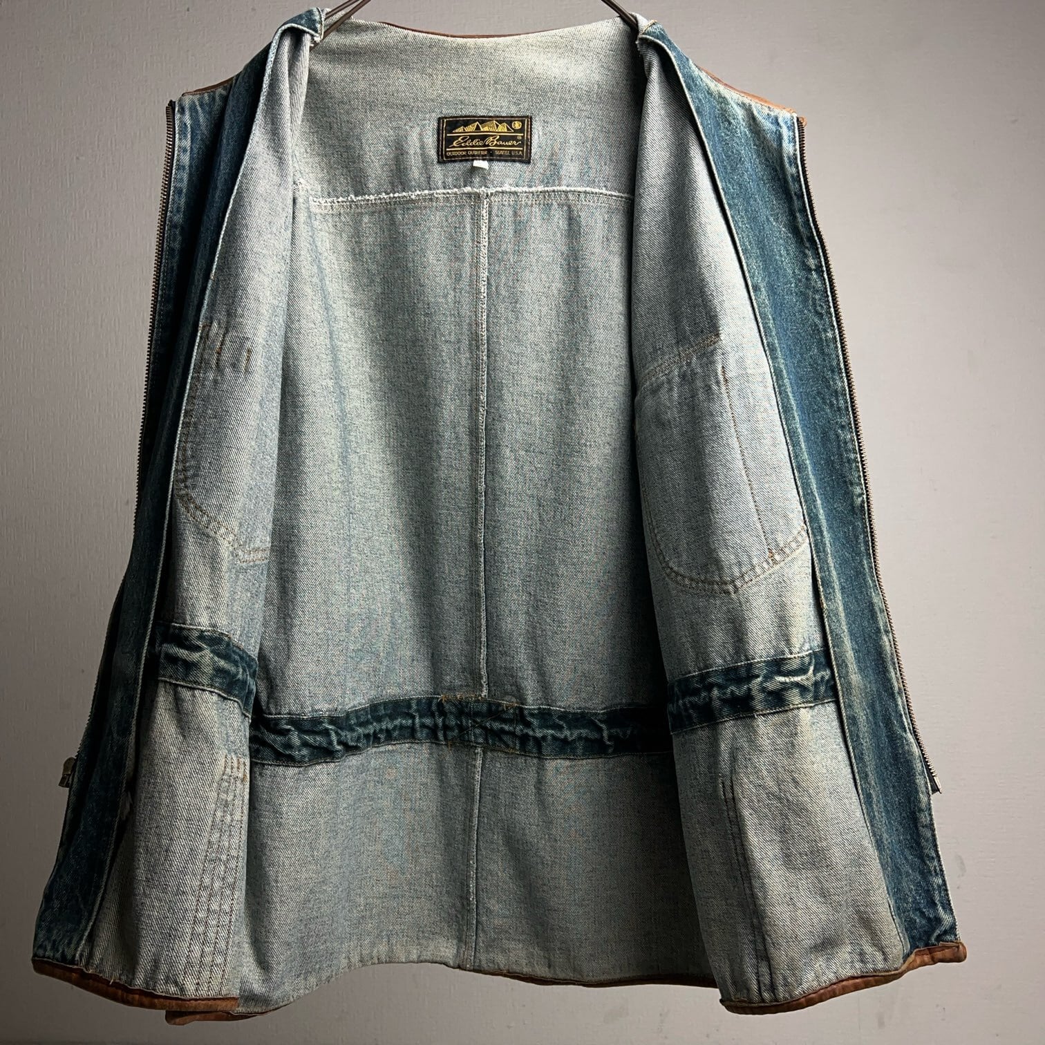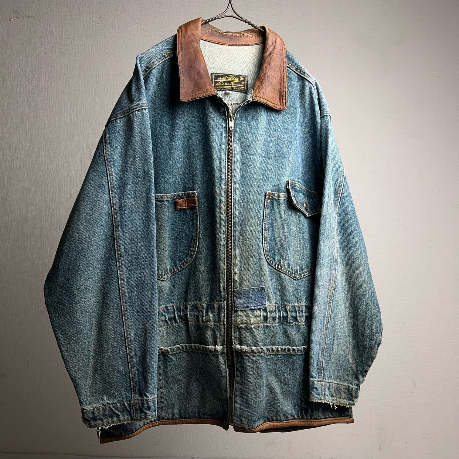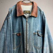80's~90's Eddie Bauer Denim×Leather Jacket 80年代 90年代 エディバウアー デニム×レザー ジャケット カバーオール 【1000A5111】【送料無料】