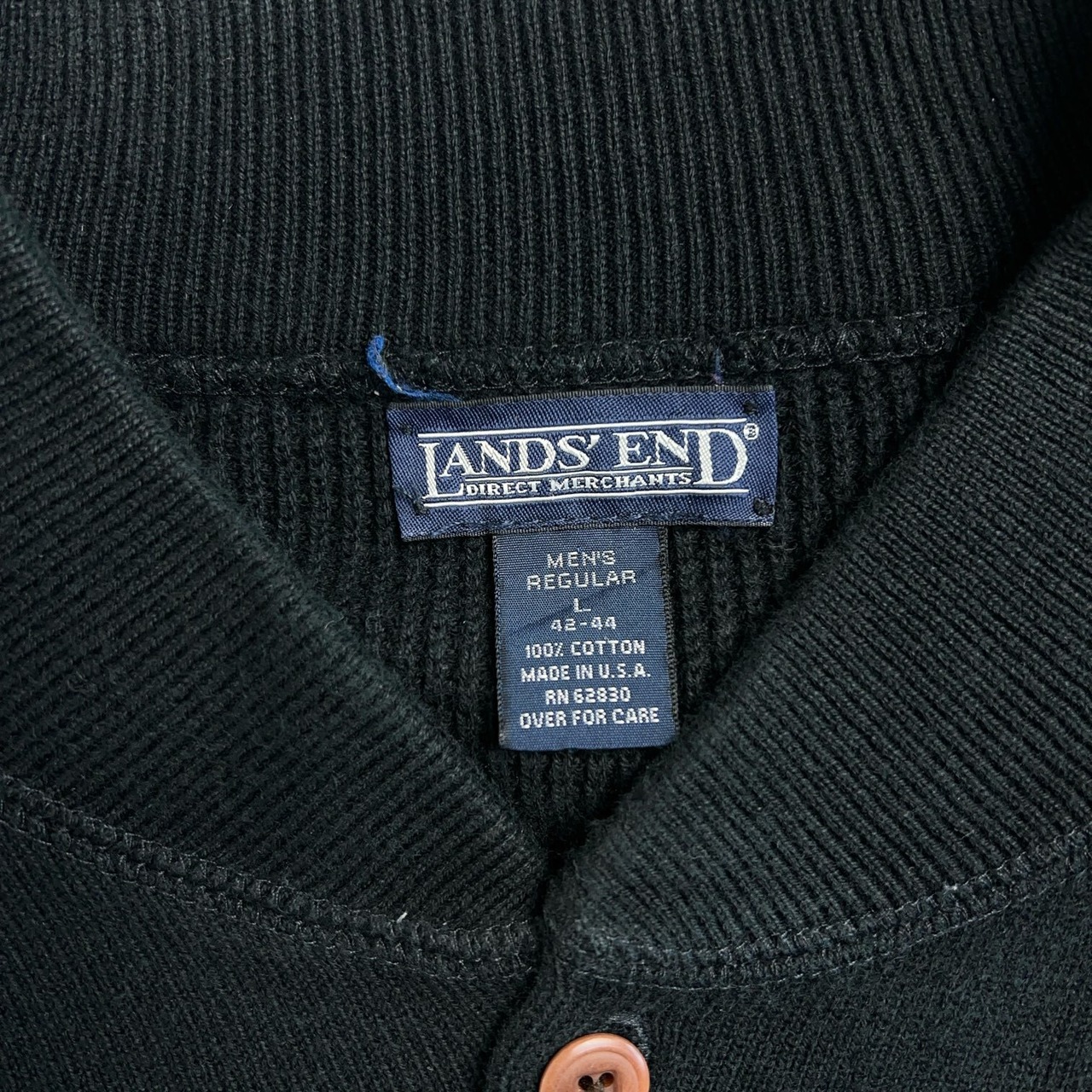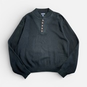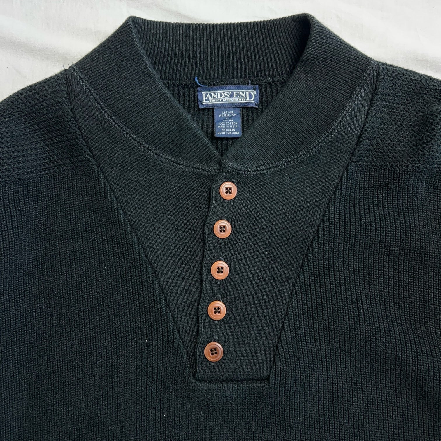 90's LANDS'END Military 5buttons Cotton Sweater MADE IN USA 90年代 ランズエンド 5ボタン ミリタリー コットンニットセーター 黒 ブラック アメリカ製 【1000A5121】