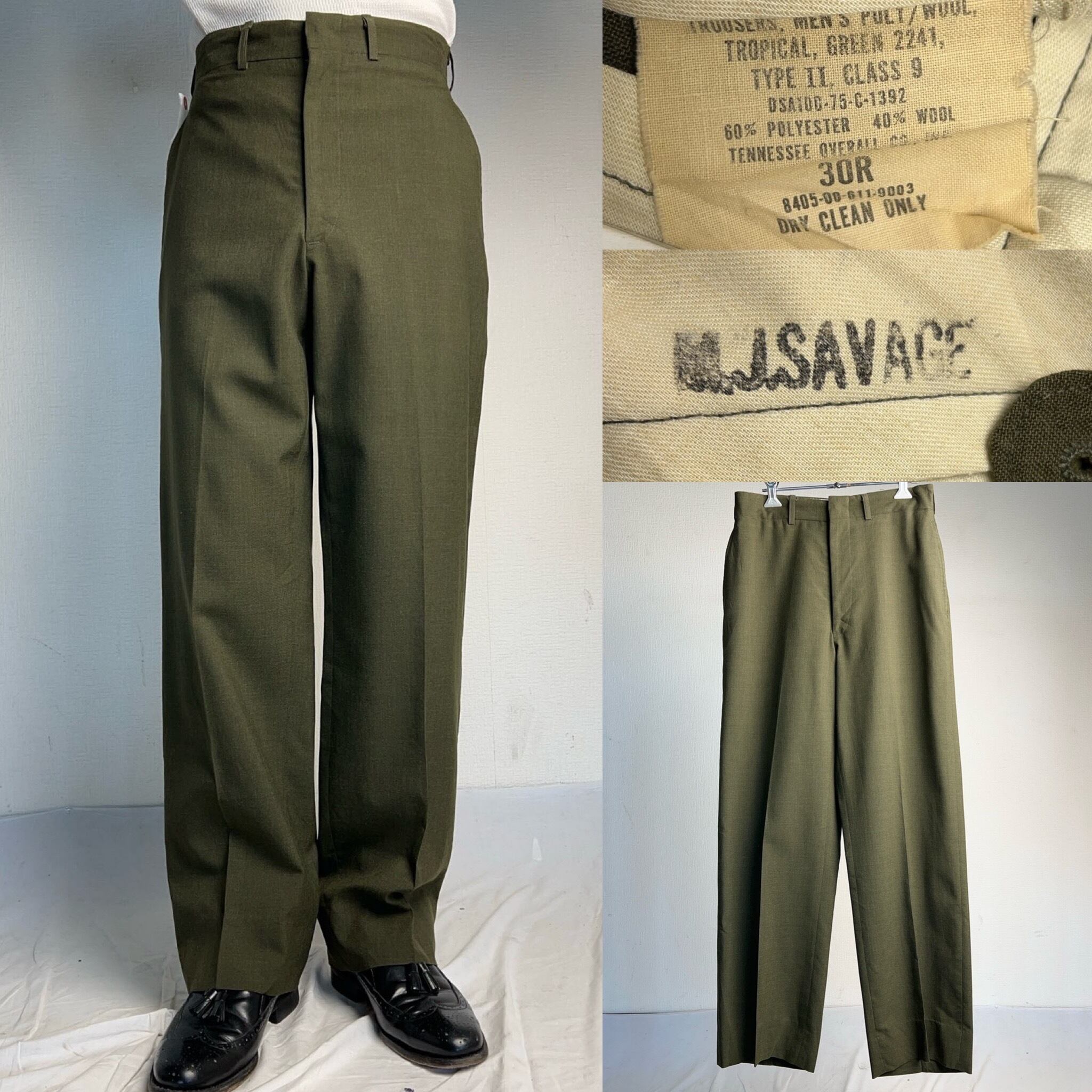 1970's U.S.MILITALY WOOL SLACKS TROPICAL GREEN W30 70年代 米軍 アメリカ軍 スラックス ミリタリー ウール トロピカルグリーン カーキ 【1000A5125】【送料無料】