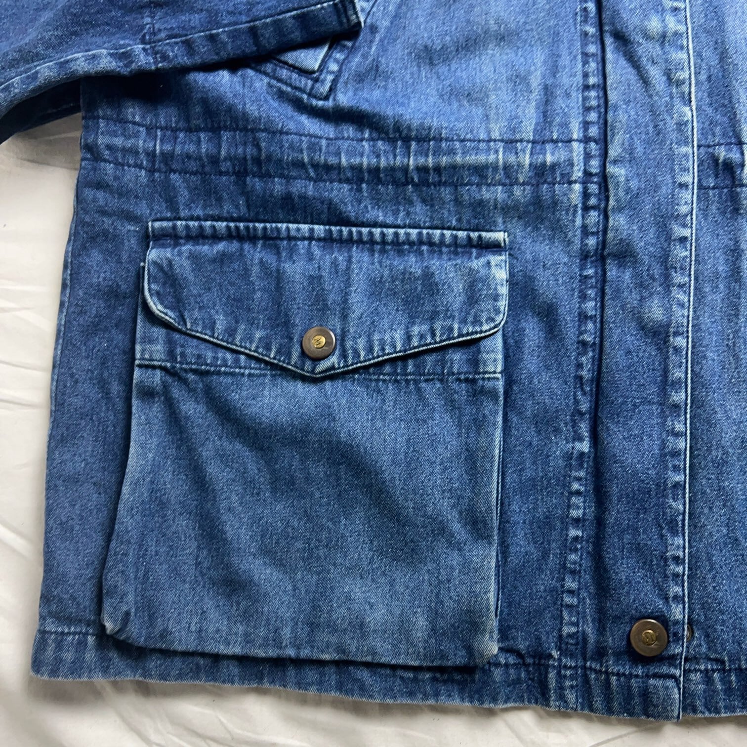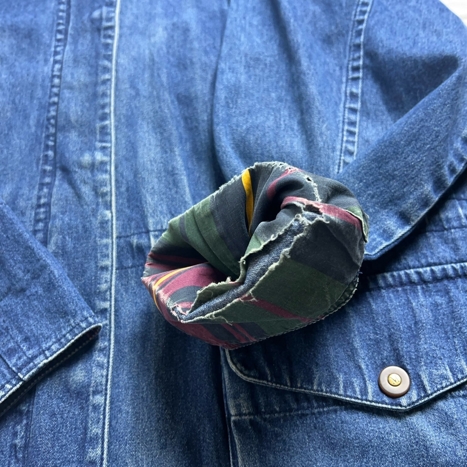 くたっとした柔らかなデニム生地で肩に馴染みやすく、着たときにとても美しいシルエットとなります。カバーオールのようなハンティングジャケットのような間をとったようなデザインも非常にオシャレ。
