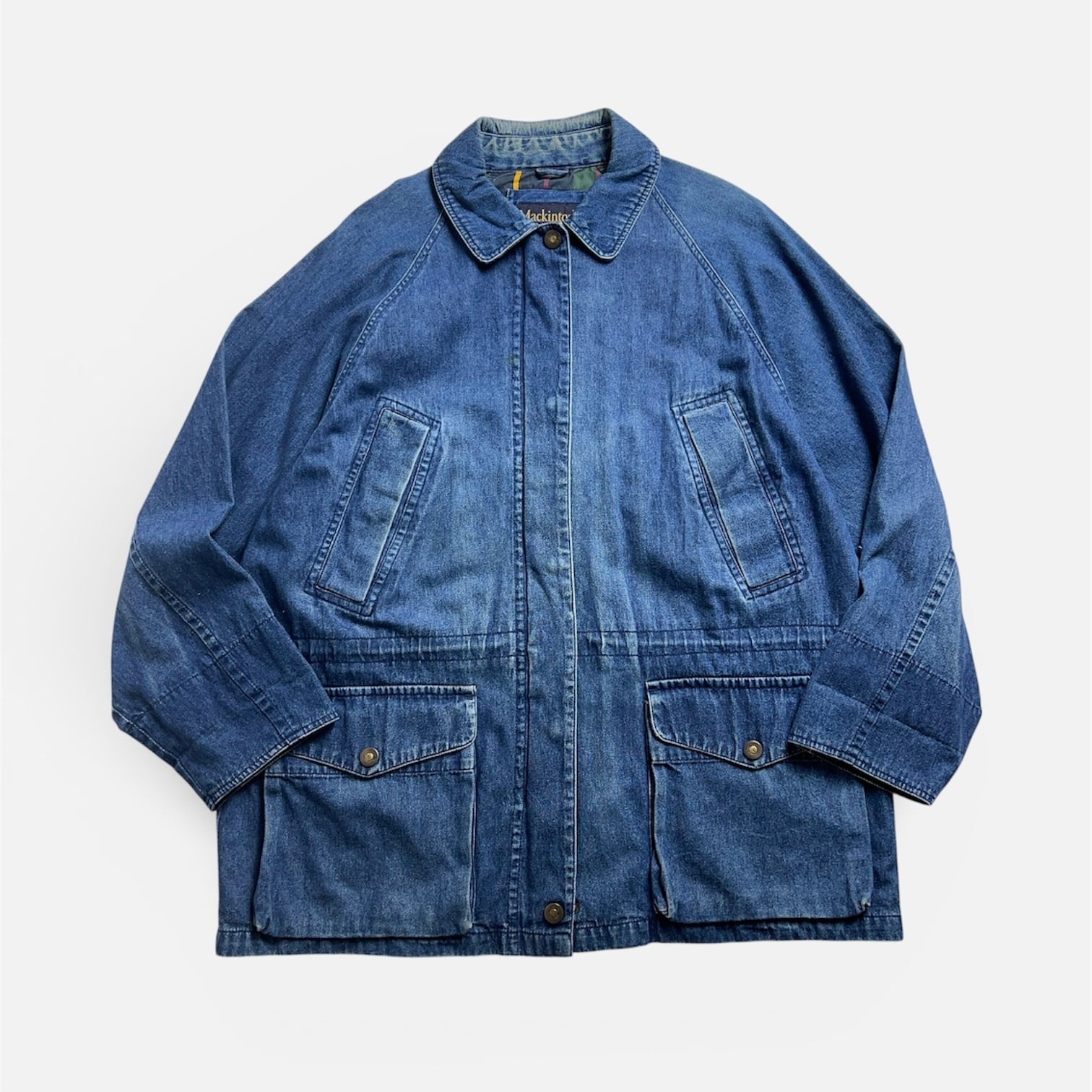 90's"Mackintosh" Denim Hunting Jacket 90年代 マッキントッシュ デニム カバーオール ハンティングジャケット ミドル丈 チョアジャケット SIZE L【1000A5130】【送料無料】