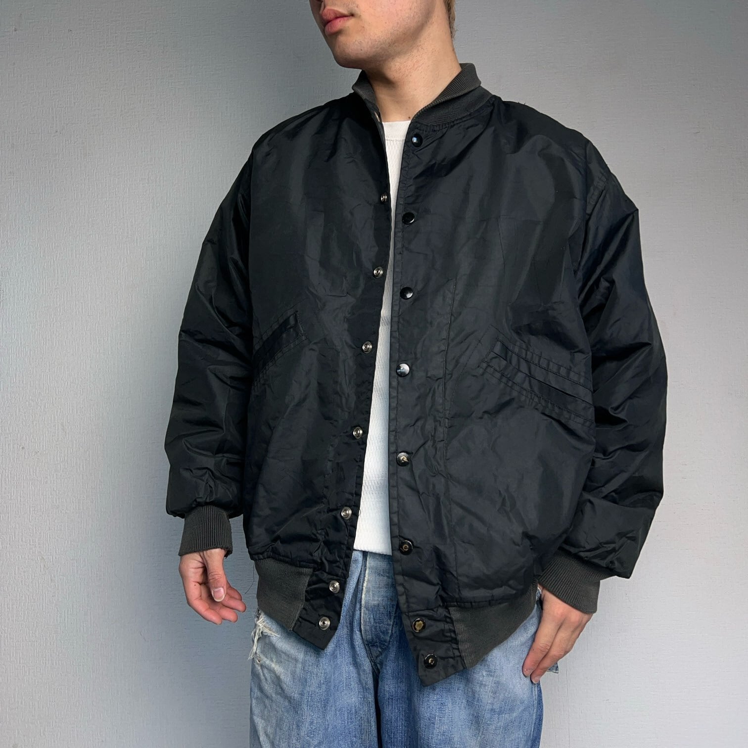 ALL BLACK 1960's Wilson Quilting Nylon Blouson BLK 60年代 ウィルソン ナイロンジャケット ブルゾン 黒 ブラック 【1000A5140】【送料無料】