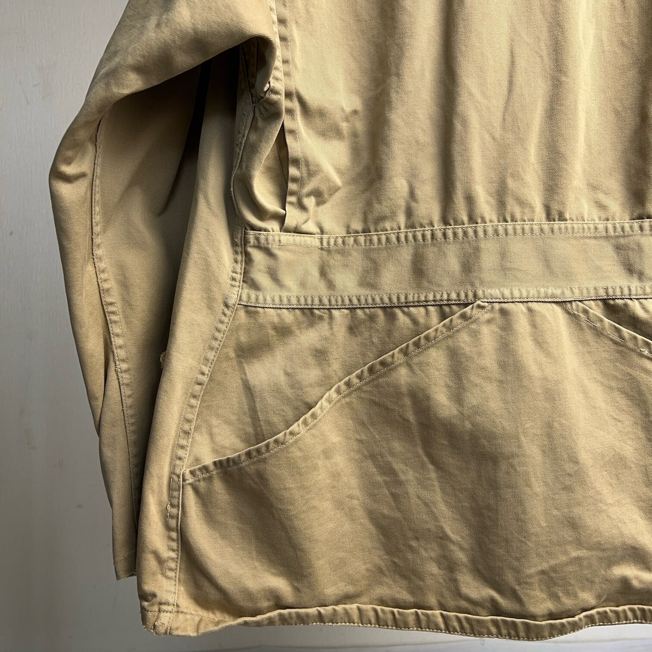 ハンティングジャケットといえばもっと重厚でポケットが多いイメージですが、こちら比較的シンプルめ。