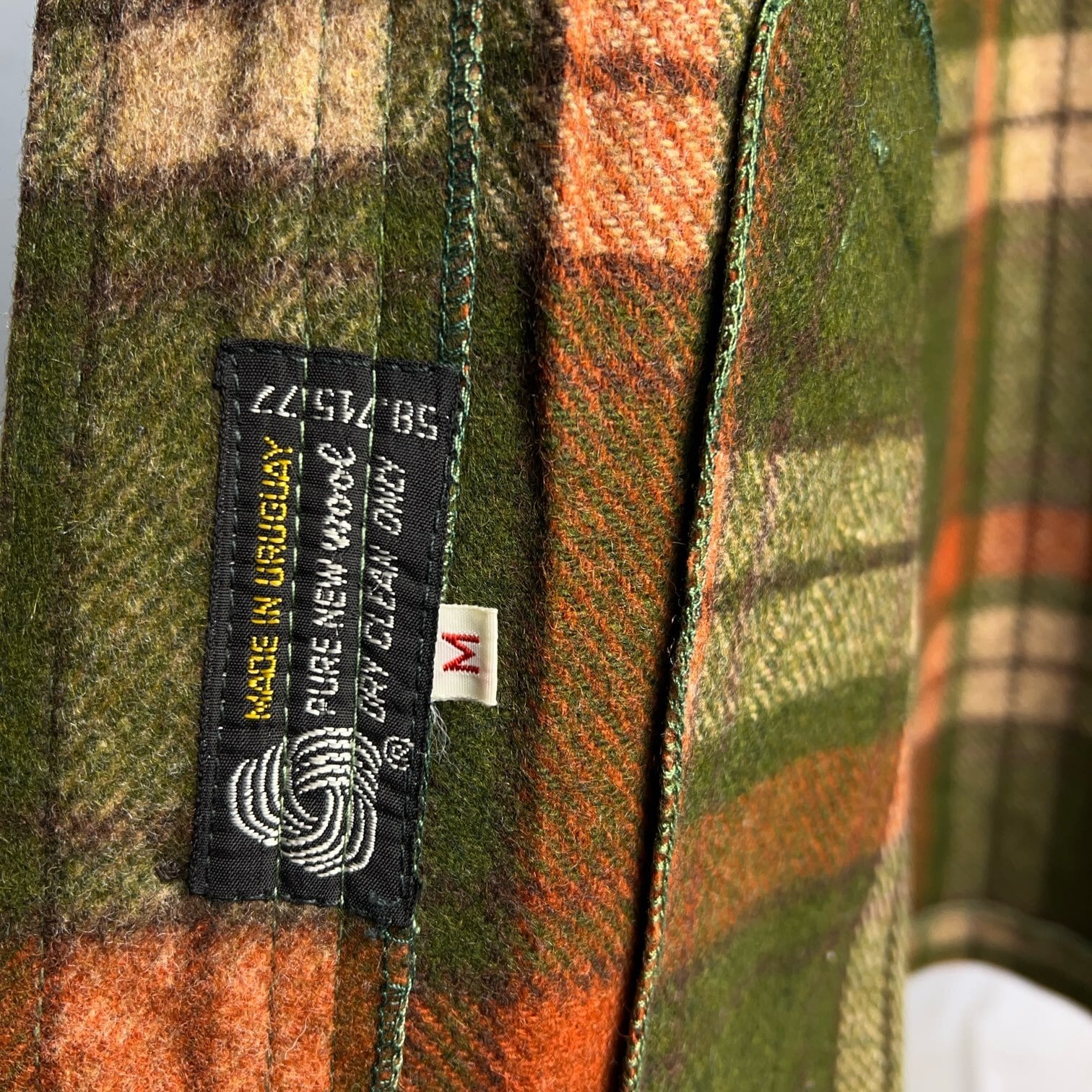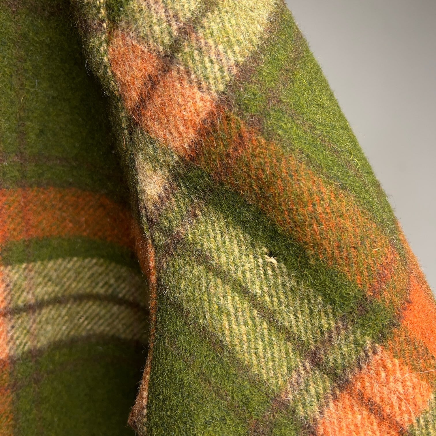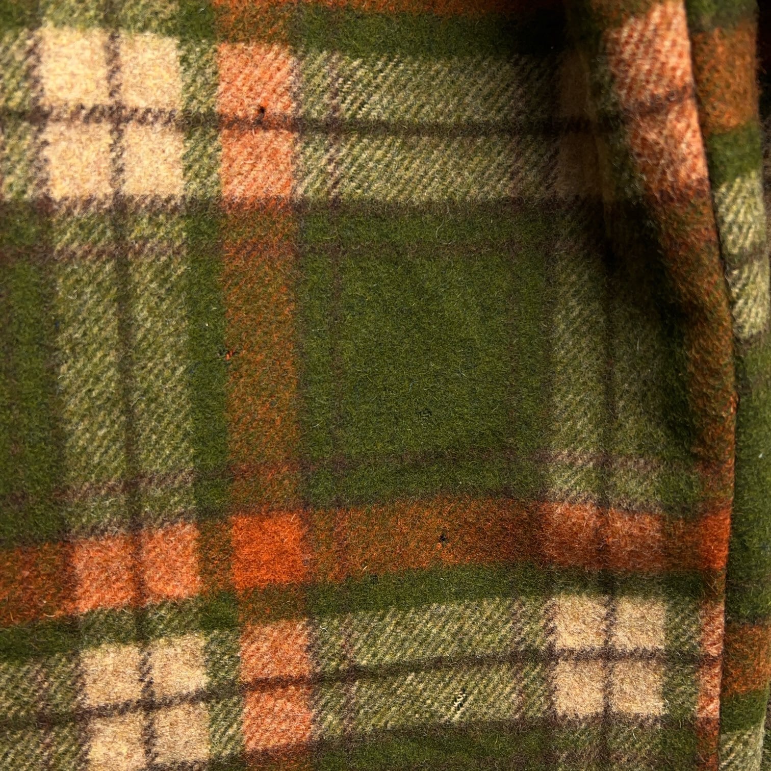 深いグリーンとオレンジのタータンチェック柄でとても渋い色合いです。