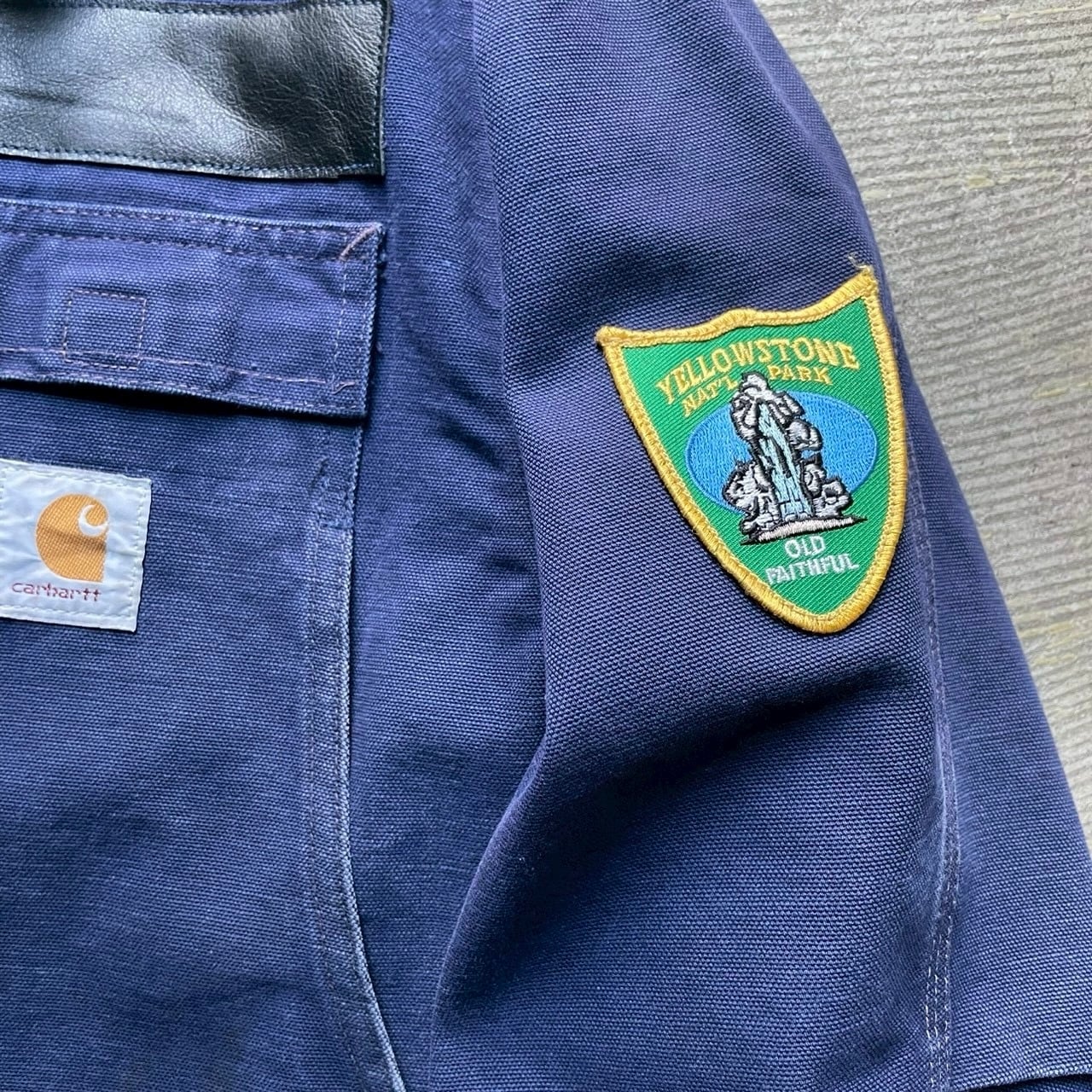 背中には存在感抜群のスタジャンワッペンを大胆に配置し、Carharttに遊び心をプラス。