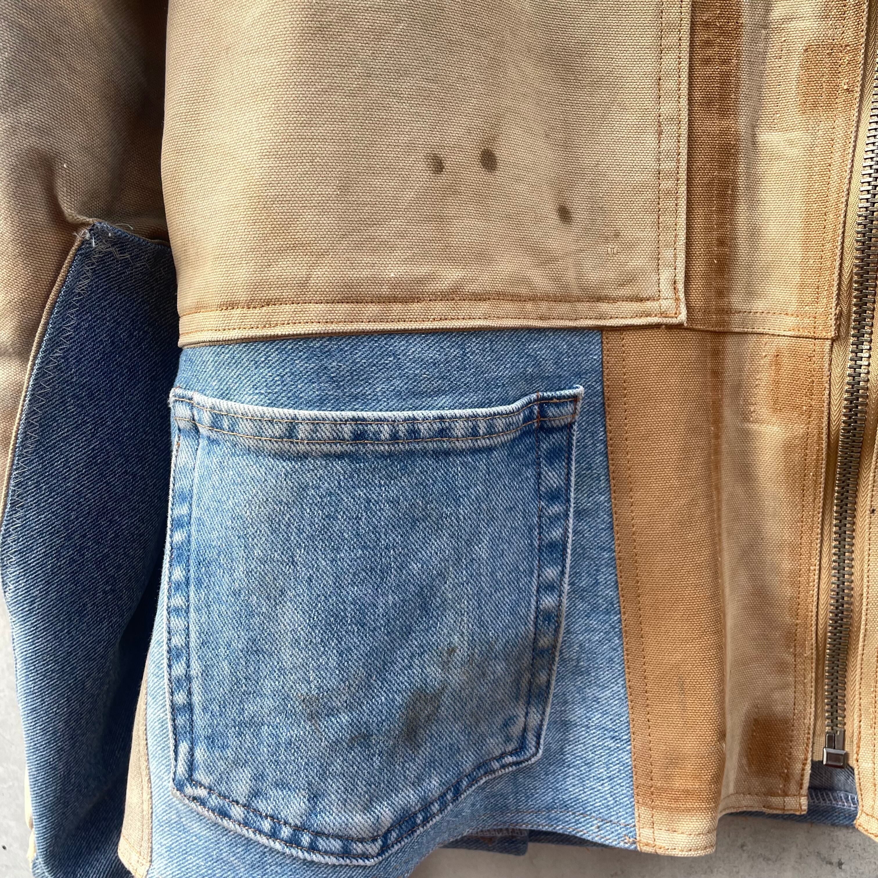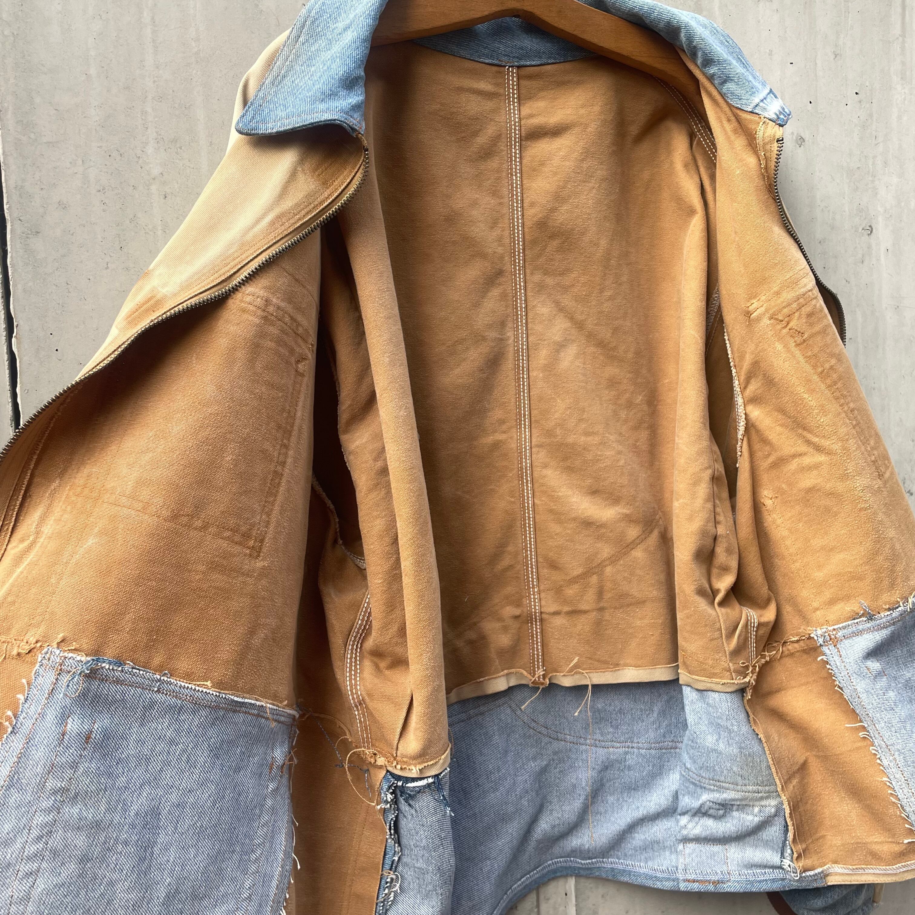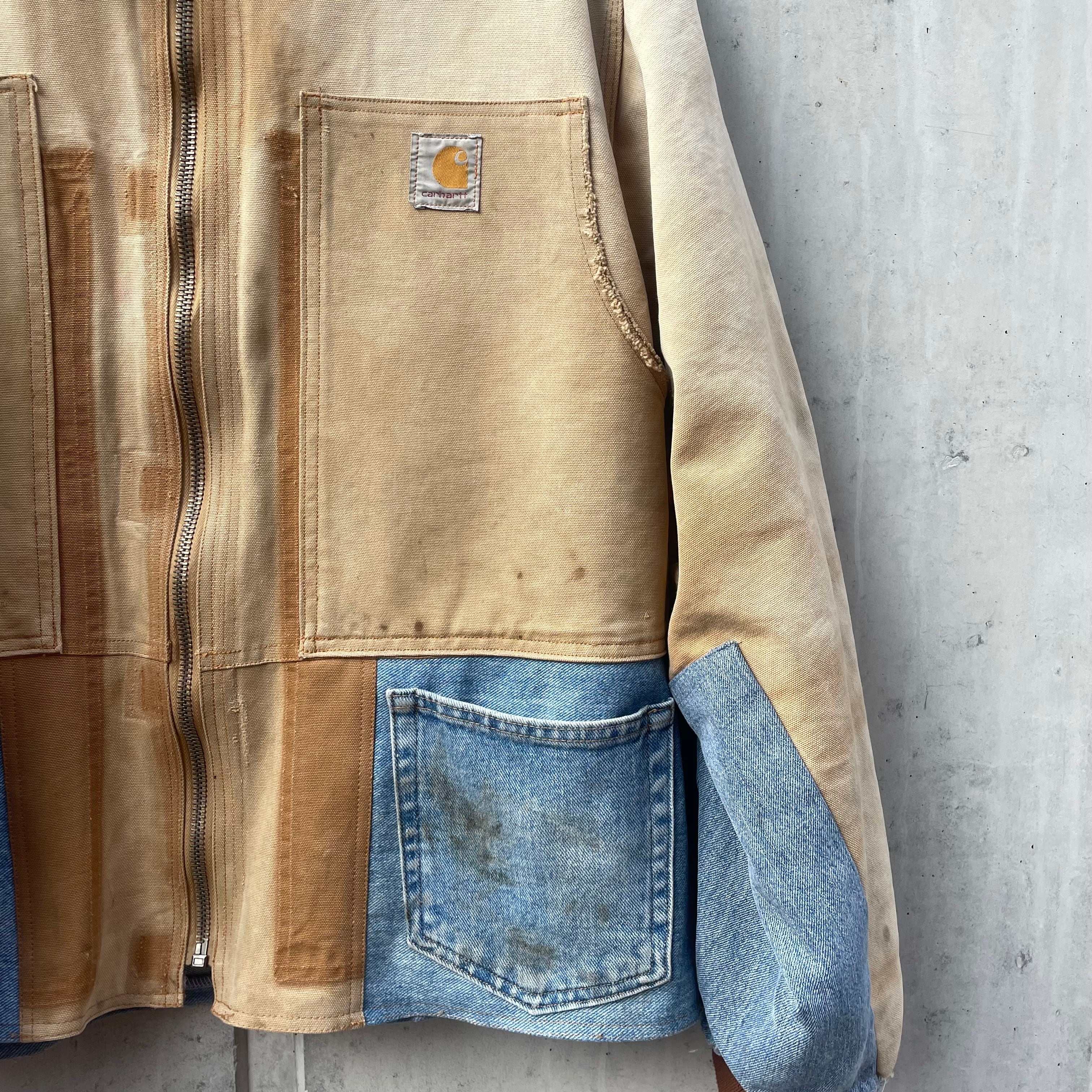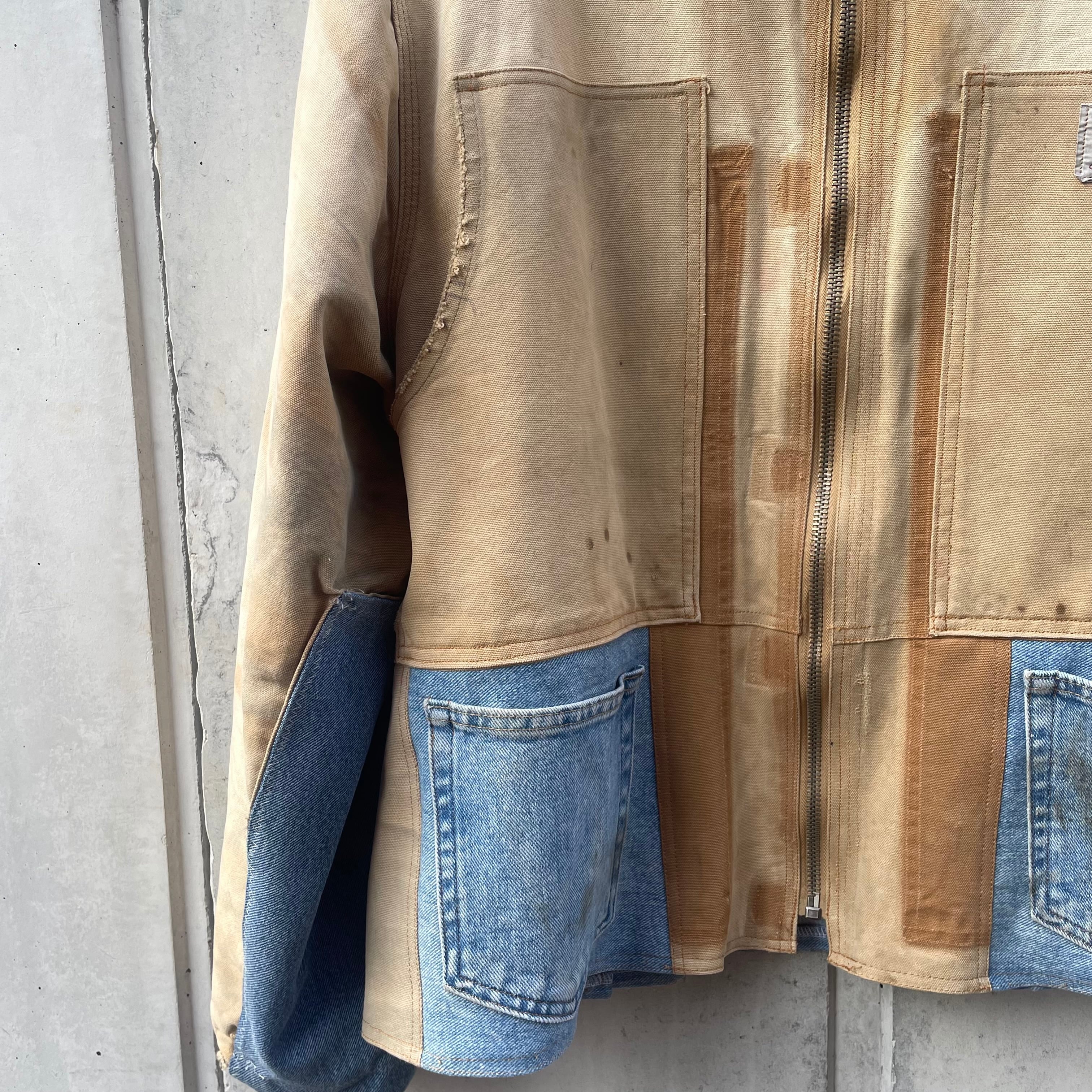 Carharttのワークジャケットに、デニムのカジュアルさを掛け合わせ、リメイクでしか作れない1着です。
