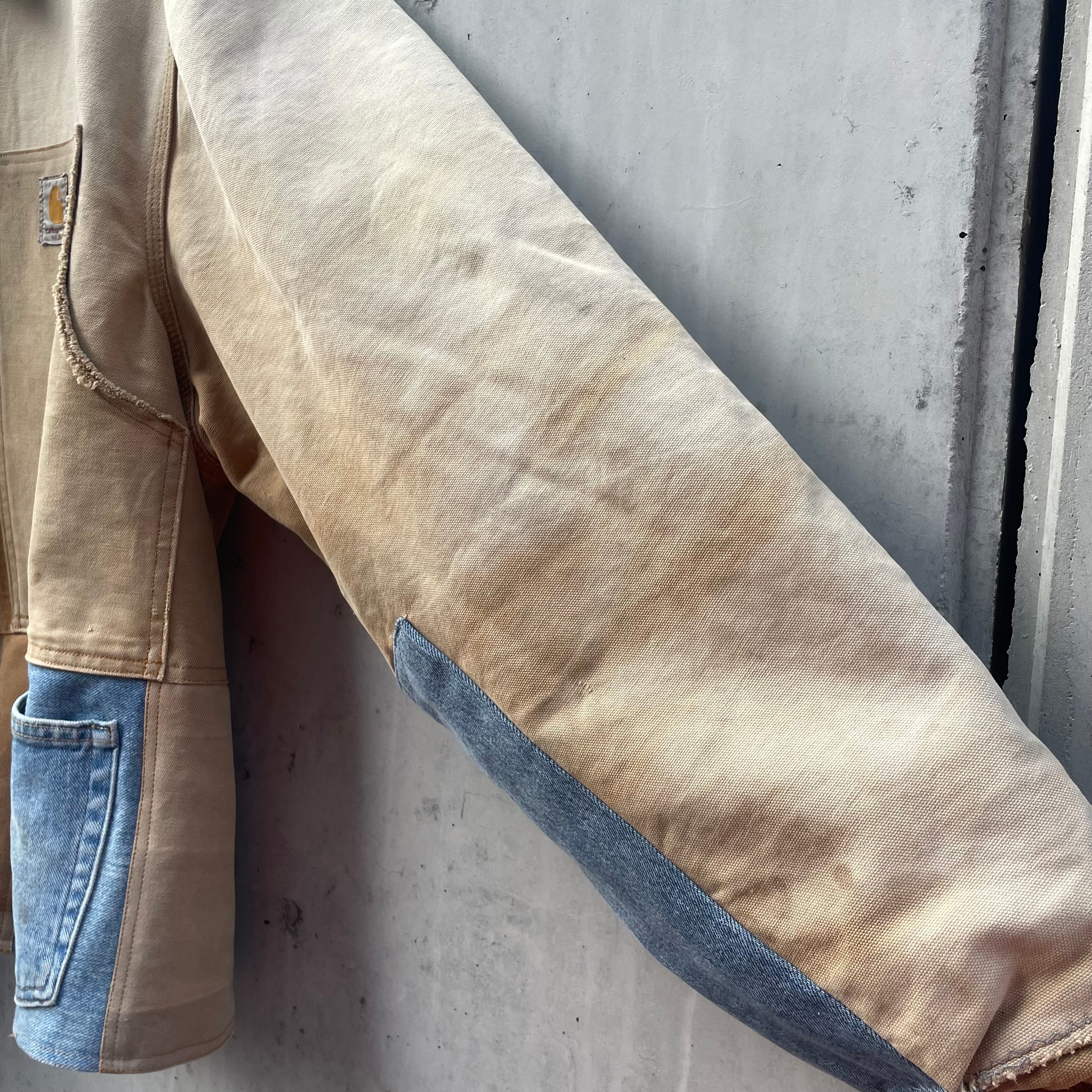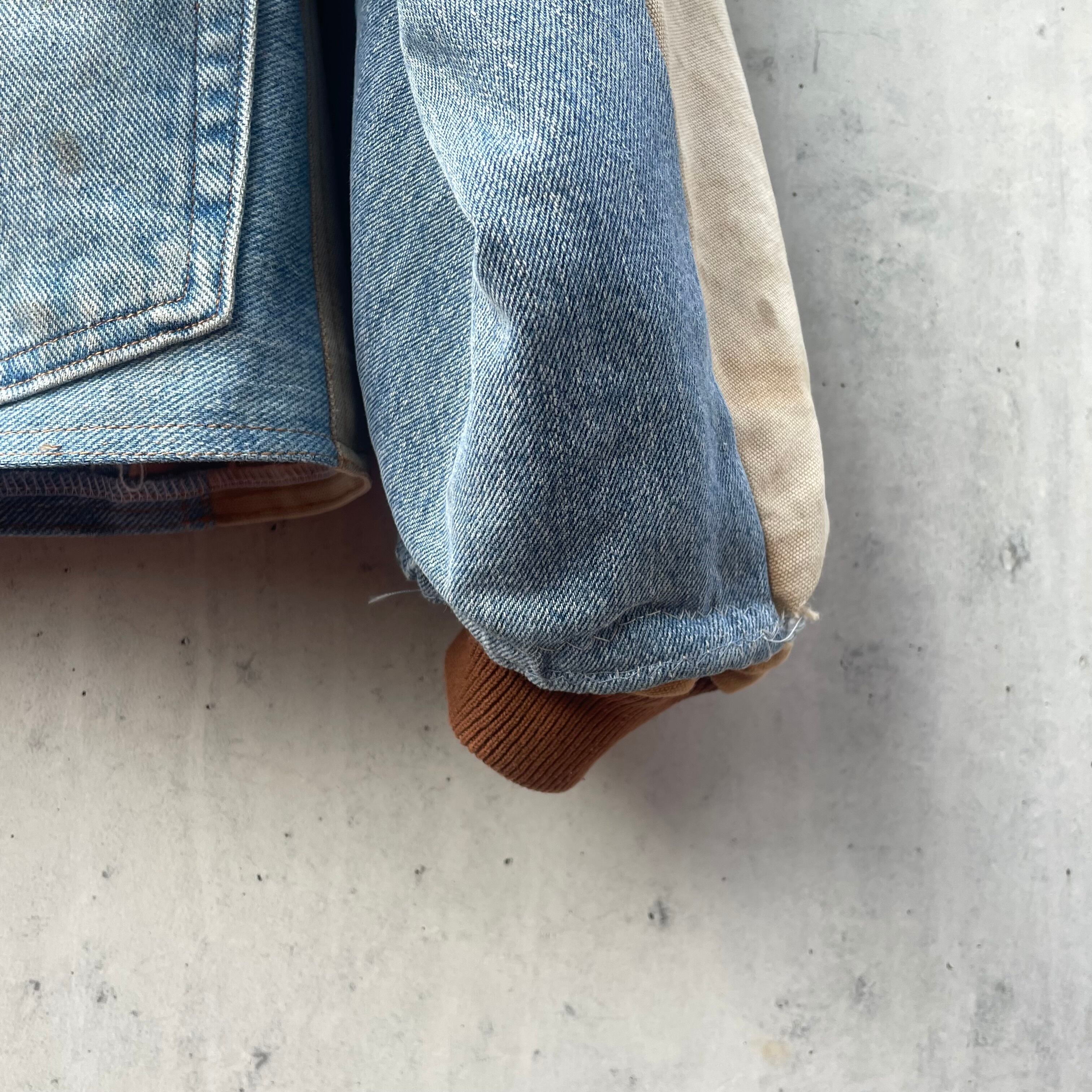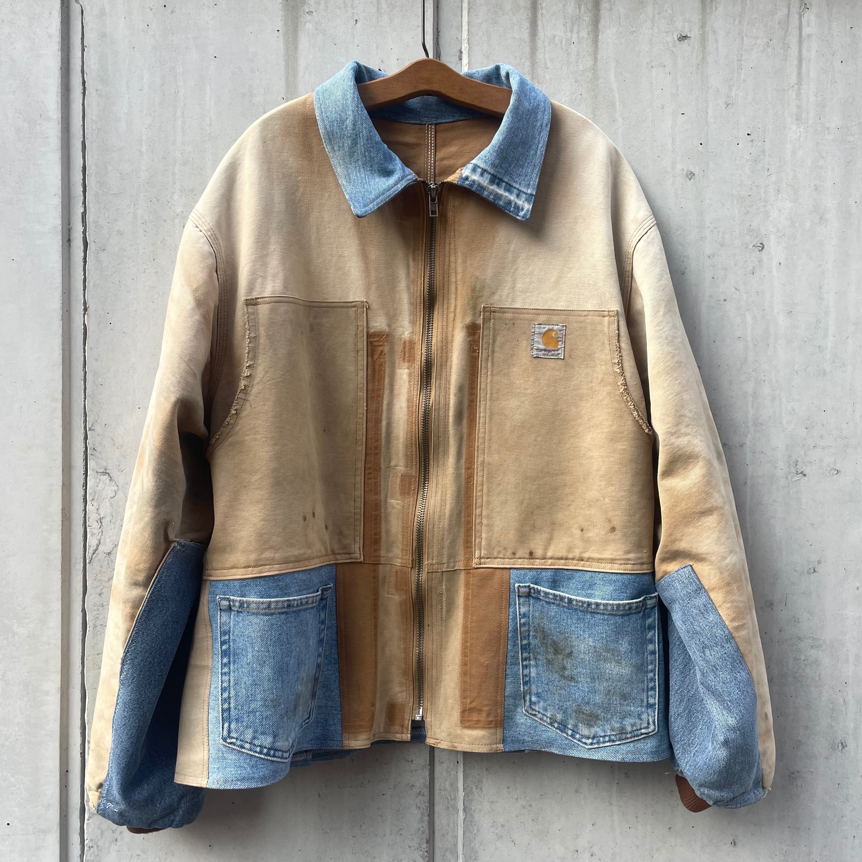 Carharttのワークジャケットに、デニムのカジュアルさを掛け合わせ、リメイクでしか作れない1着です。