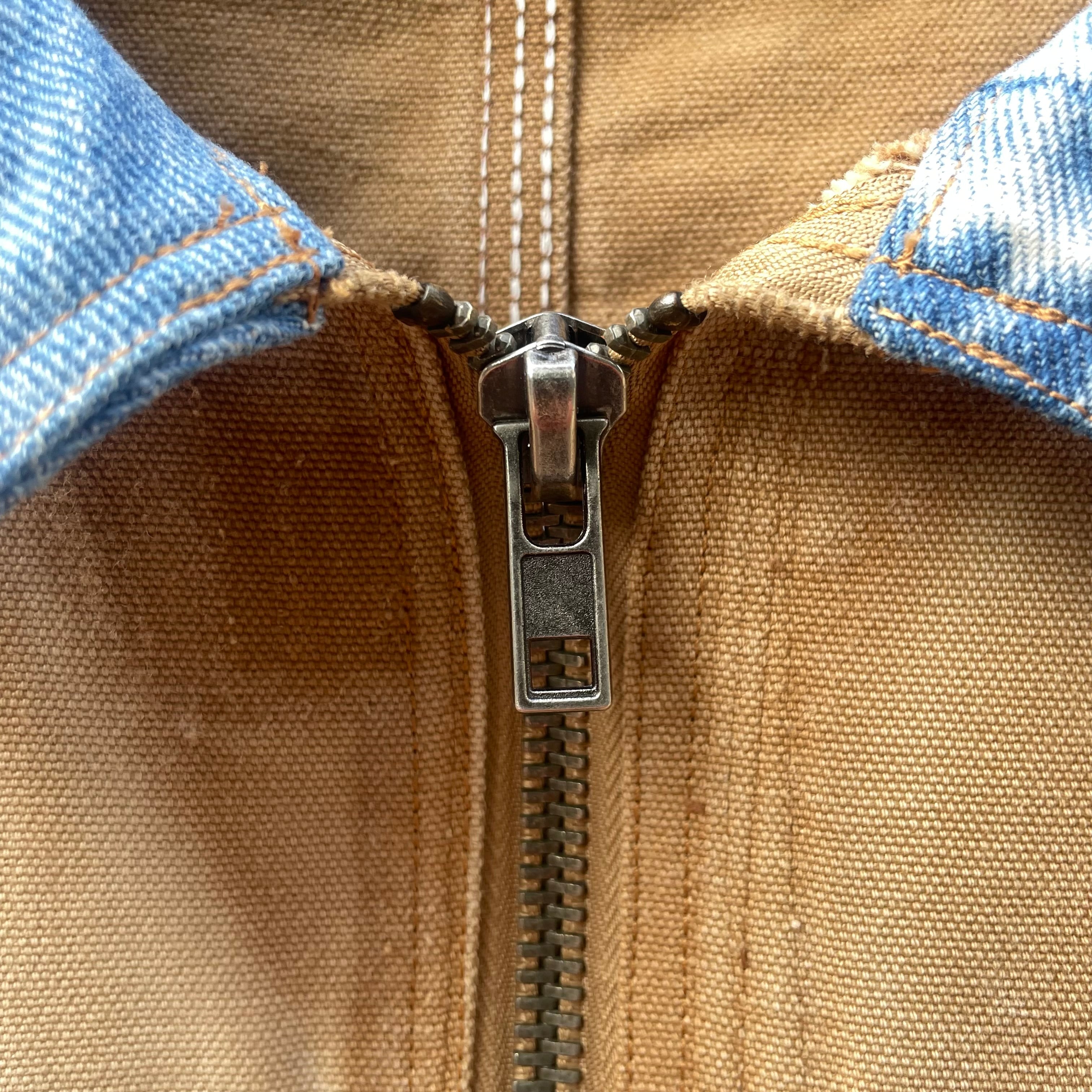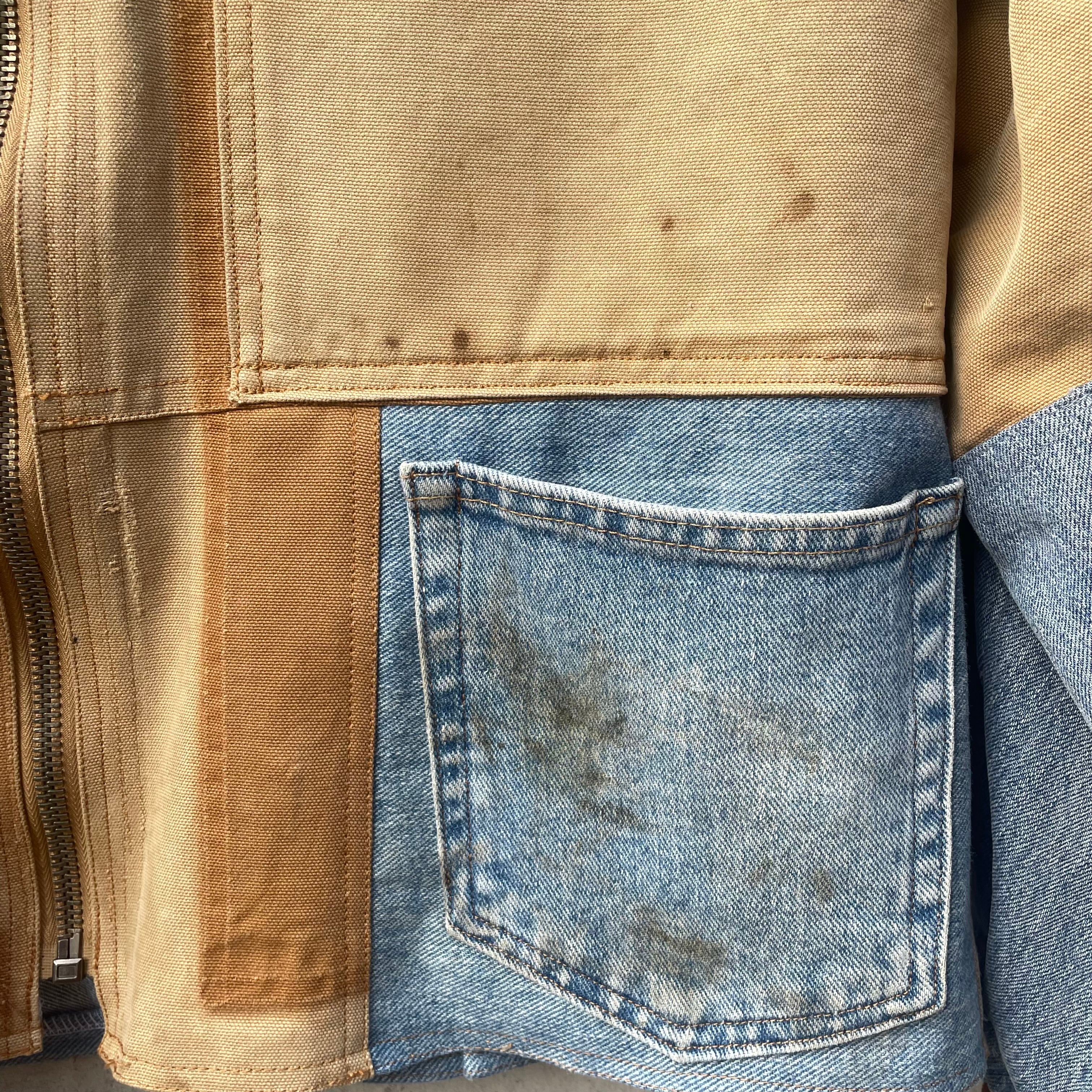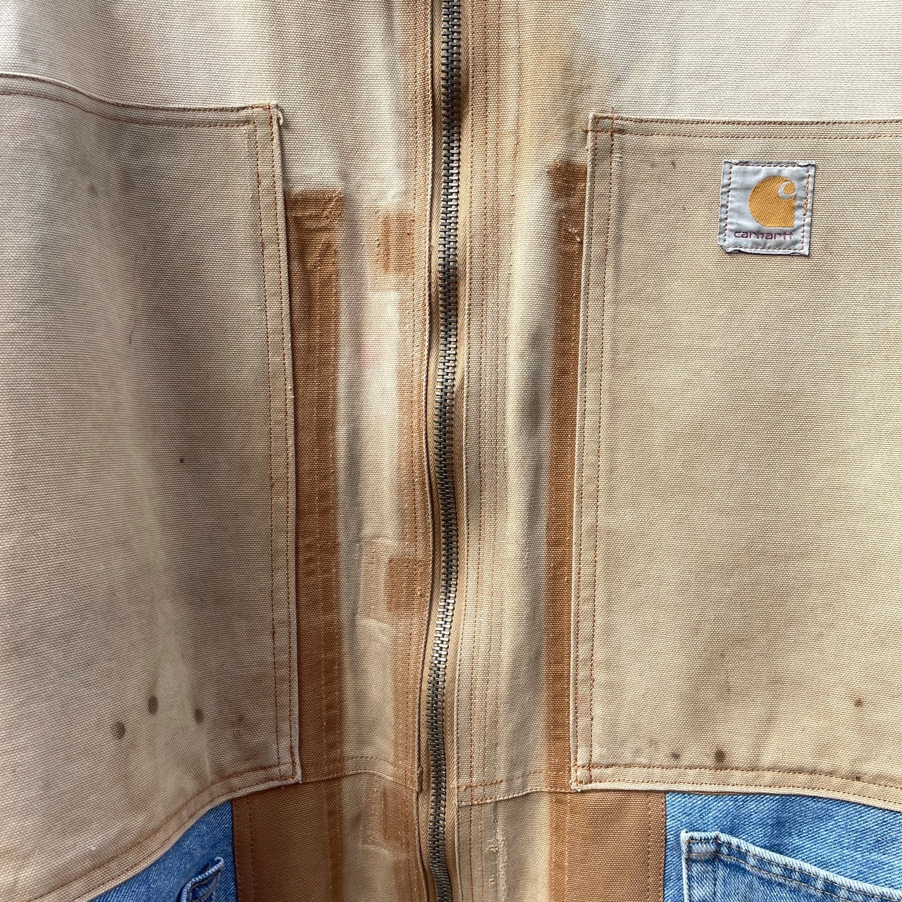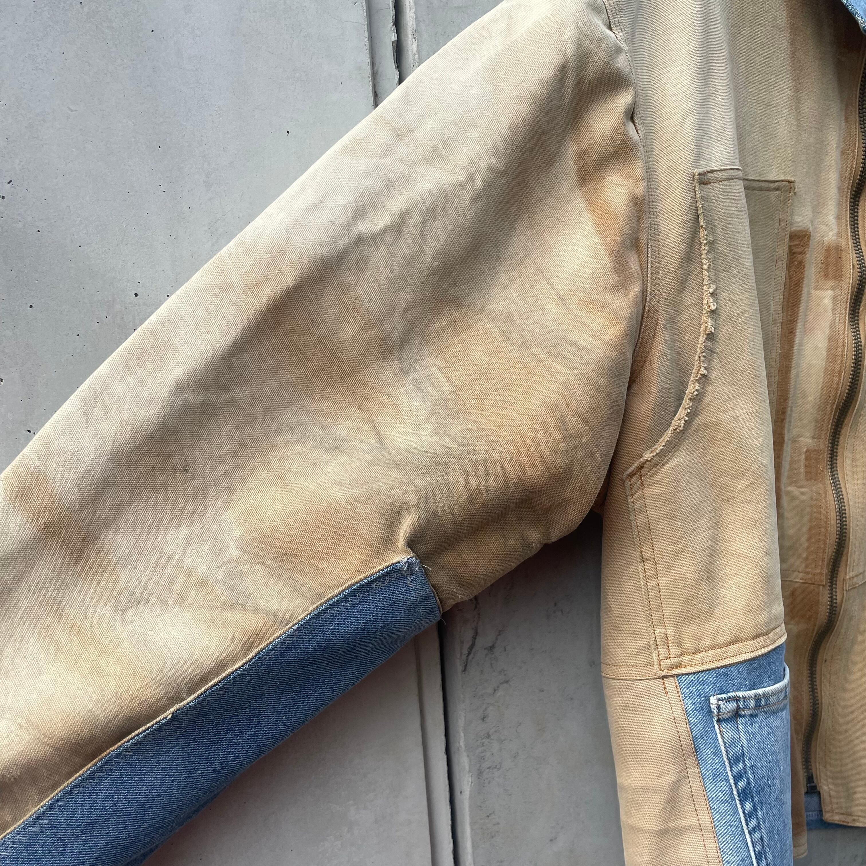Carharttのワークジャケットに、デニムのカジュアルさを掛け合わせ、リメイクでしか作れない1着です。