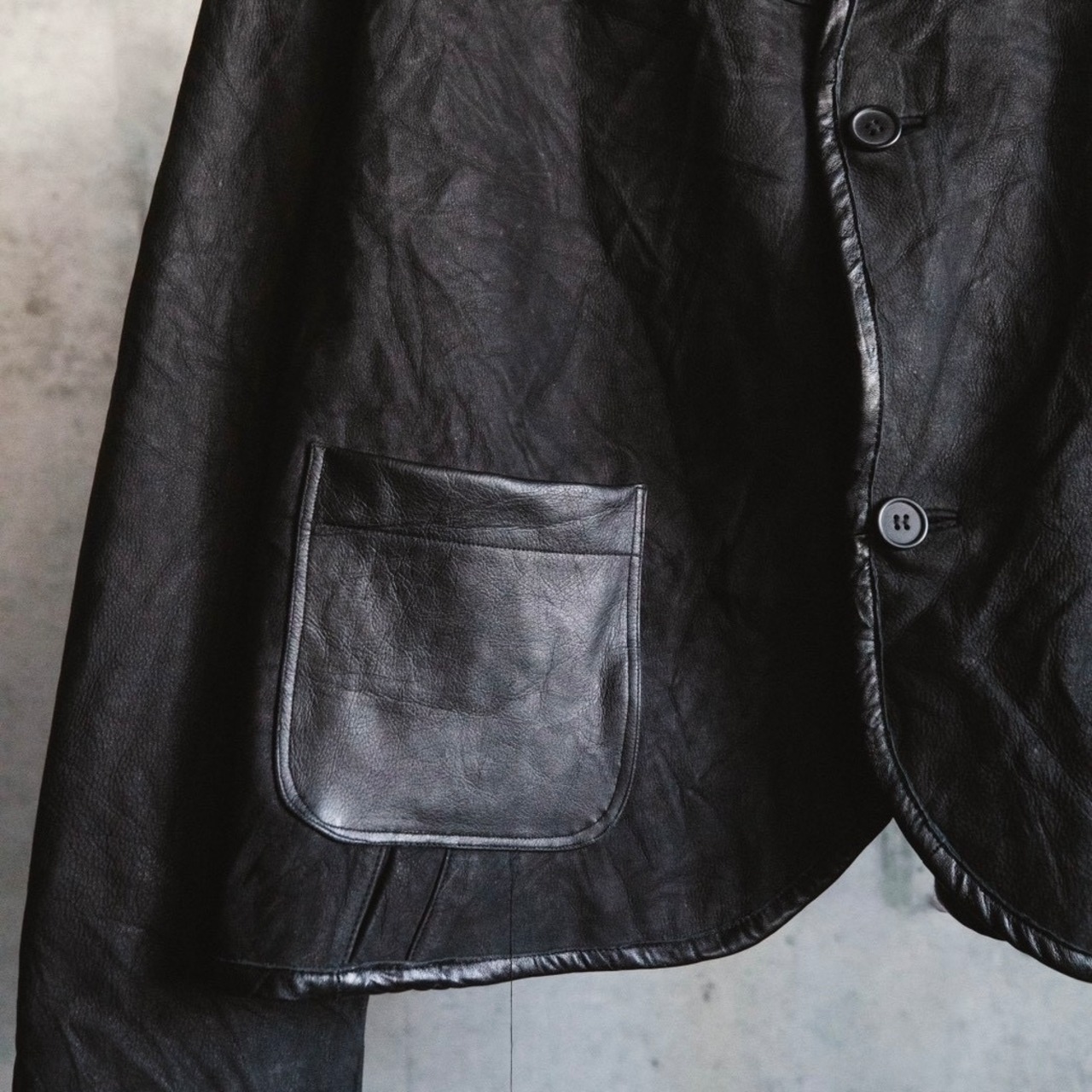 こちらの商品はレザージャケットをリメイクし、カーディガンの形に再構築しました。