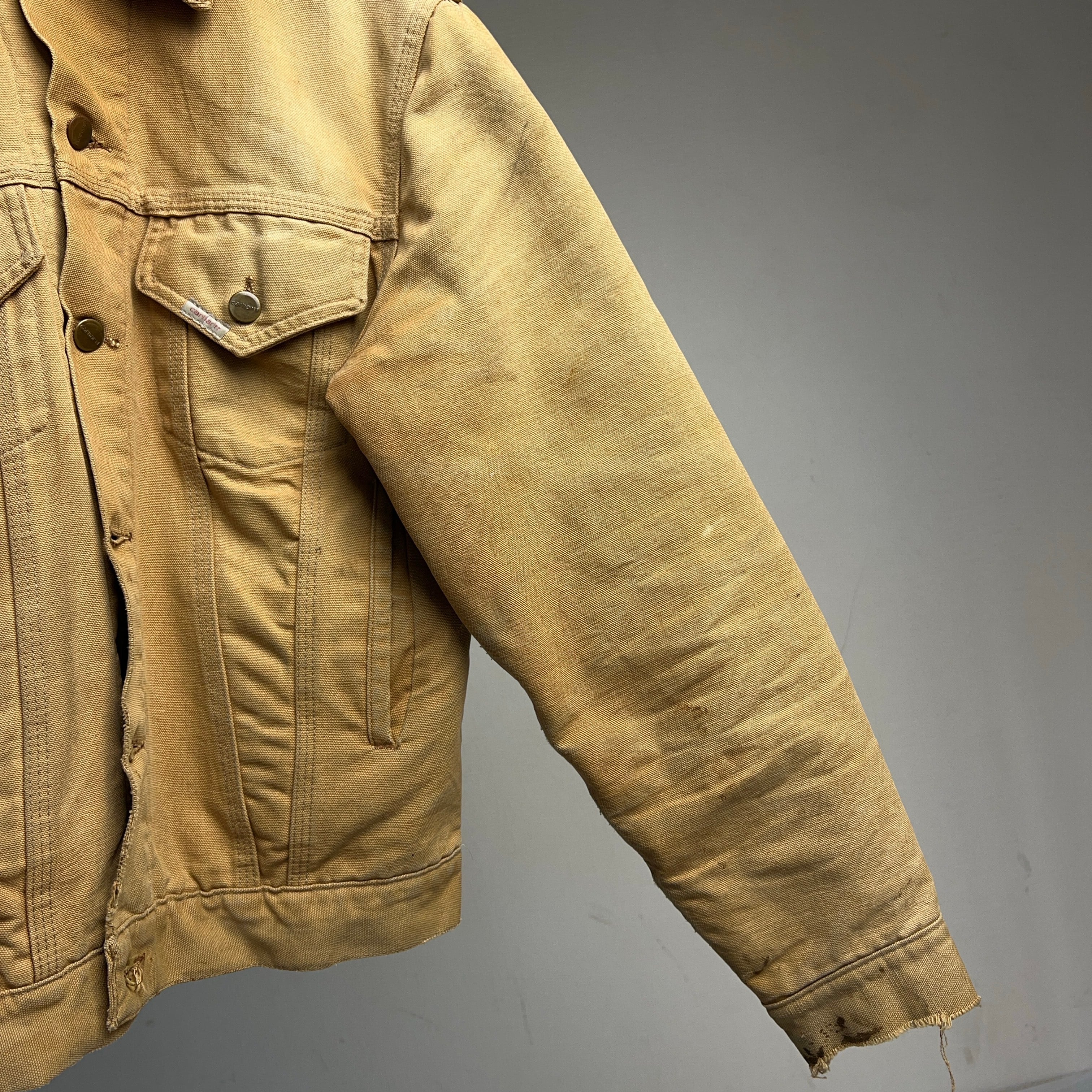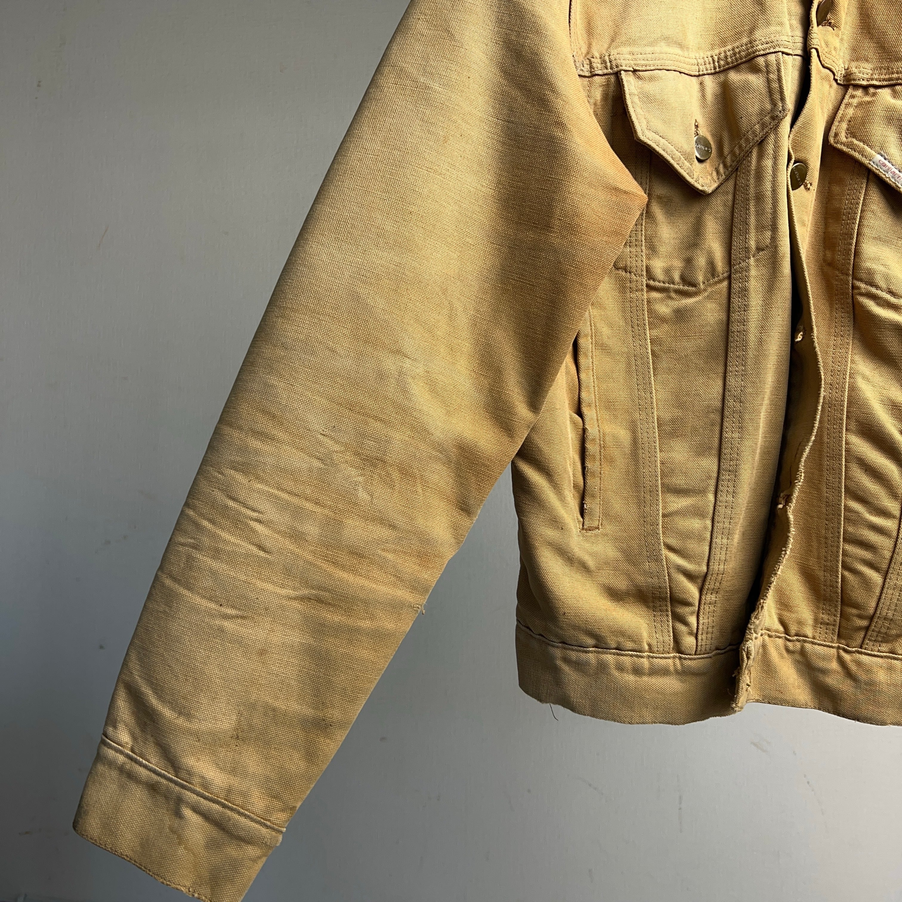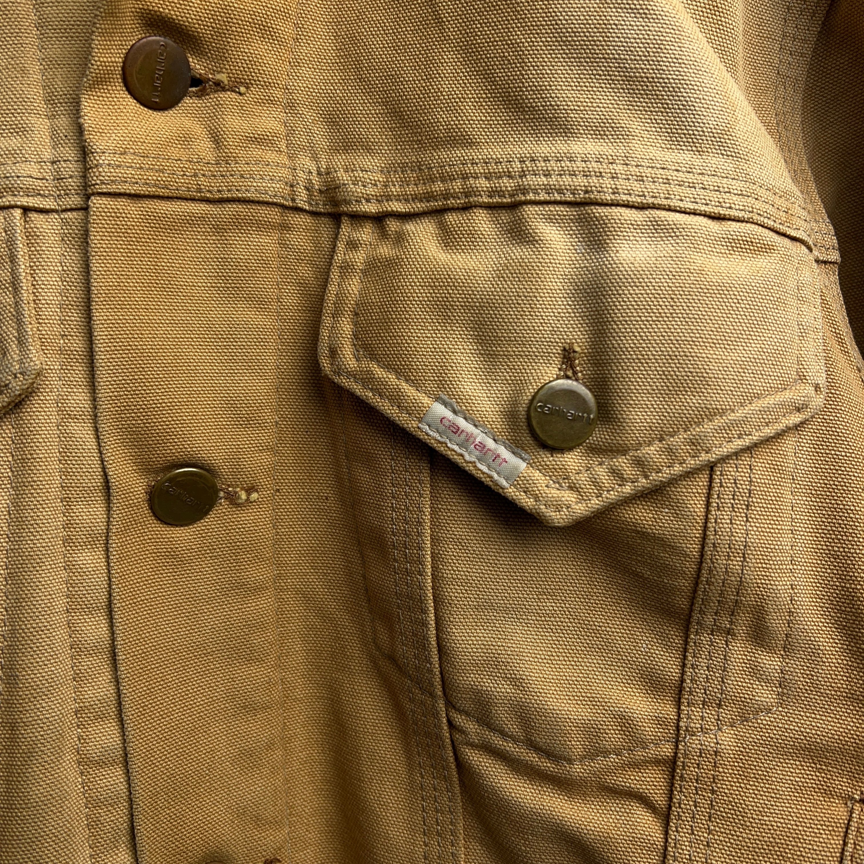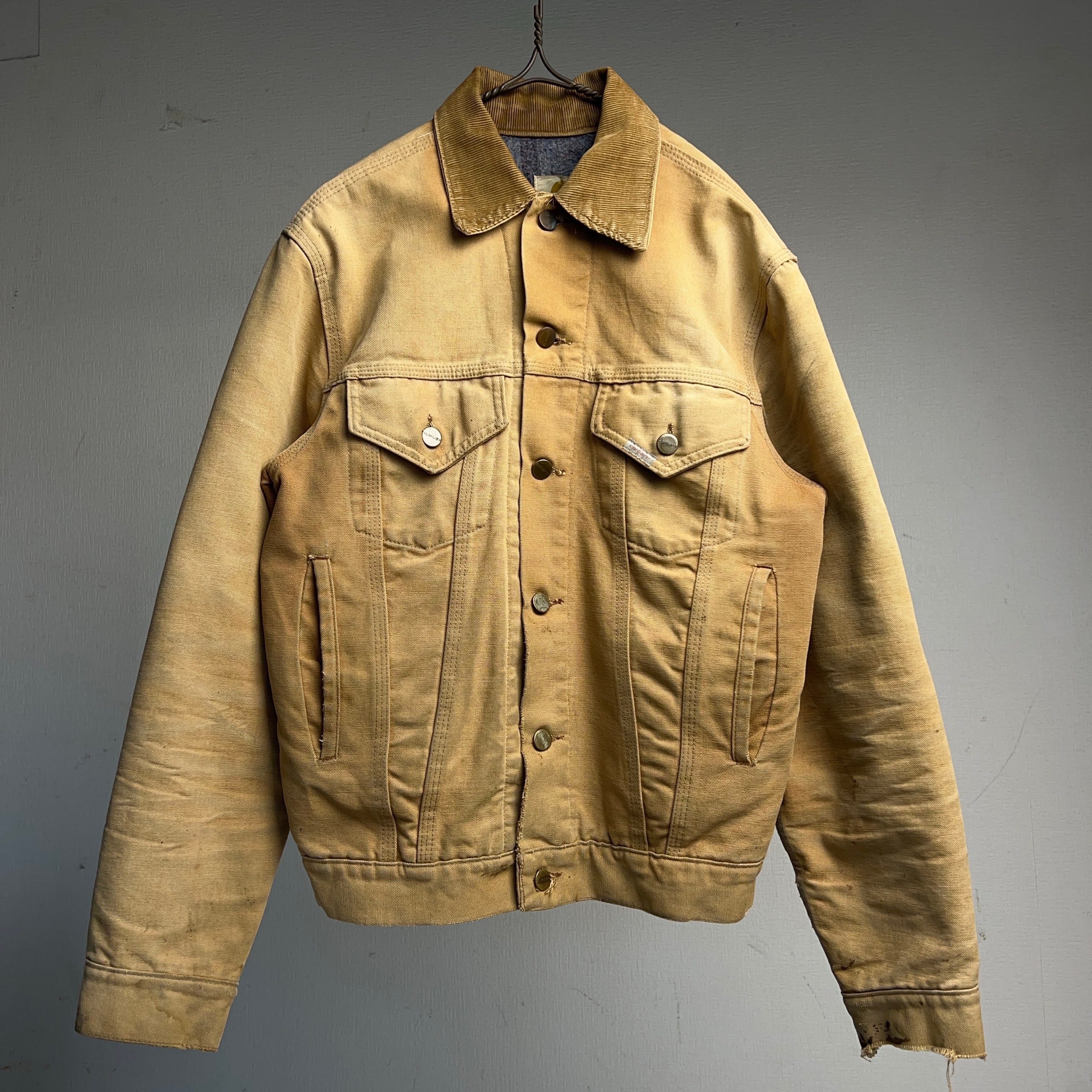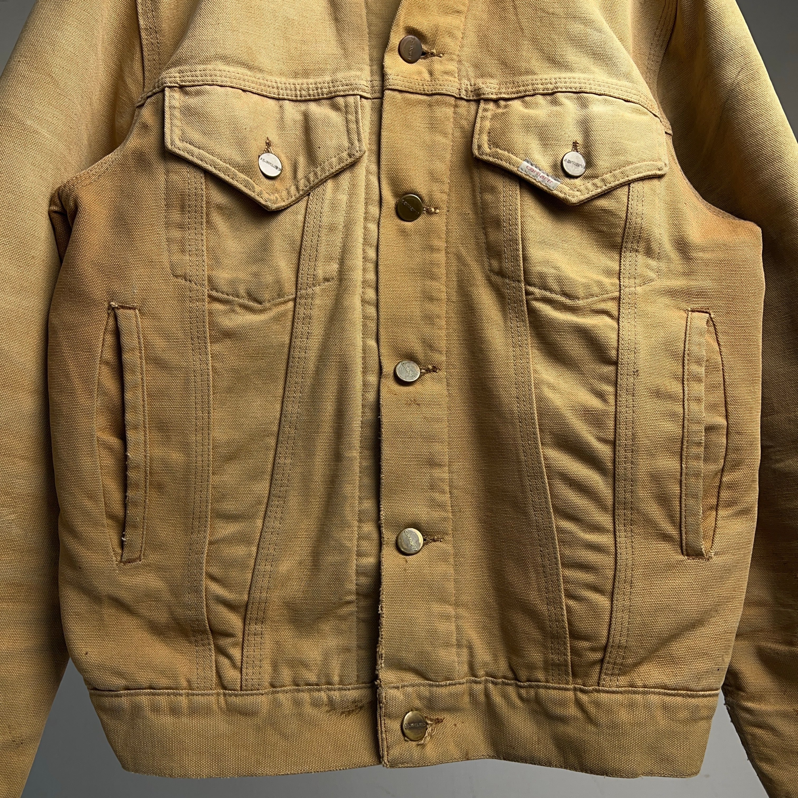1970's Carhartt Duck Trucker Jacket 70年代 カーハート ダックジャケット トラッカージャケット フェード アタリ SIZE 38 【1000A5214下】【送料無料】