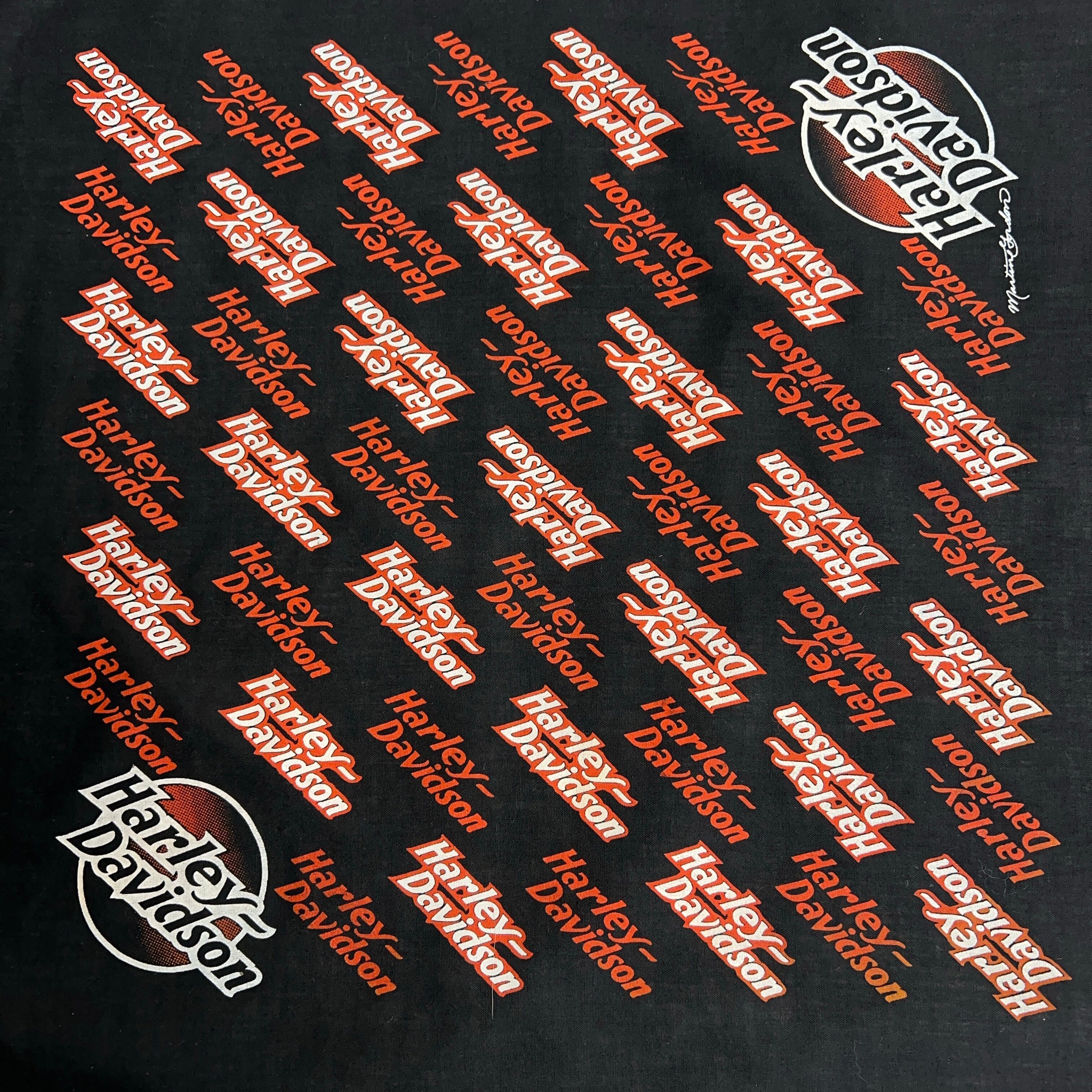 90's~ Harley-Davidson BLACK BANDANA 90年代 00年代 ハーレーダビッドソン バンダナ 黒 ヴィンテージ【1000A5303】