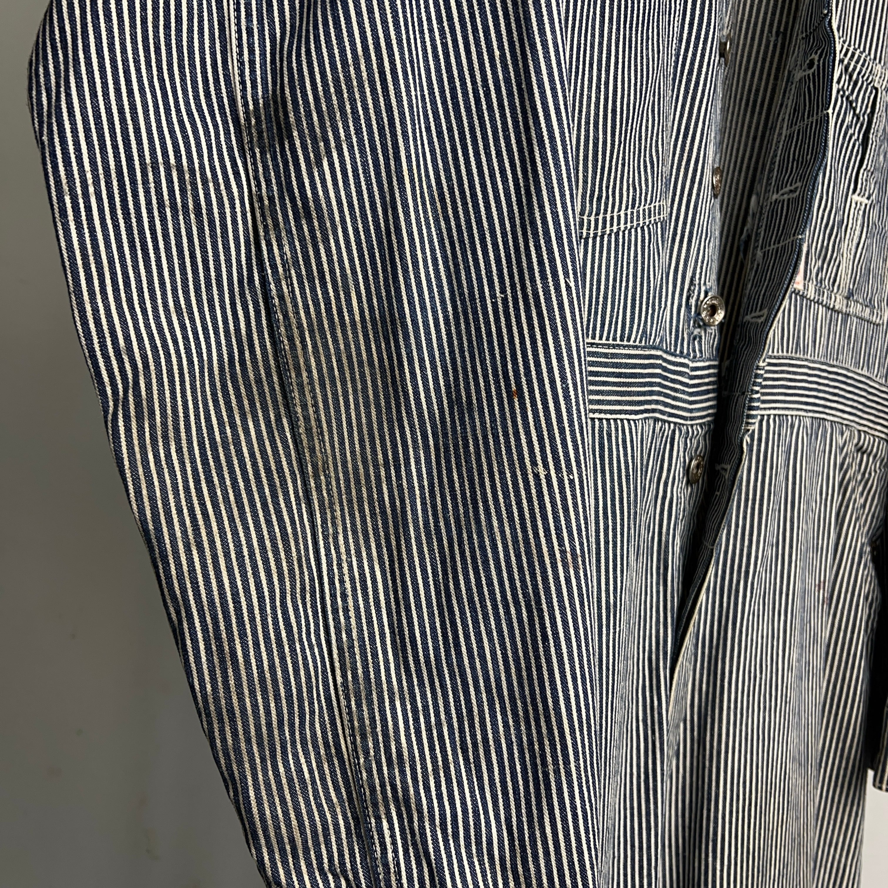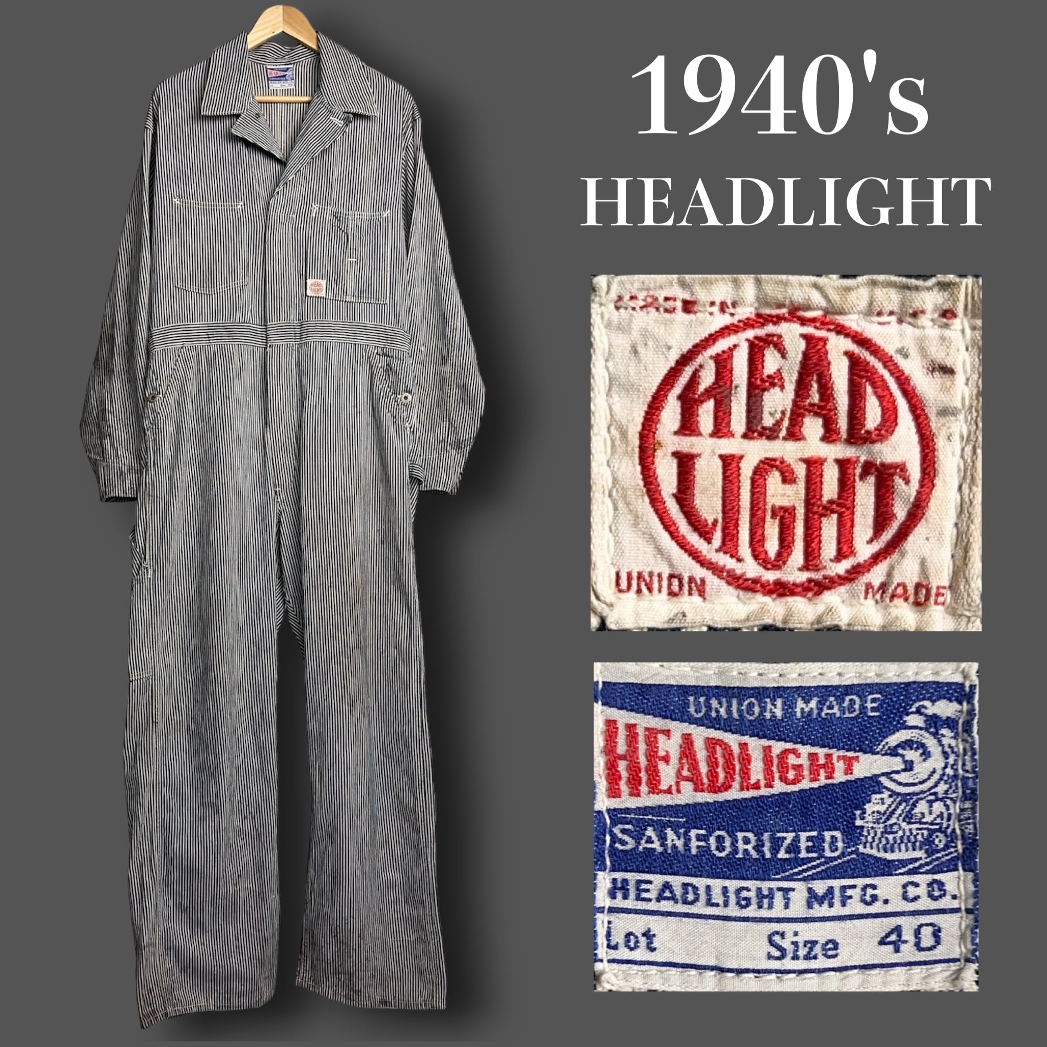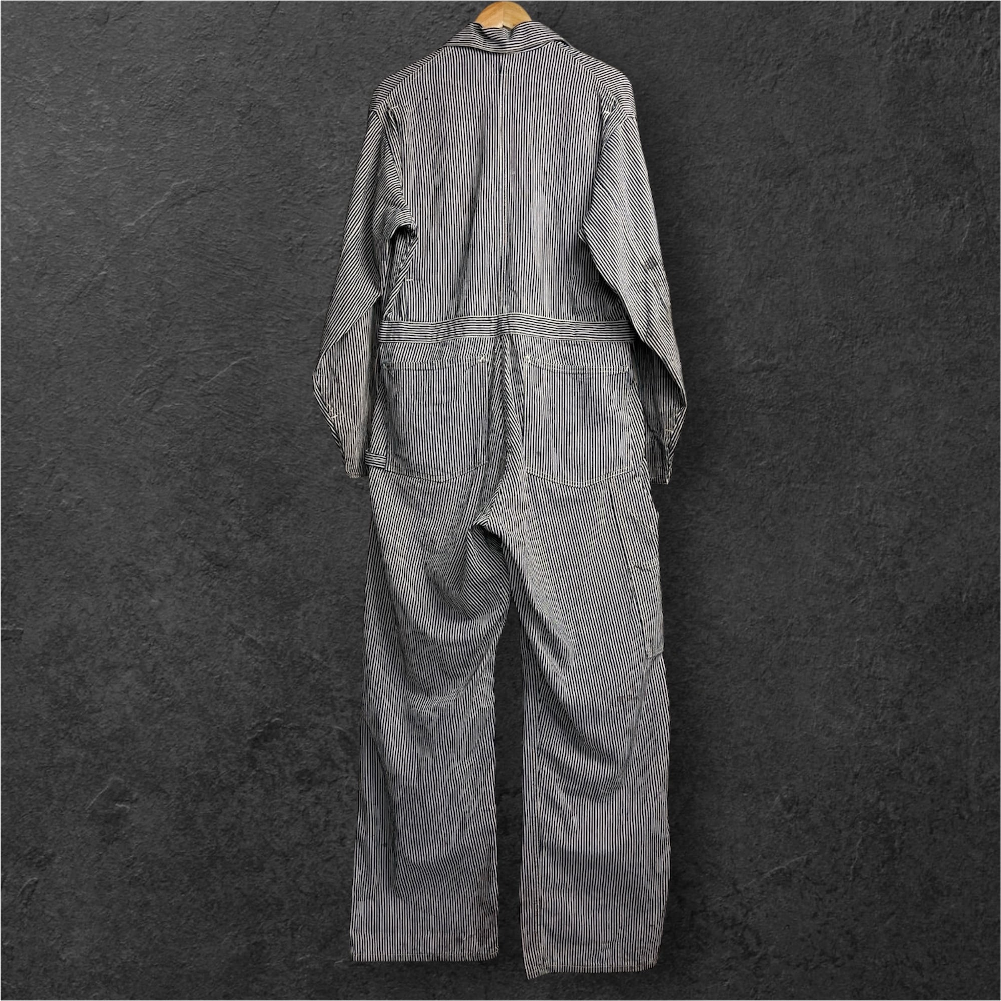 1940's HEADLIGHT Hickory Stripe Coveralls 40年代 ヘッドライト ヒッコリーストライプ ツナギ つなぎ オールインワン SIZE 40 機関車タグ【1000A5307】【送料無料】