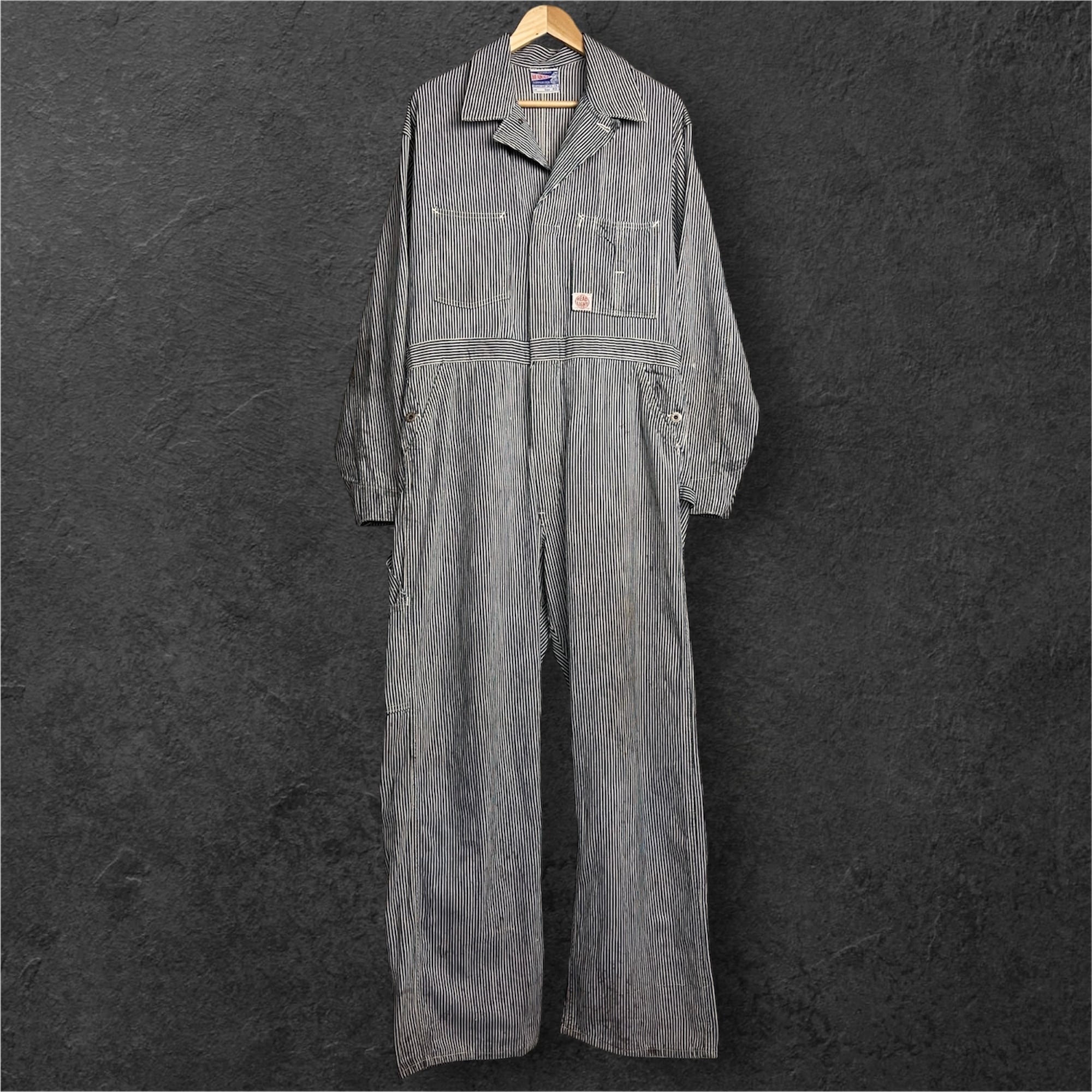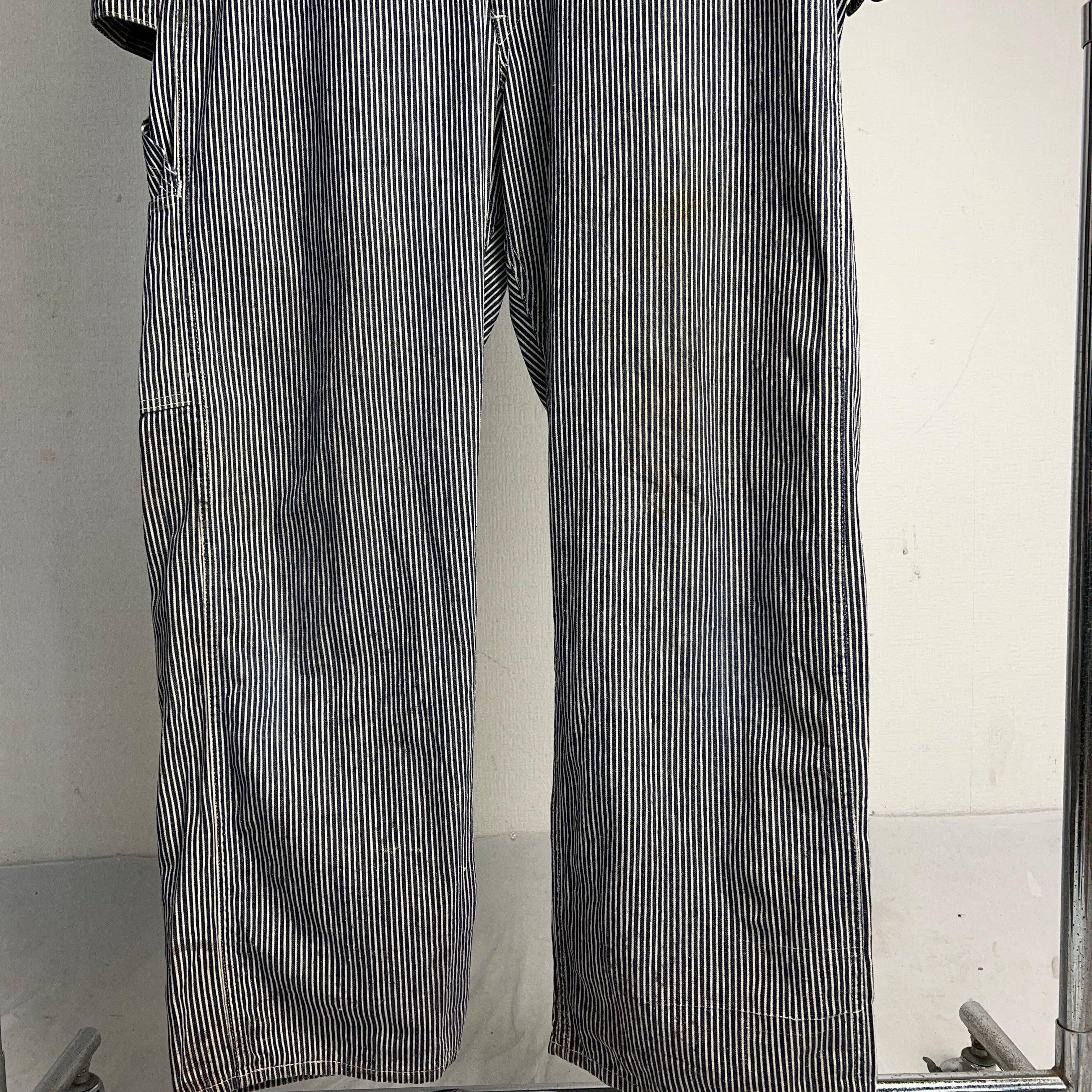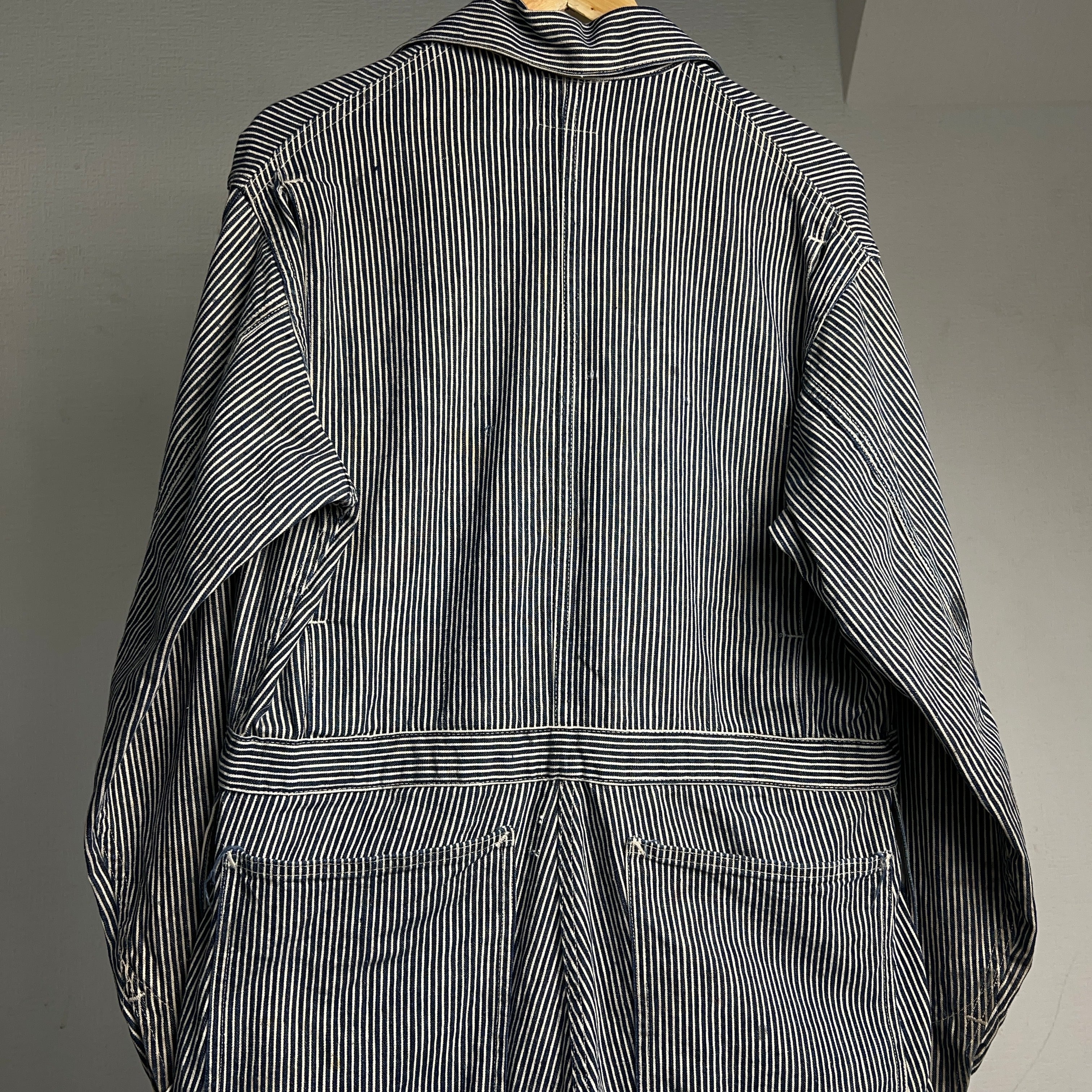 1940's HEADLIGHT Hickory Stripe Coveralls 40年代 ヘッドライト ヒッコリーストライプ ツナギ つなぎ オールインワン SIZE 40 機関車タグ【1000A5307】【送料無料】