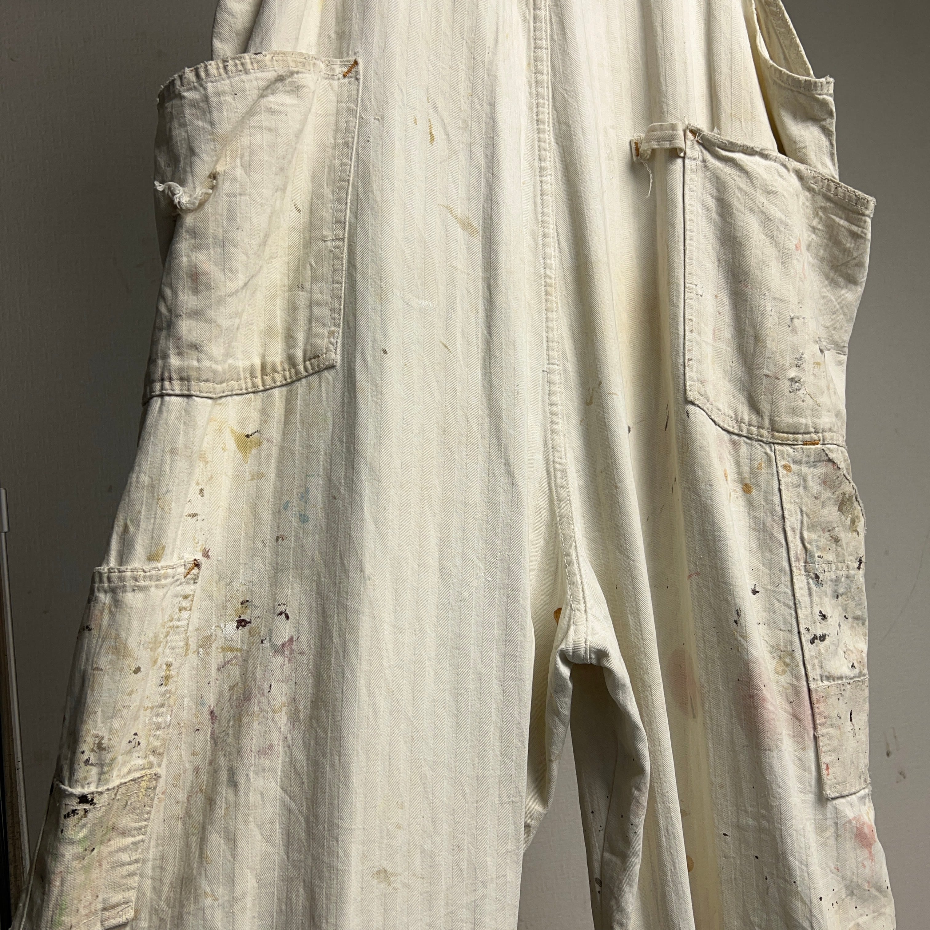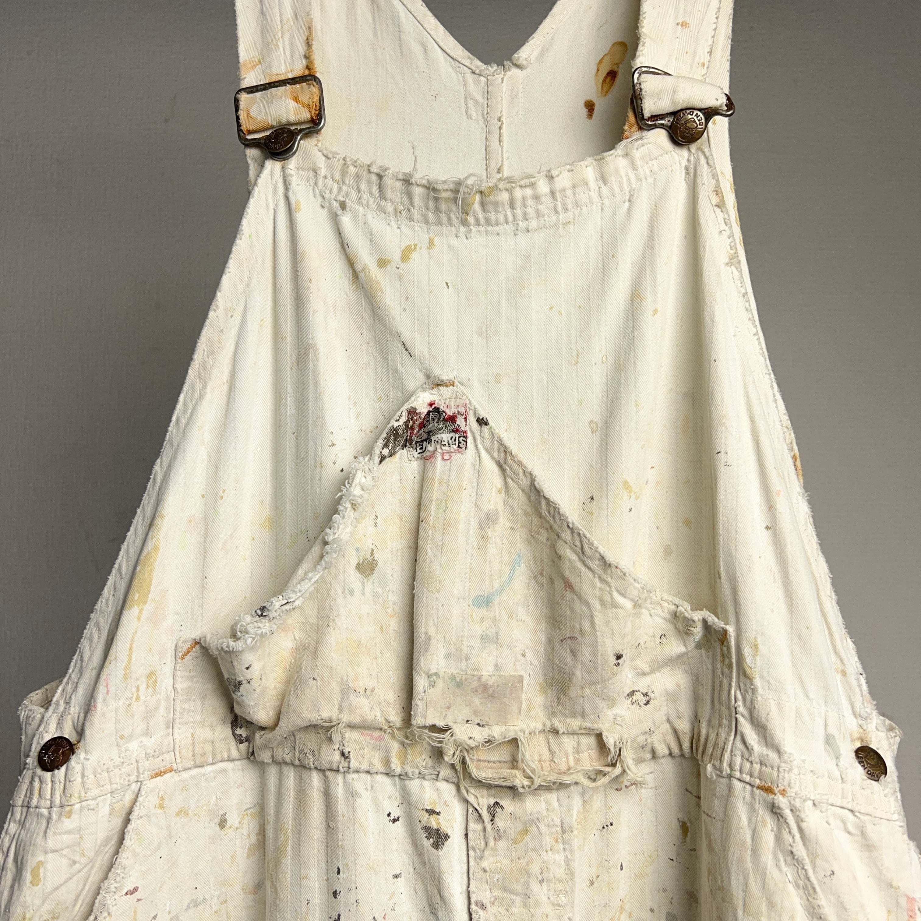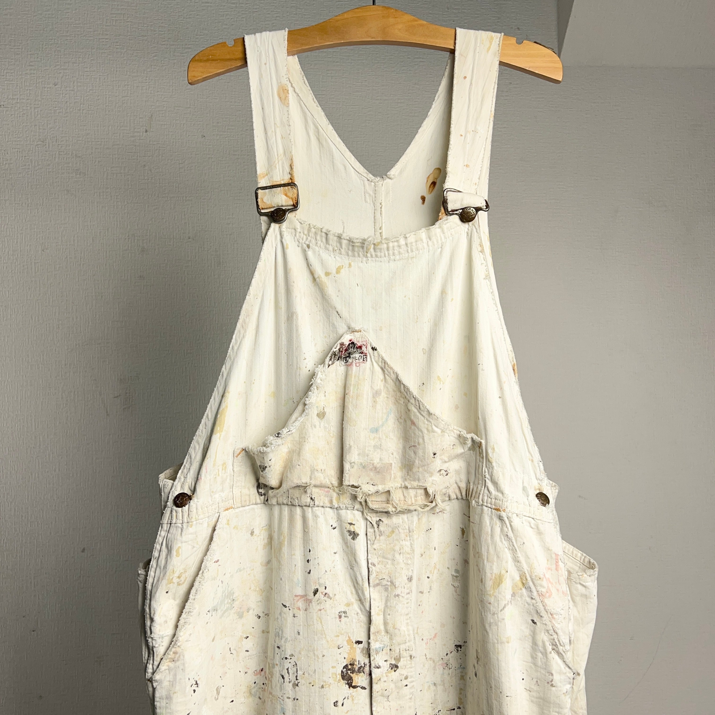 ペンキによる汚れ、ダメージ、リペアすべてが芸術的で自分が見たオーバーオールの中で1番カッコ良いと思いました。