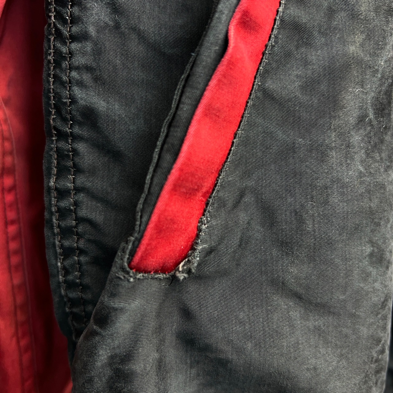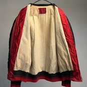 黒と赤の2トーンで尚且つ地味に光沢があるため良い意味で悪そうな雰囲気が出ていて非常にカッコいいスタジャンです。