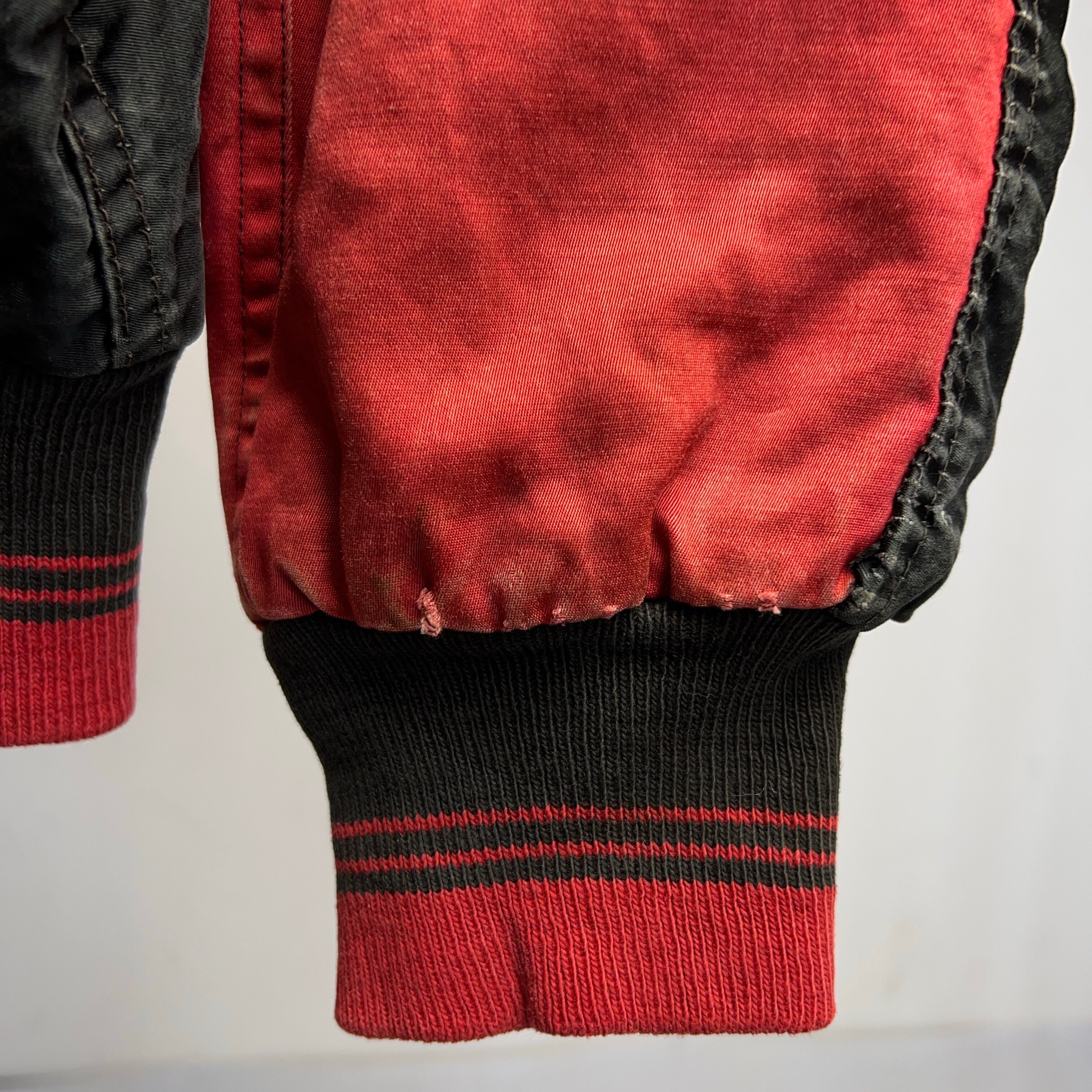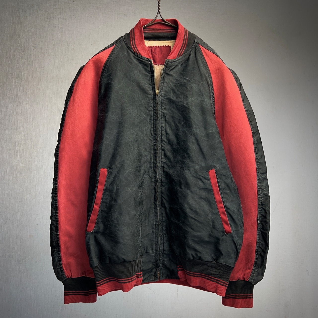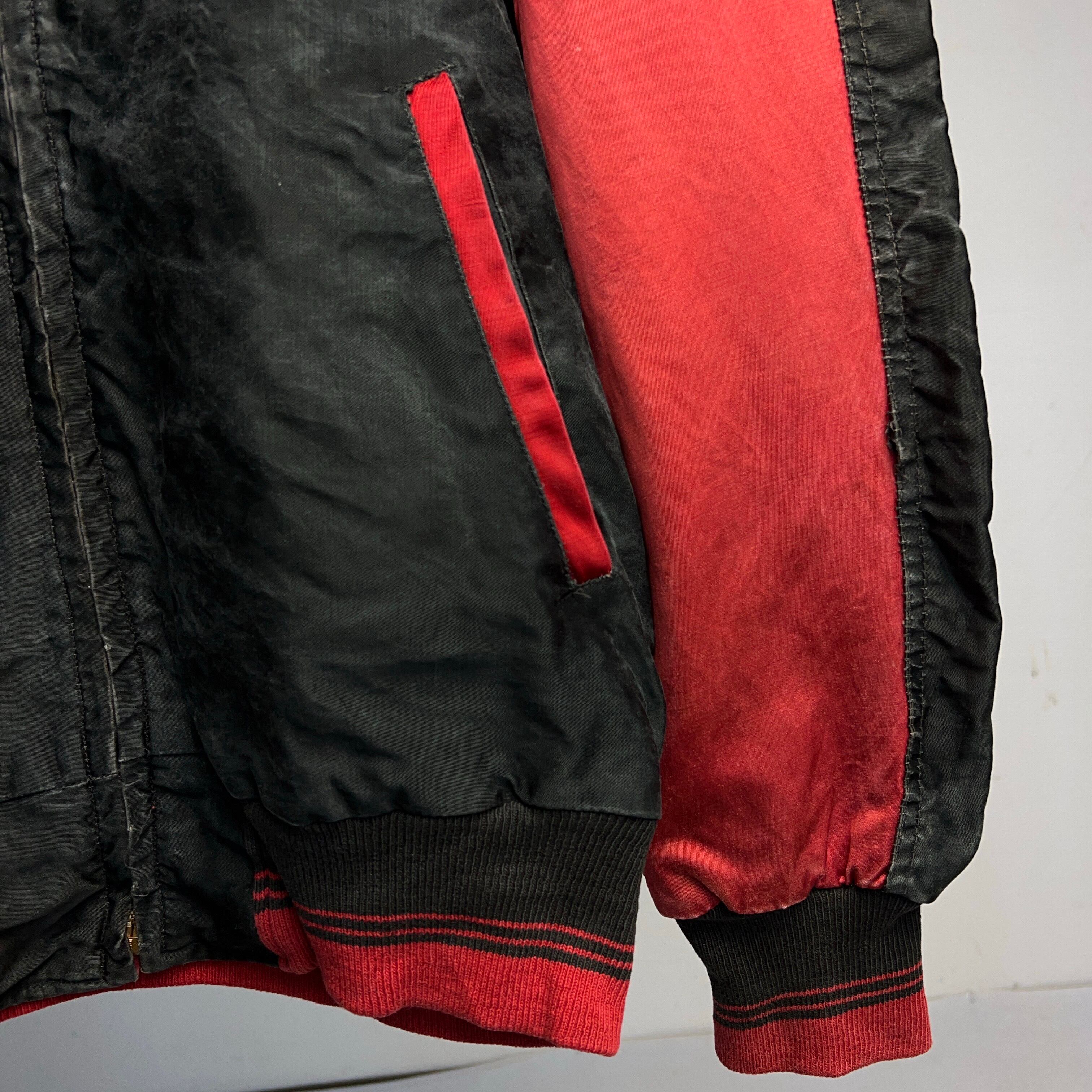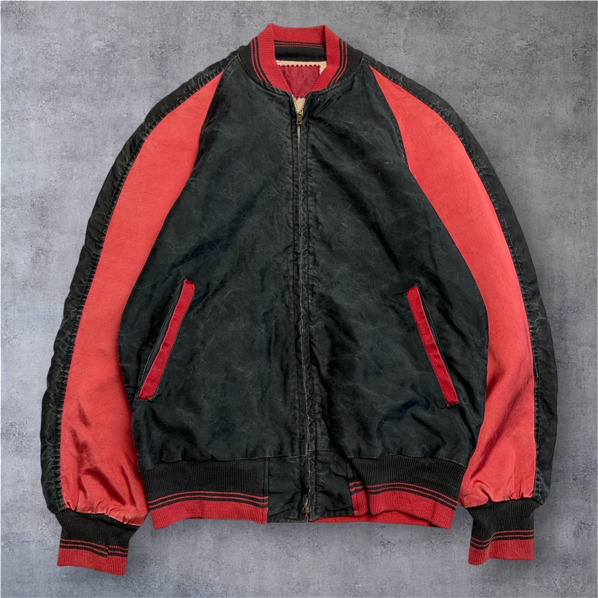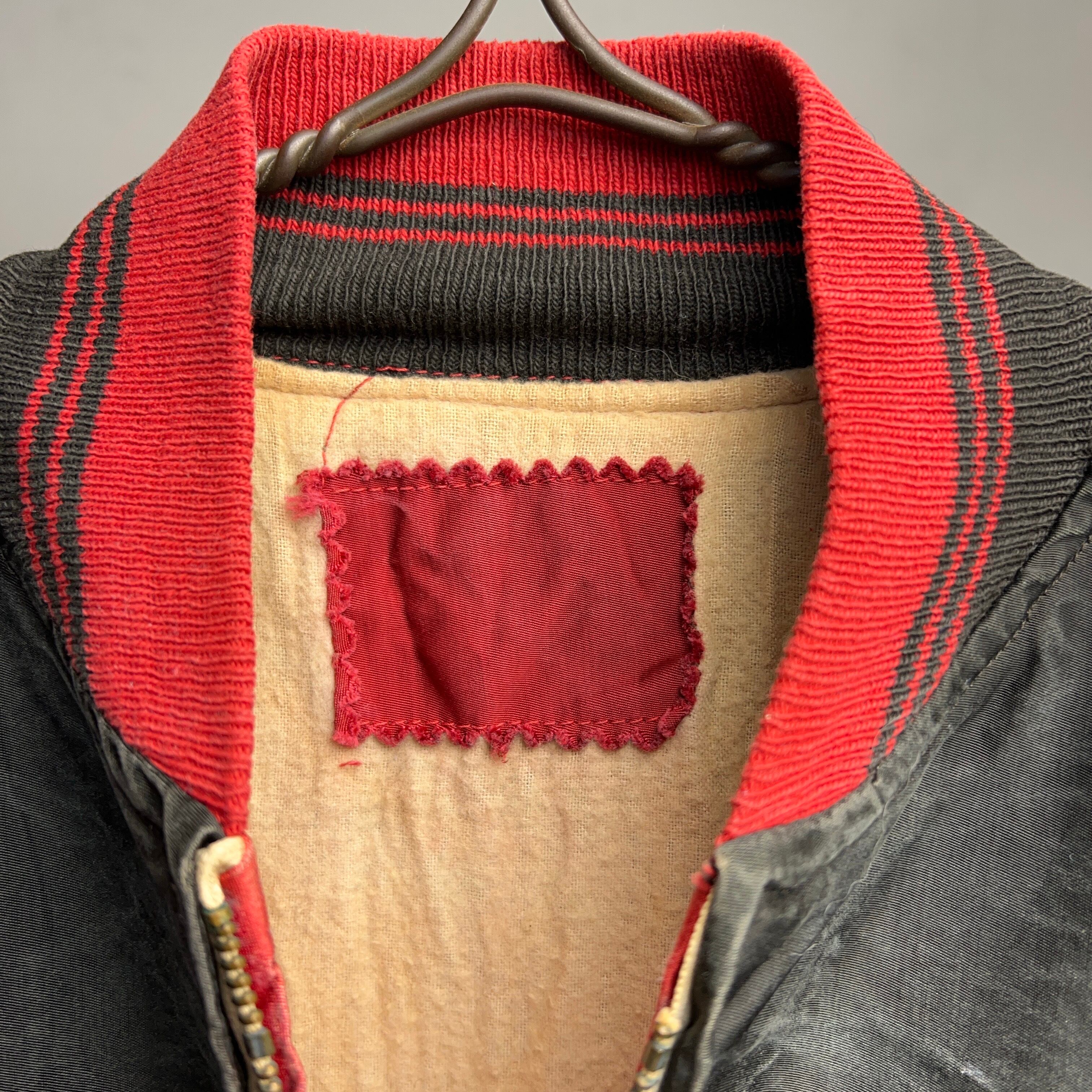 1950's COTTON SATIN STADIUM JACKET 50年代 コットン サテンスタジャン 2トーン 黒 ブラック 赤【1000A5313】【送料無料】