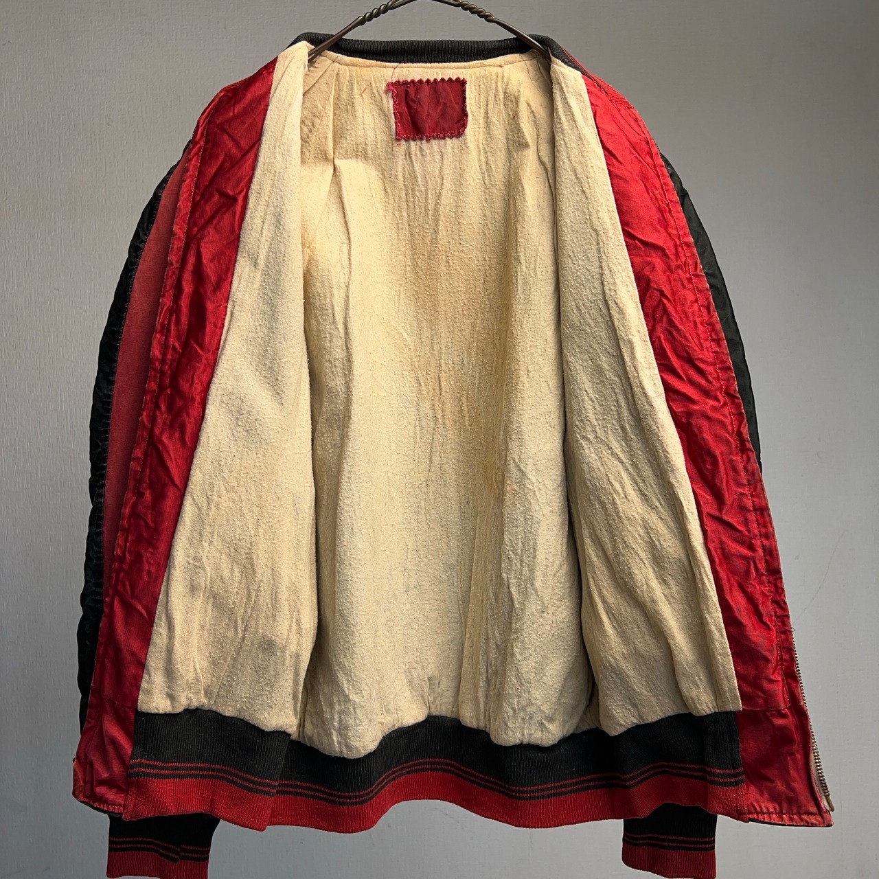 光沢のあるサテン生地で作られた50年代頃のヴィンテージスタジャン。
