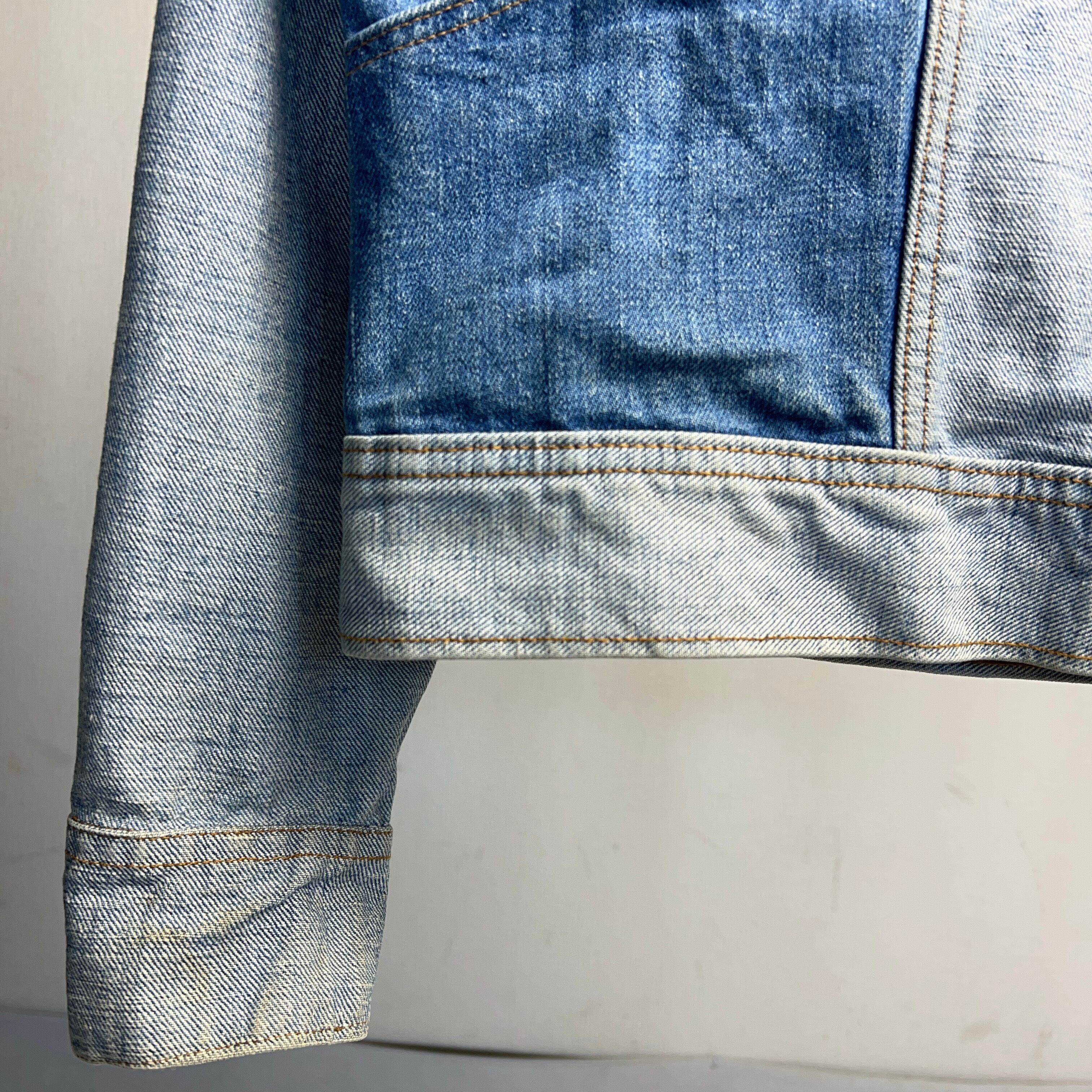 70年代らしい前衛的でこれまでのデニムジャケットにはないファッショナブルなデザインとなります。