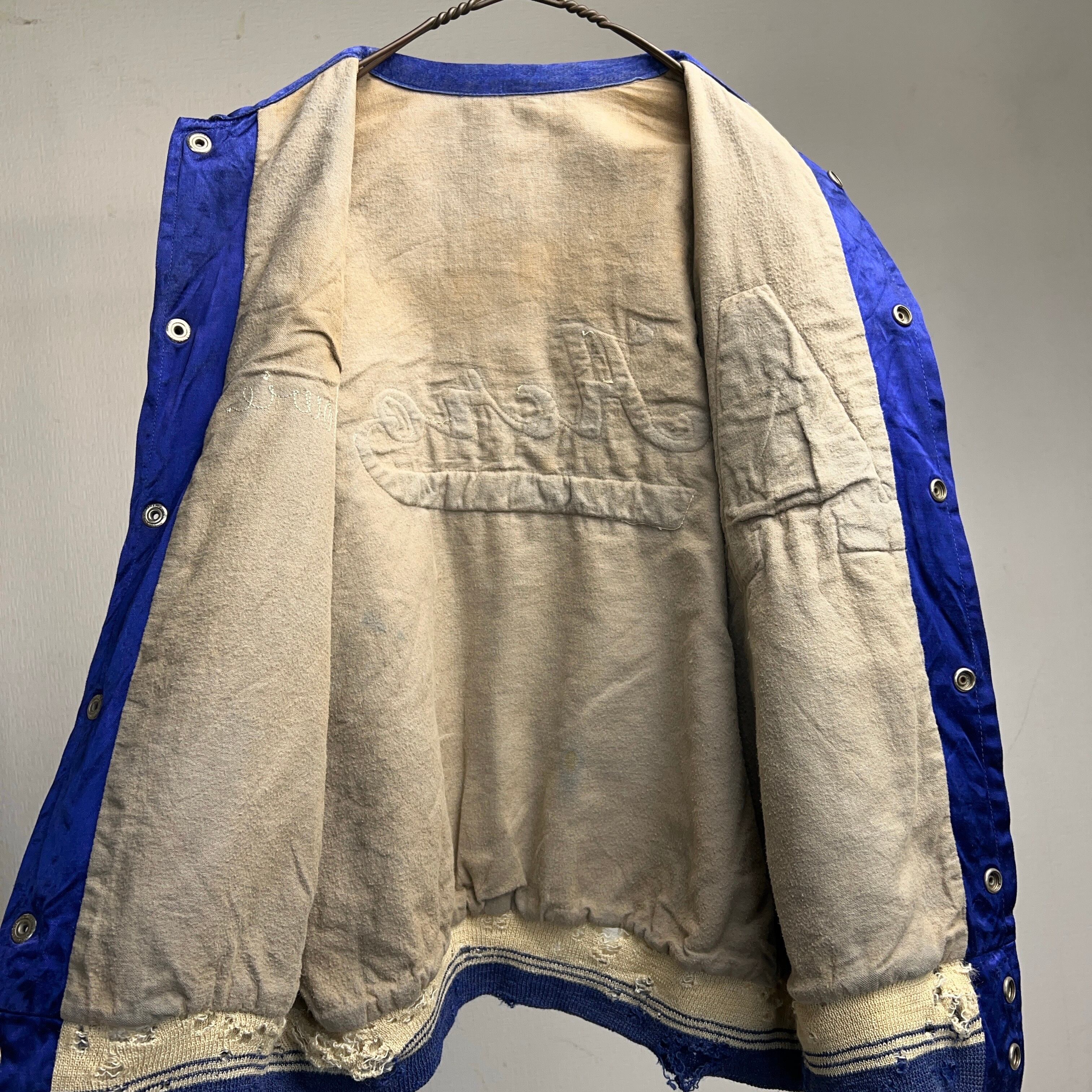 50's~60's SATIN STADIUM JACKET 50年代 60年代 サテンスタジャン バック刺繍 青 ブルー 【1000A5320】【送料無料】