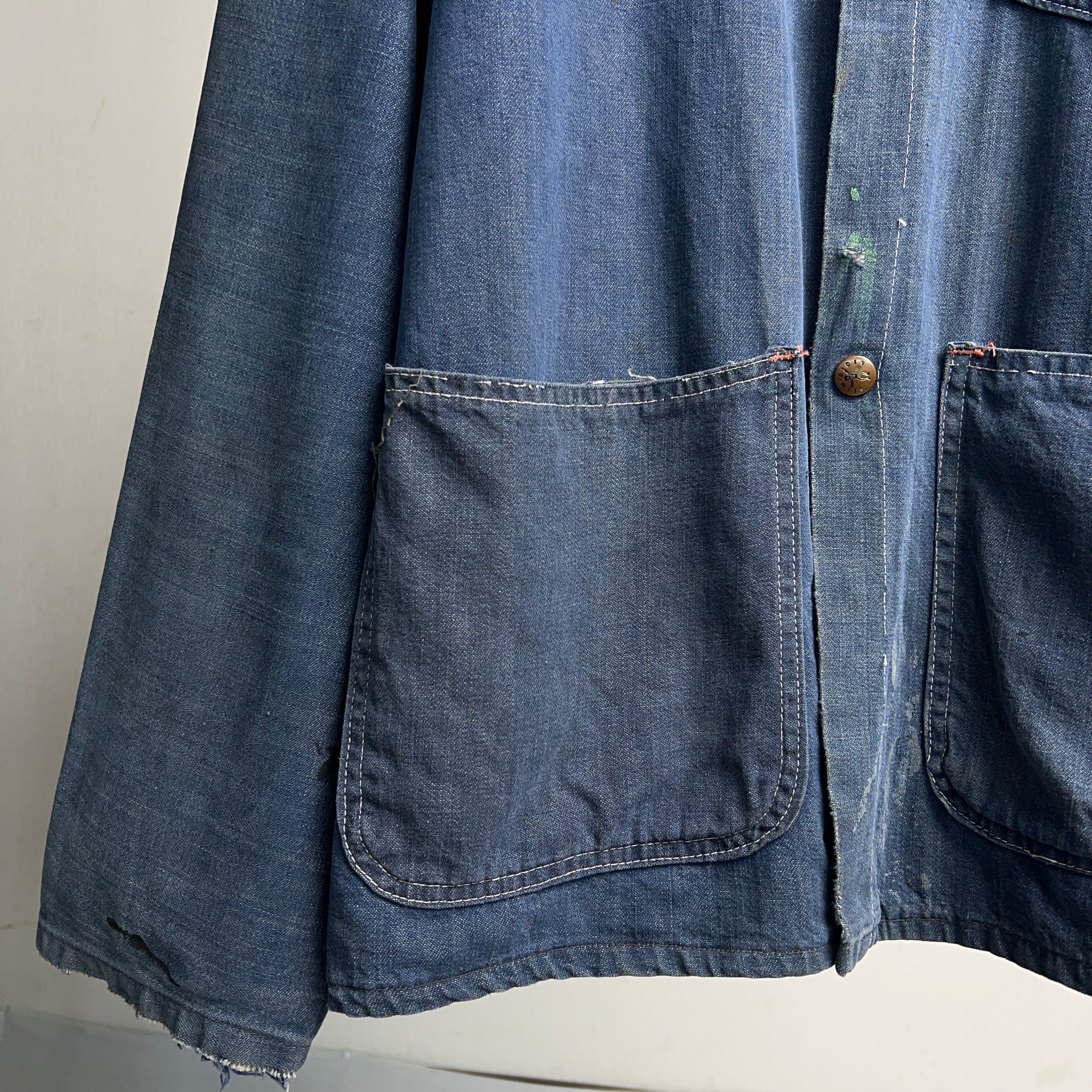 1970's VAT DYE DENIM CHORE JACKET 70年代 バットダイデニムカバーオール チョアジャケット 耳付き 【1000A5321】【送料無料】