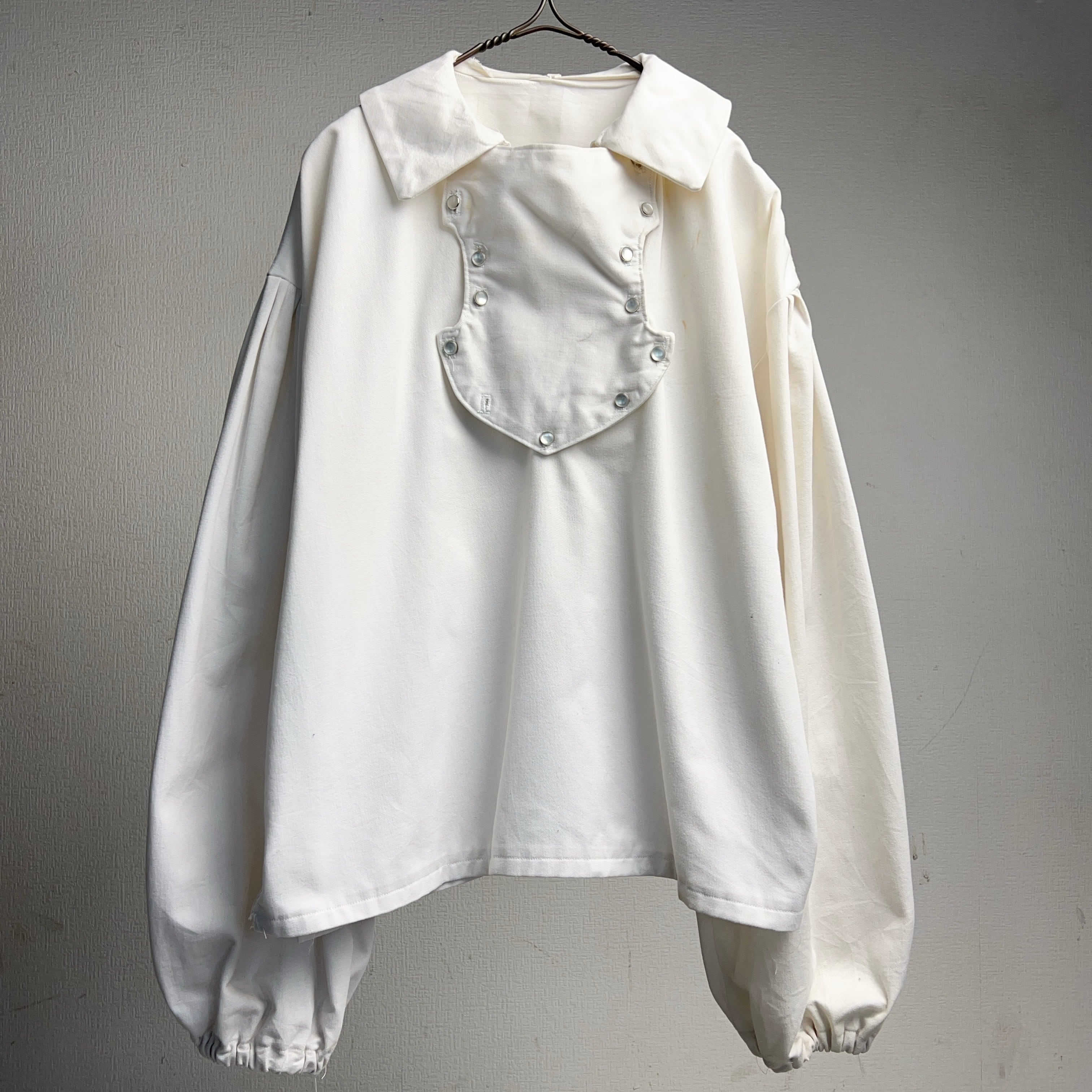 プルオーバーで袖が先端に向かって太くなっていくデザイン、襟のデザインも独特。