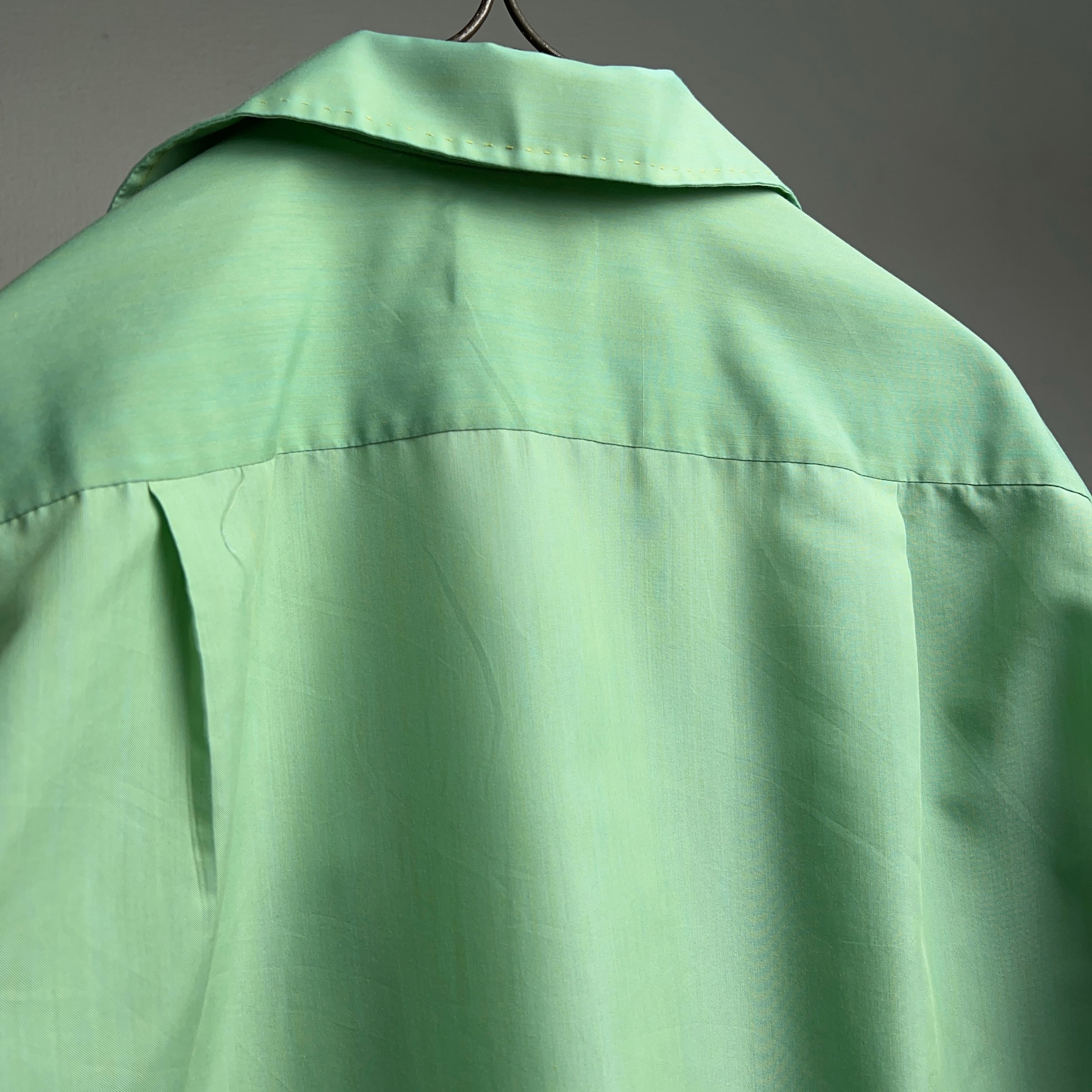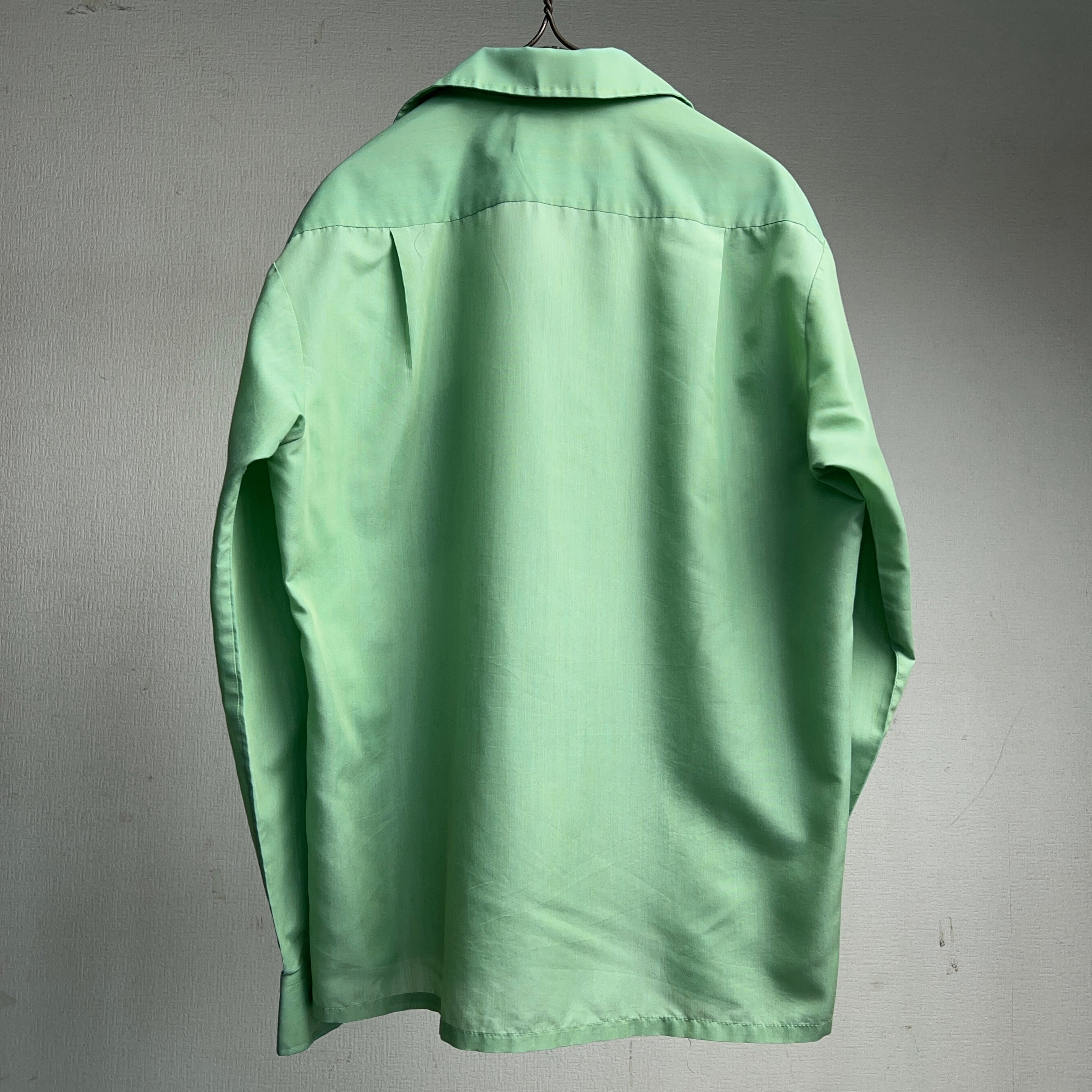 60's~70's Le Chevron POLY×COTTON L/S SHIRT 60年代 70年代 ポリコットンシャツ ループカラー ボックスカット オープンカラー ペールグリーン 【1000A5333】【送料無料】