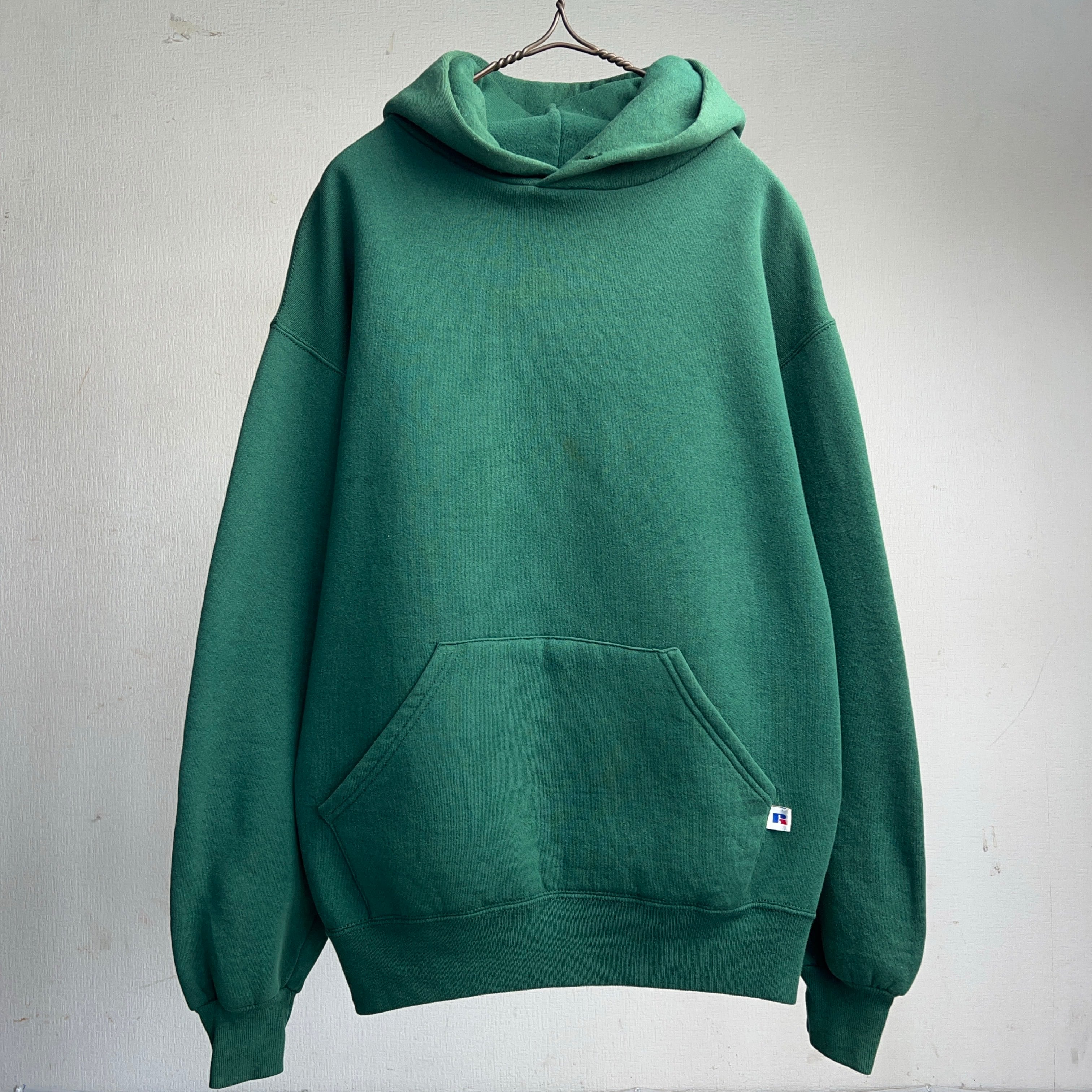 90's Russell Athletic Hoodie Smeatshirt 90年代 ラッセルアスレチック パーカー アメリカ製 MADE IN USA ダークグリーン 緑 無地 SIZE M【1000A5342】【送料無料】