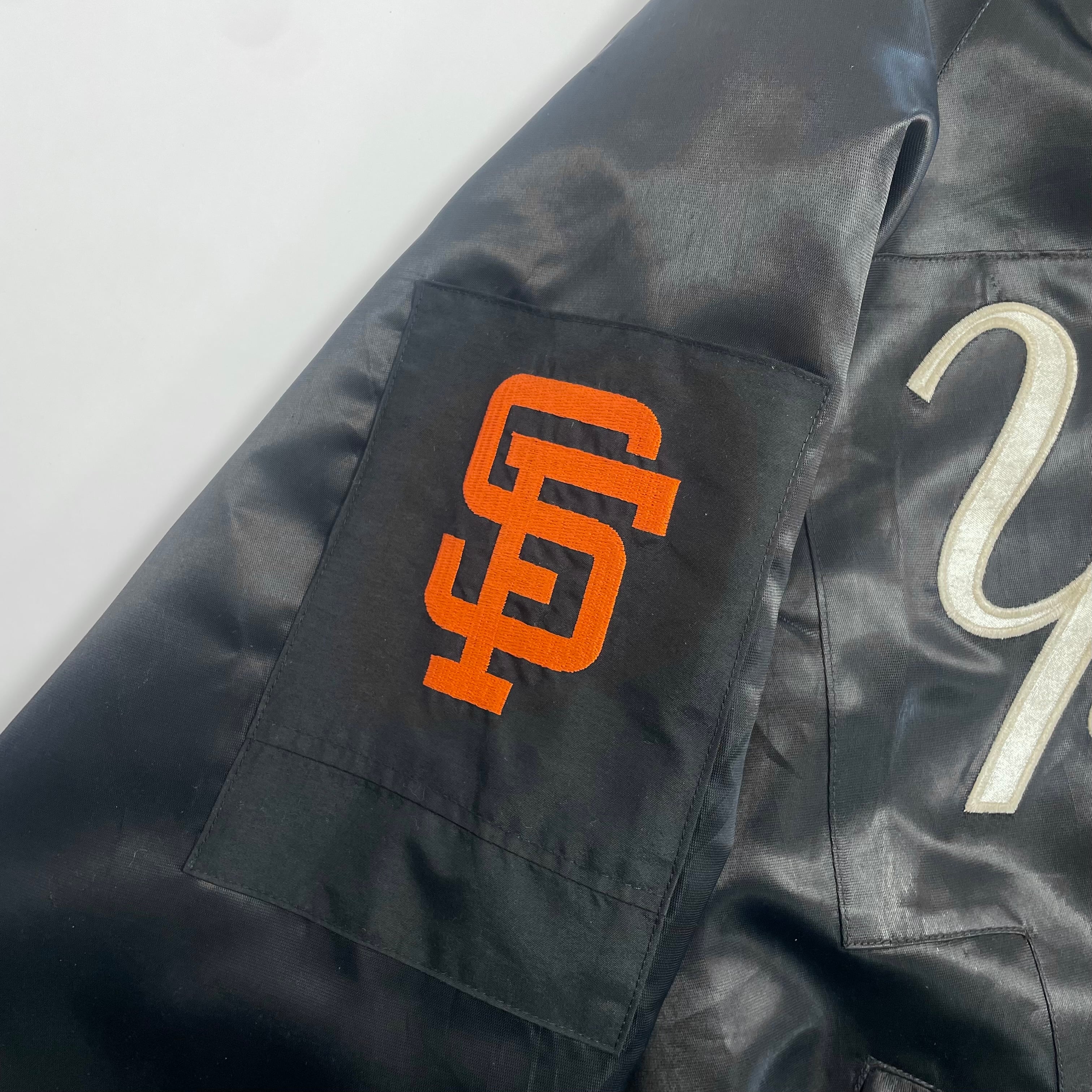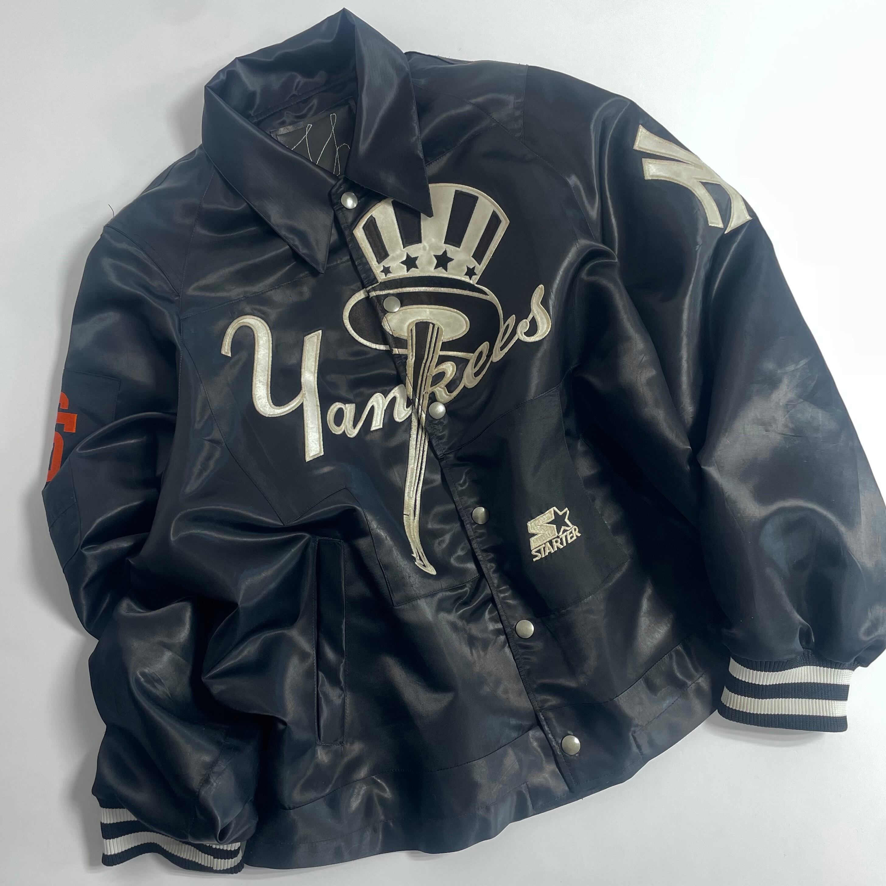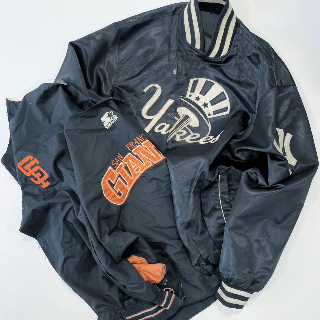 こちらの1着は、ニューヨーク・ヤンキースとサンフランシスコ・ジャイアンツのナイロンジャケットを解体してコーチジャケットの形に再構築しました。