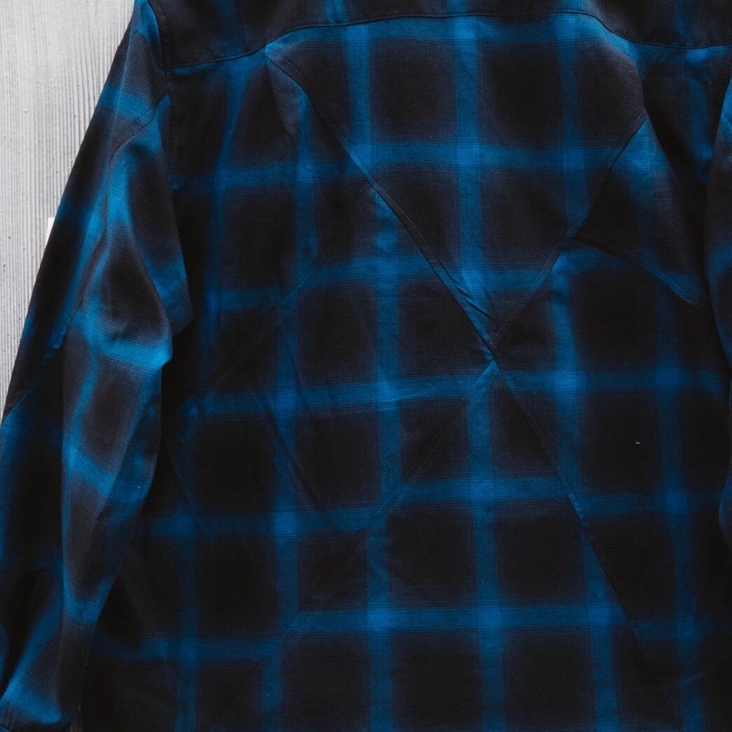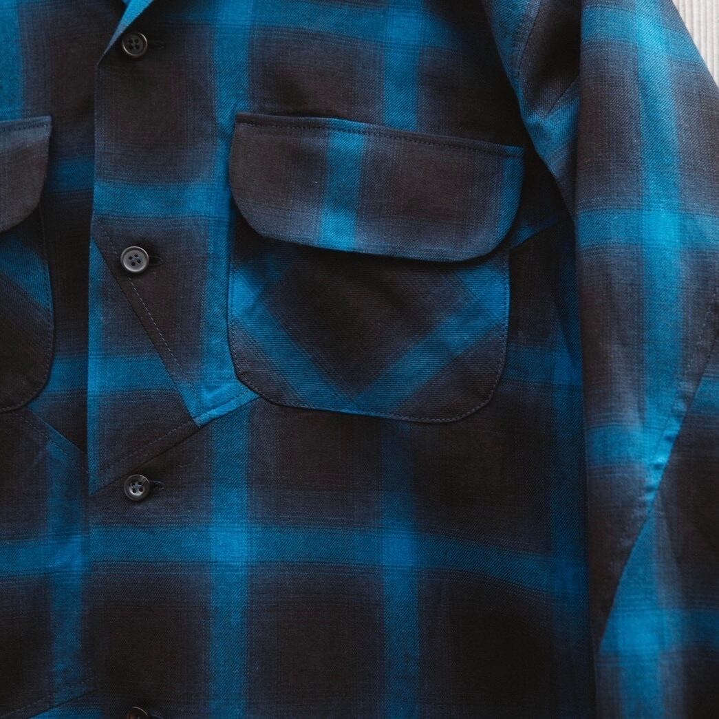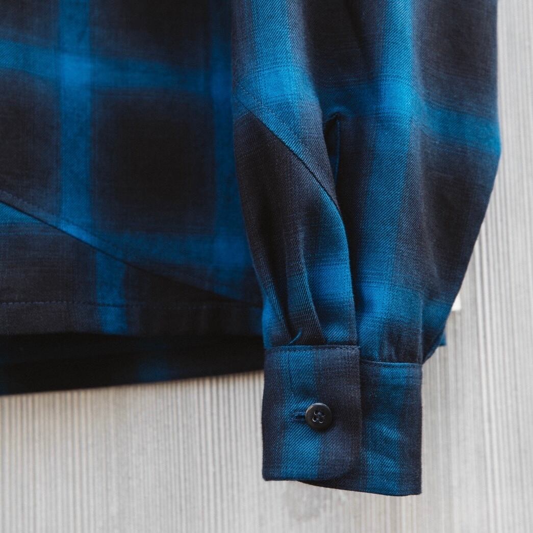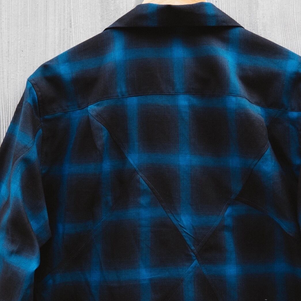 デッドストックのオンブレチェック生地を使用し、一点ずつパッチワークで組み上げたオープンカラーシャツです。