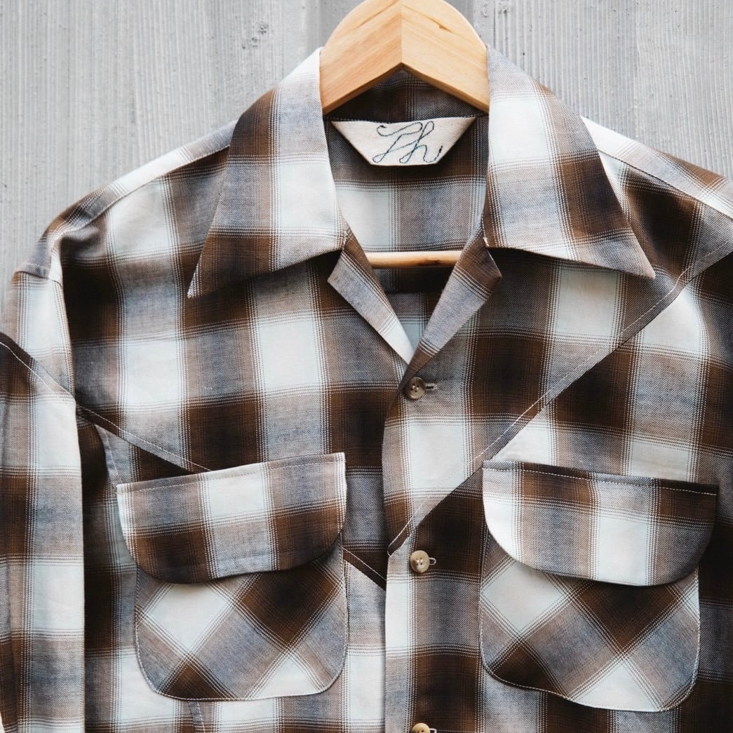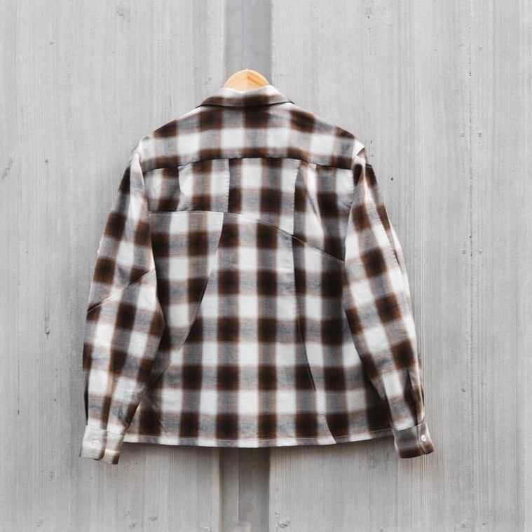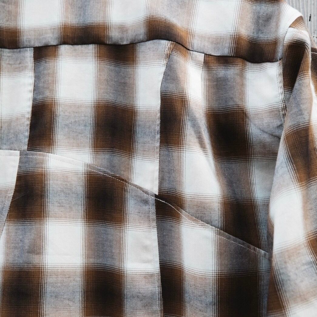 デッドストックのオンブレチェック生地を使用し、一点ずつパッチワークで組み上げたオープンカラーシャツです。