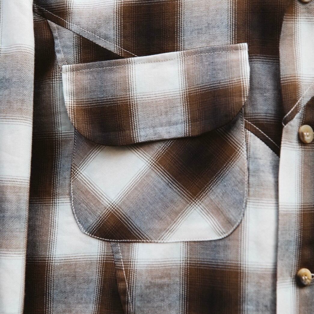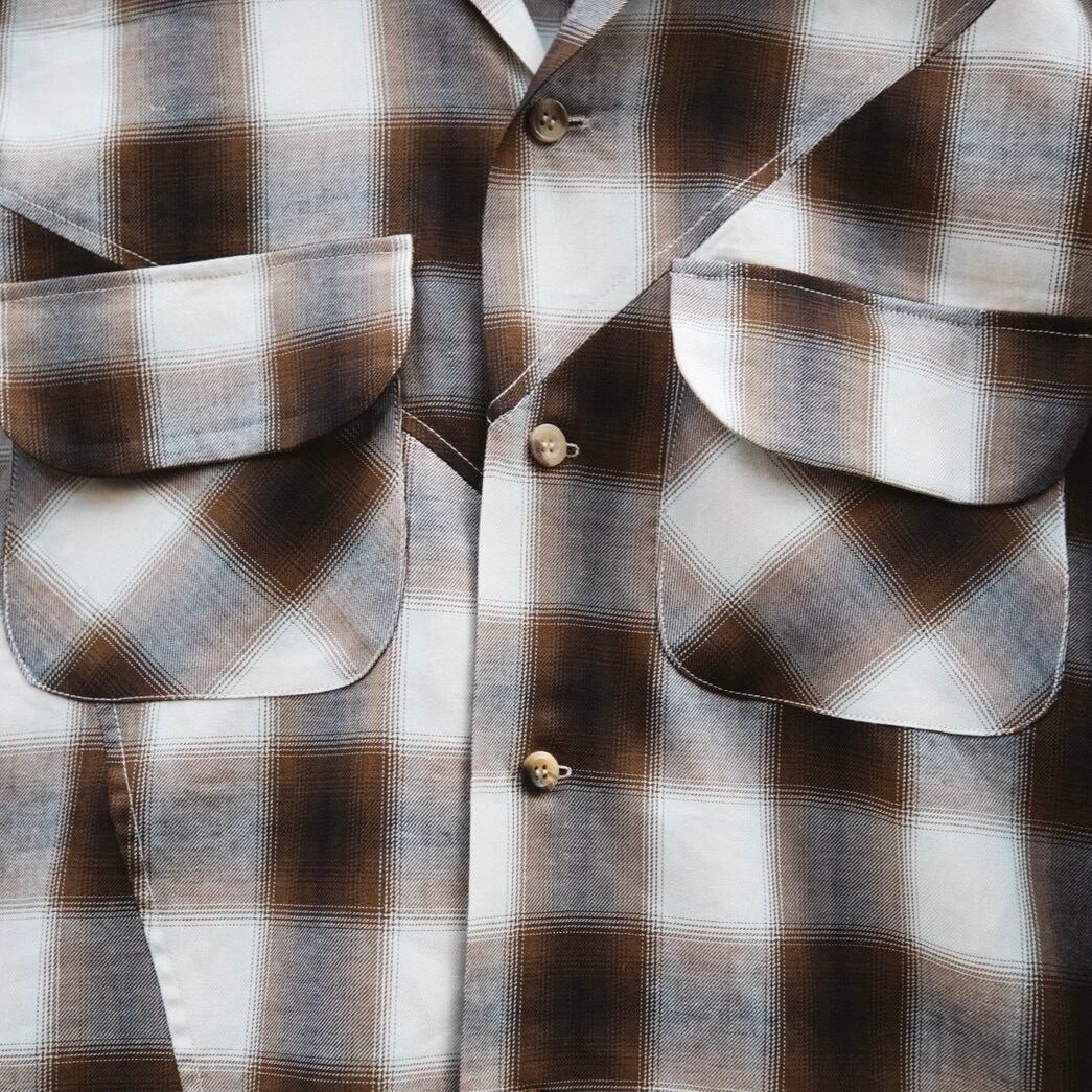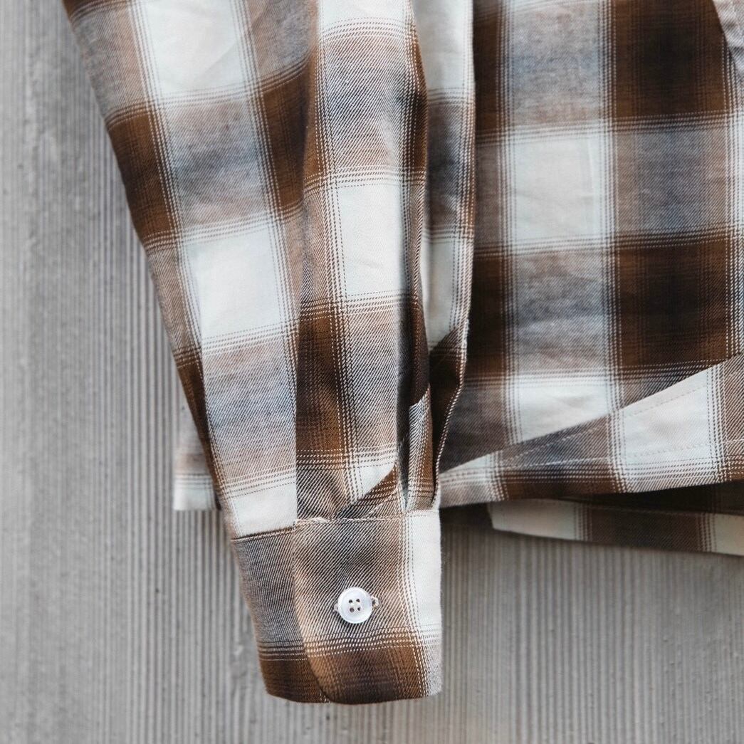 【Th】Re: Ombre Check Open Collar Shirt /brown/M-short