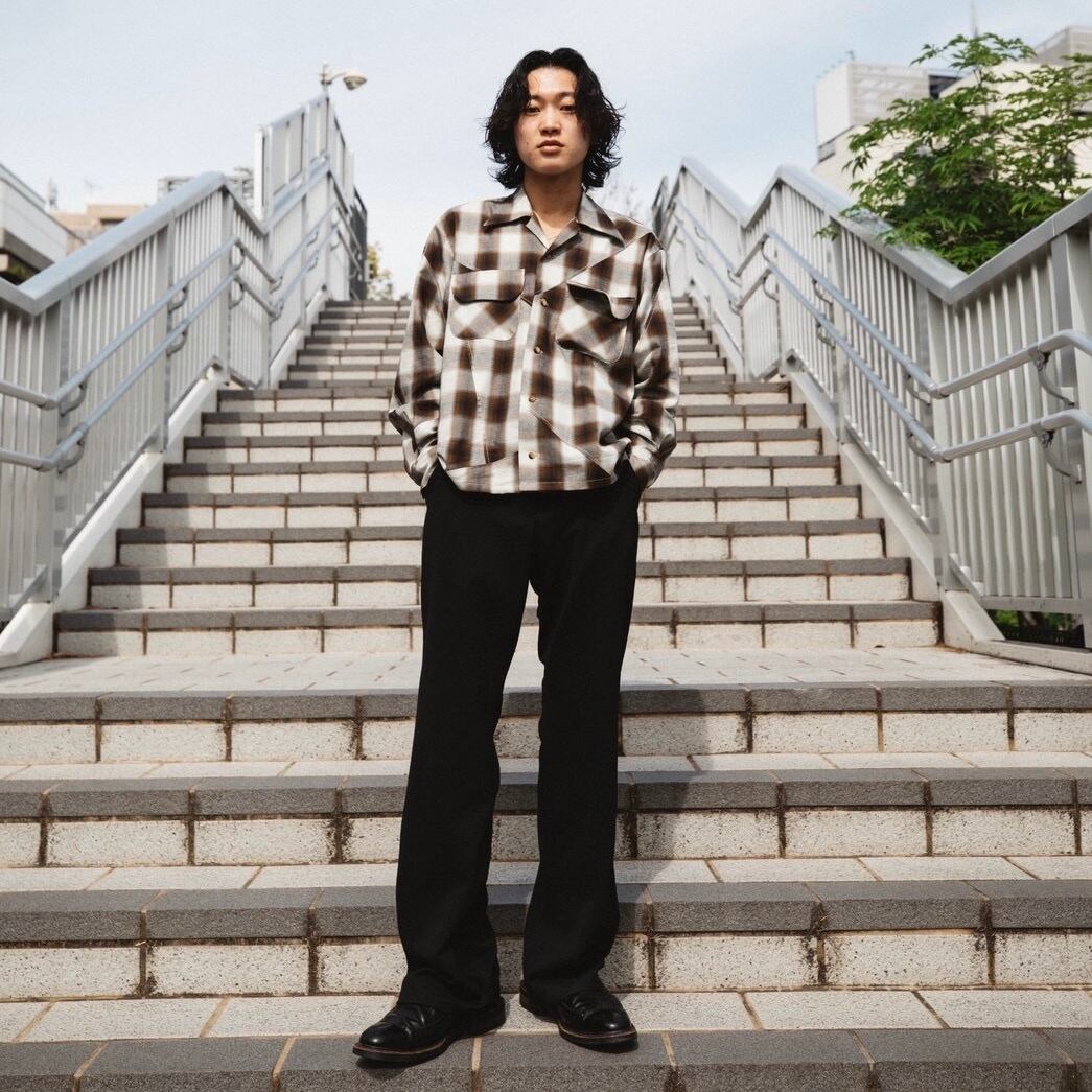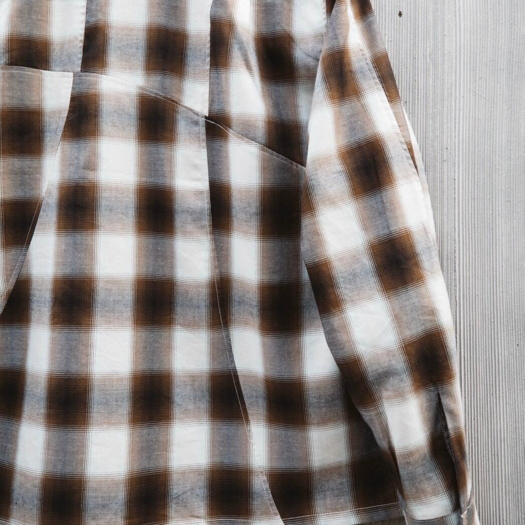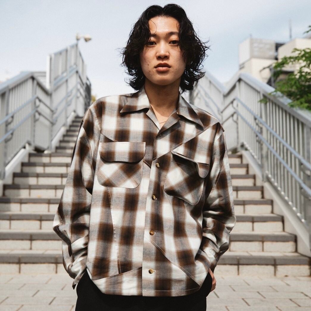 【Th】Re: Ombre Check Open Collar Shirt /brown/M-short
