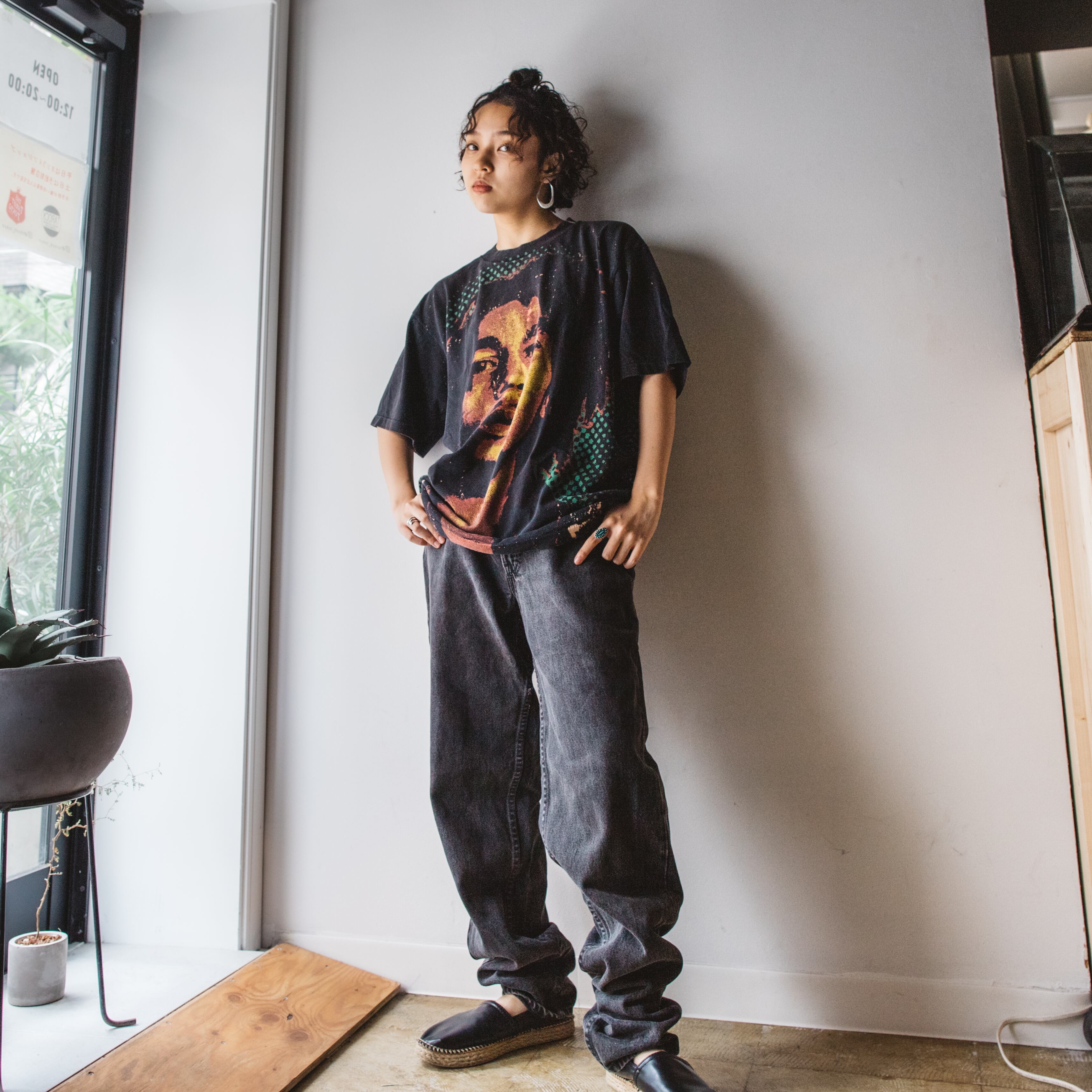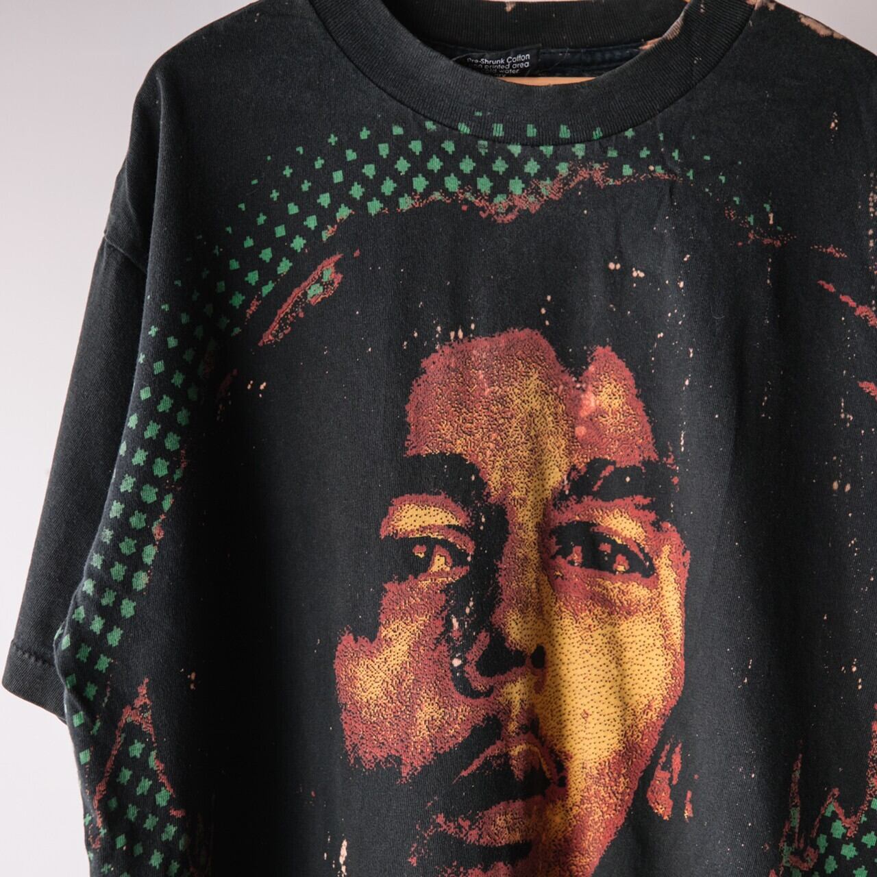 90年代のボブマーリーTシャツ。全体にプリントとブリーチがされています。