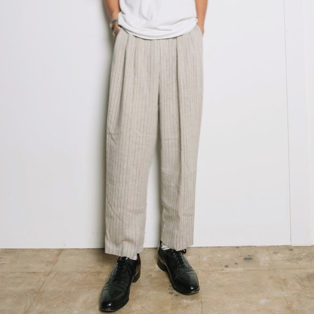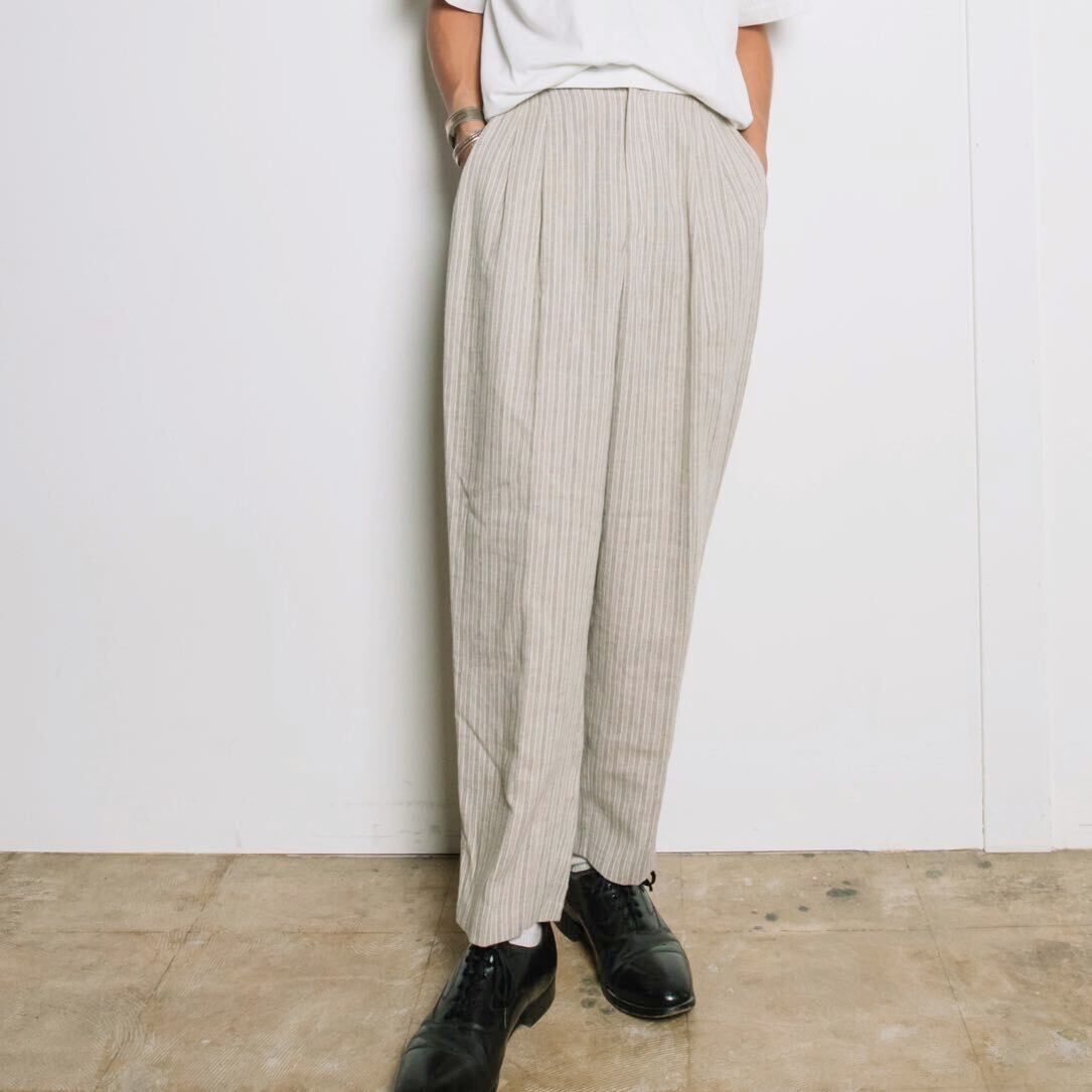 夏用パンツとして特に涼しい素材であるリネンが使用されたストライプスラックスです。