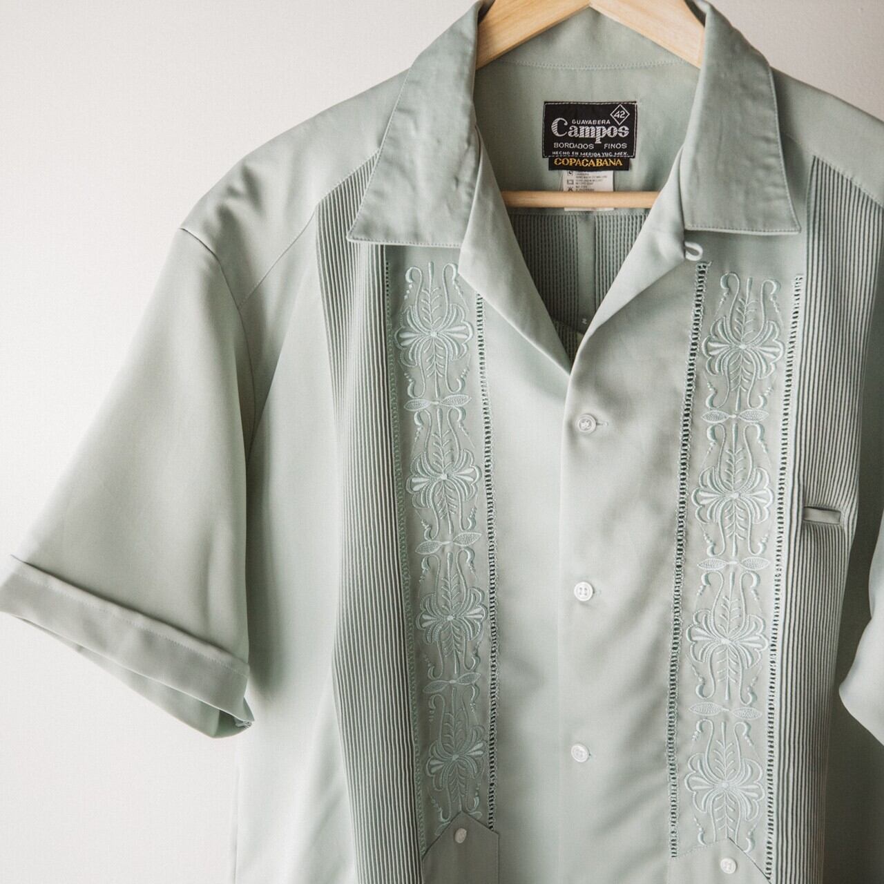 キューバシャツといえば4ポケットのイメージが強いですが、こちらのように2ポケットのタイプもあります。2ポケットのタイプはより上品なイメージとなります。