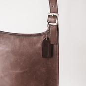 薄く平べったいデザインで作られたCOACHのレザーバッグ。