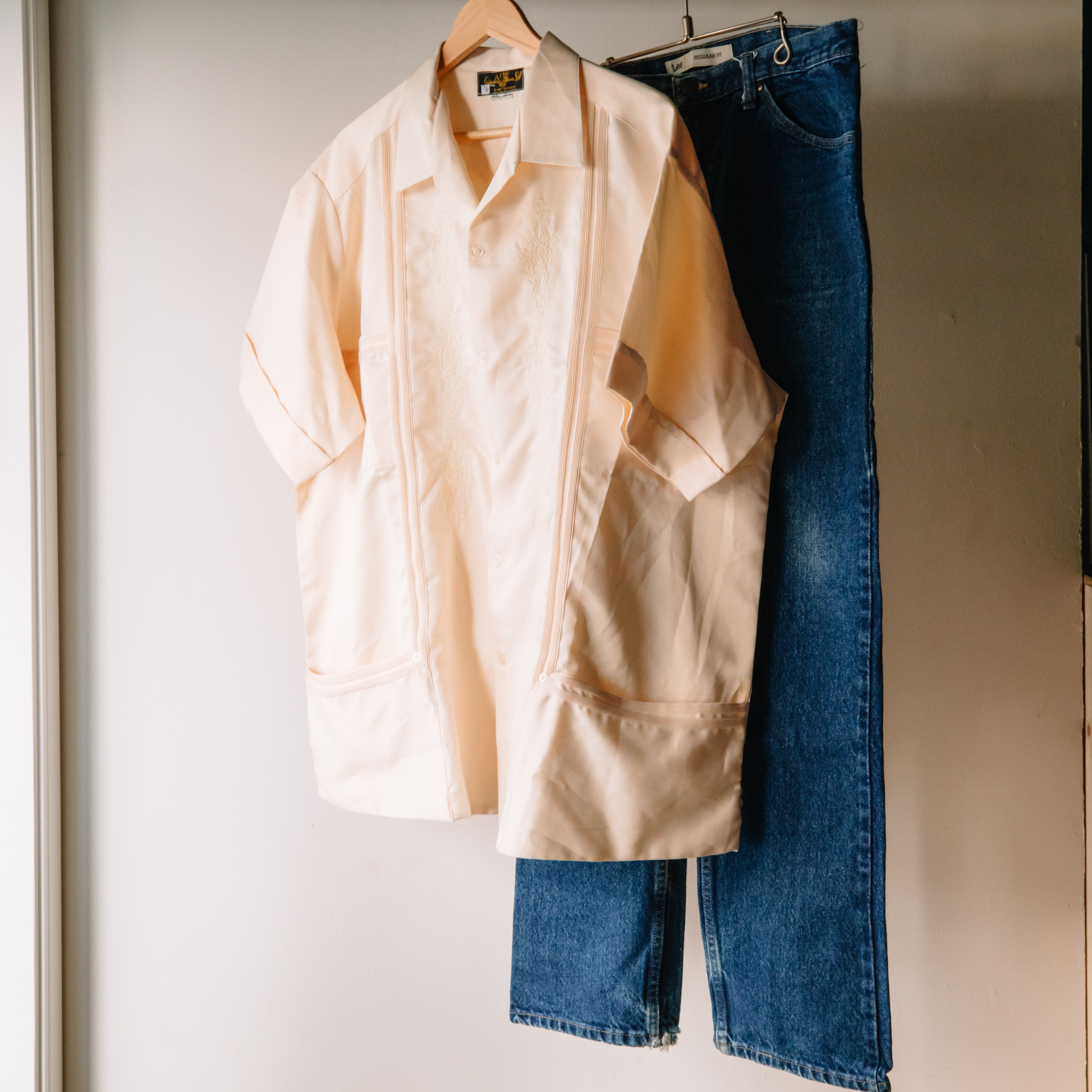 スーパービッグ キューバシャツセット (4XLキューバシャツ、W38デニムパンツ)