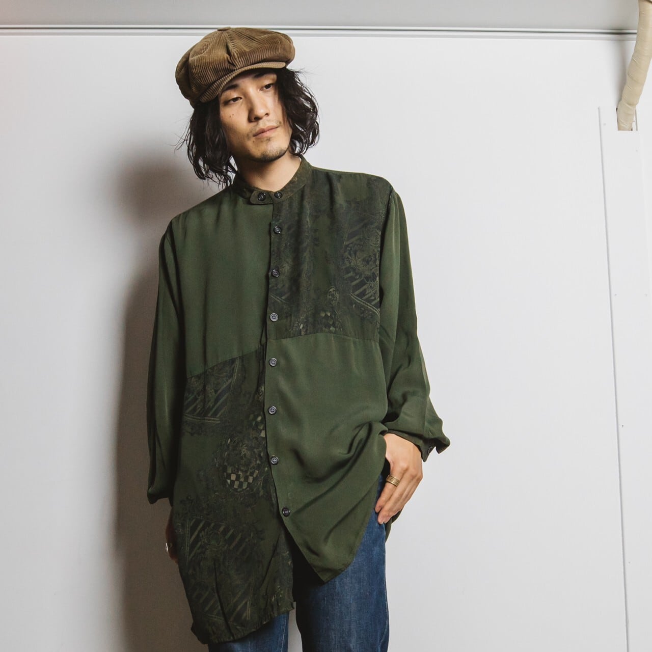 90年代頃のデザインノーカラーシャツで。