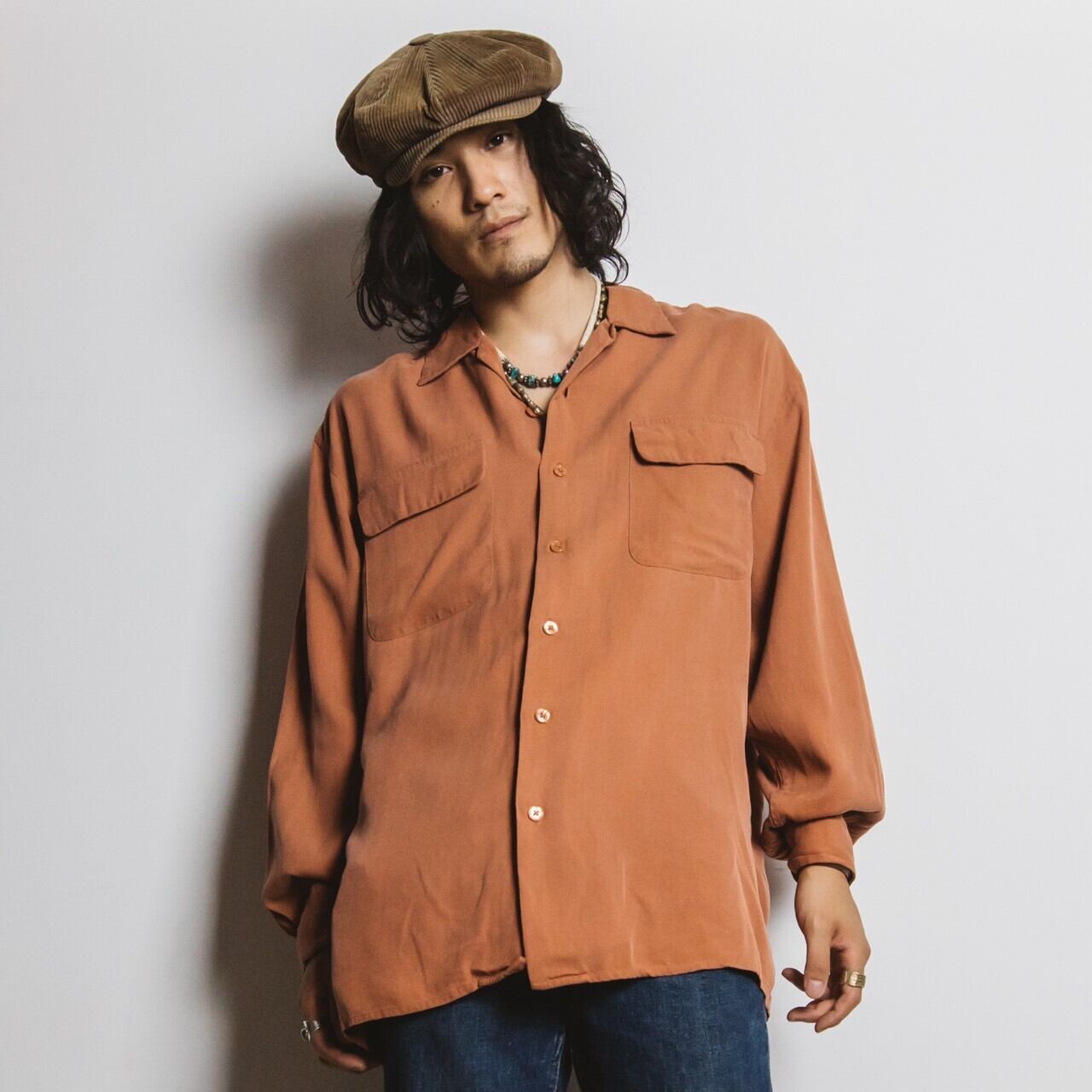 【秋冬アイテム特集】オープンカラー L/S シルクシャツ オレンジ【0904T04】