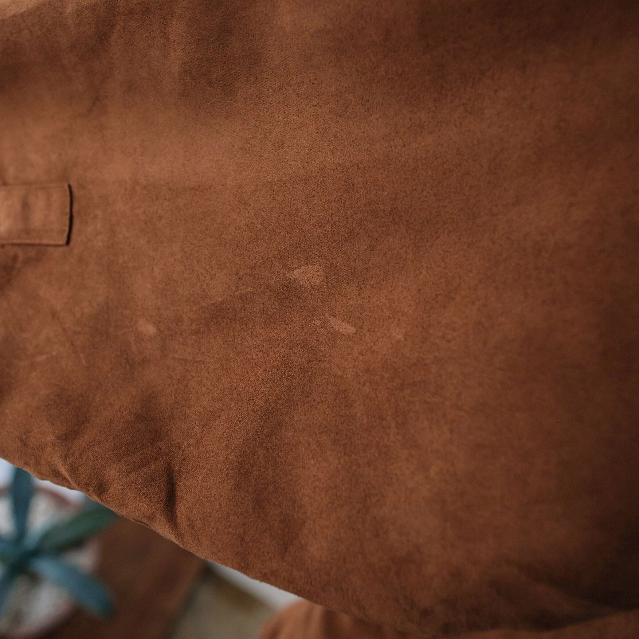 本物のスエードはレザーなので着づらさがありますが、こちらはポリエステルで作られたフェイクスエード素材。