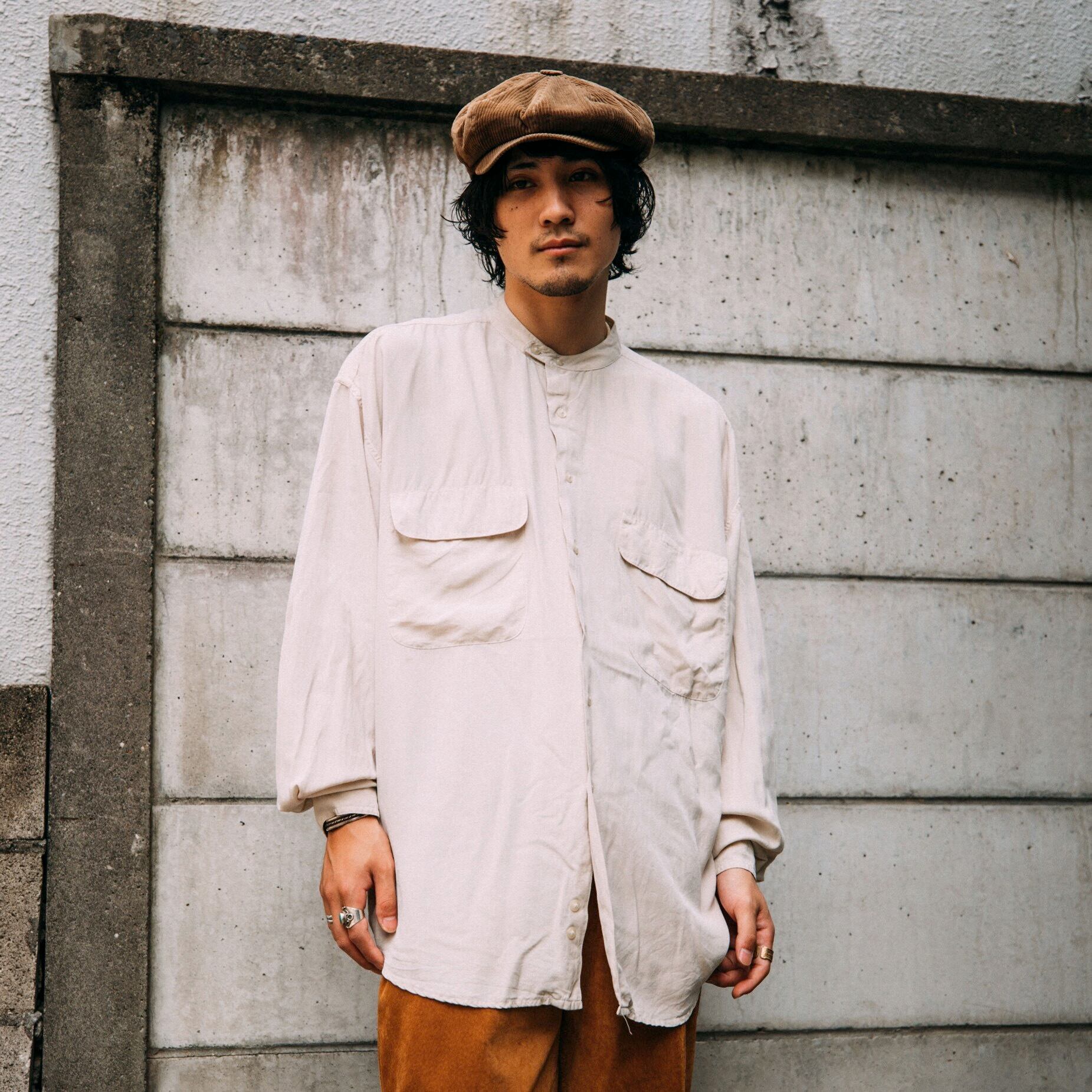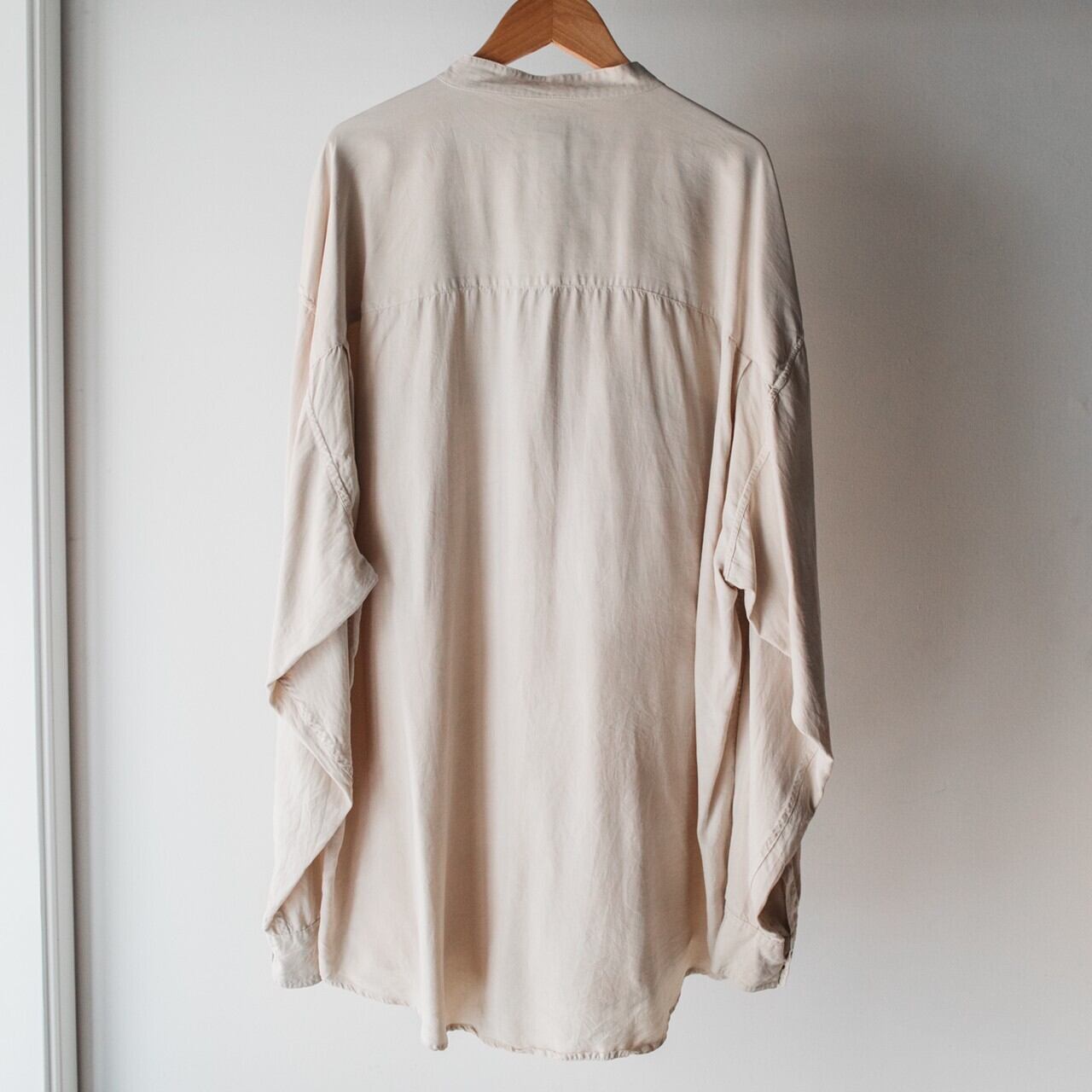 【秋冬アイテム特集】バンドカラー SILK オフホワイトシャツ 【0918A8】