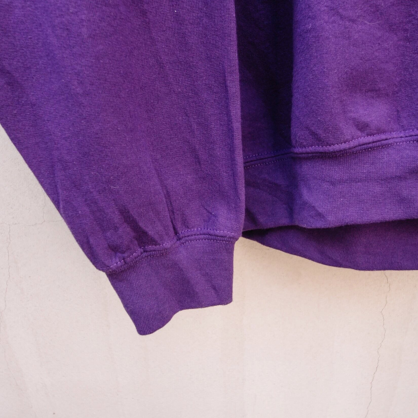 パープルボディのフロントとバックにプリントが入ったスウェットです。