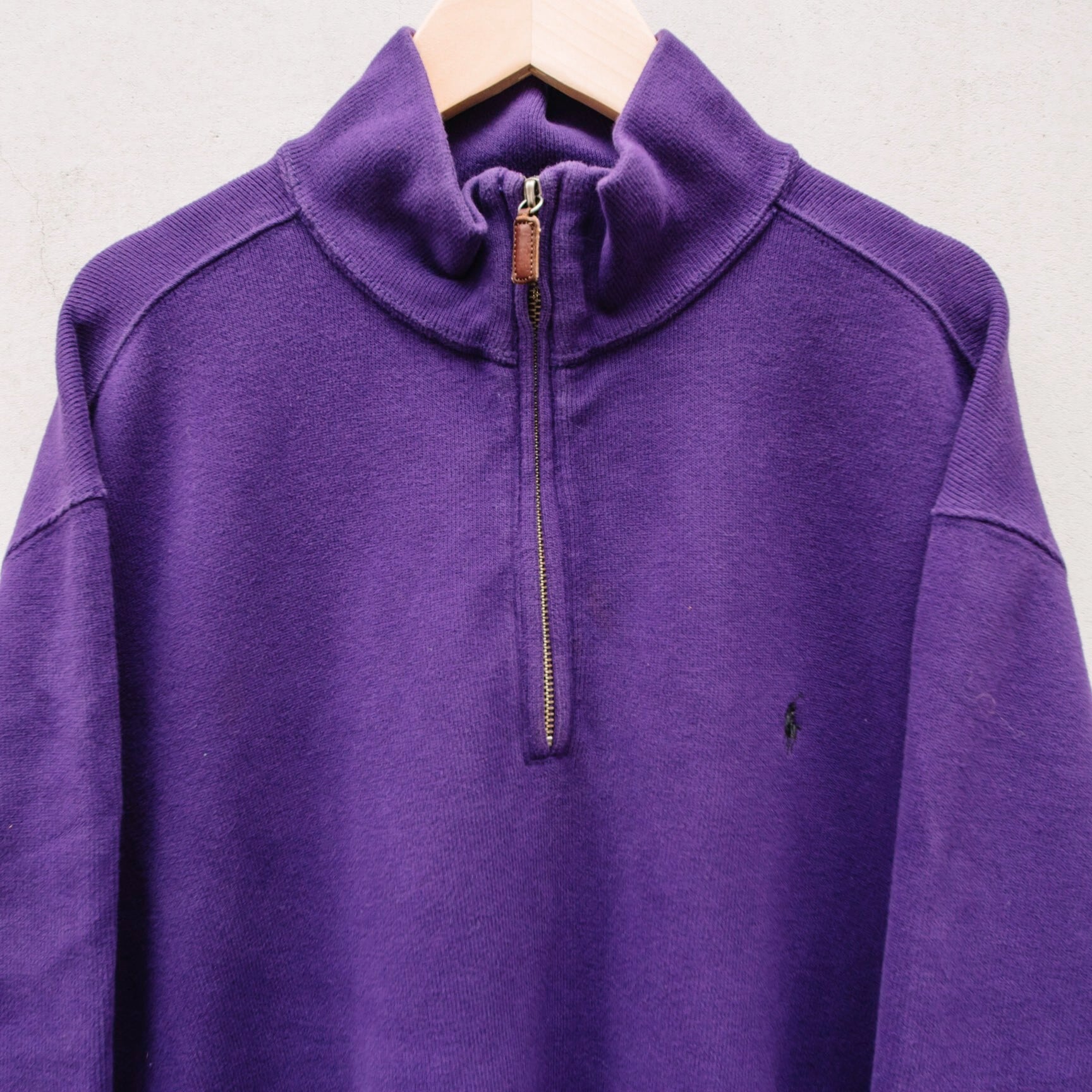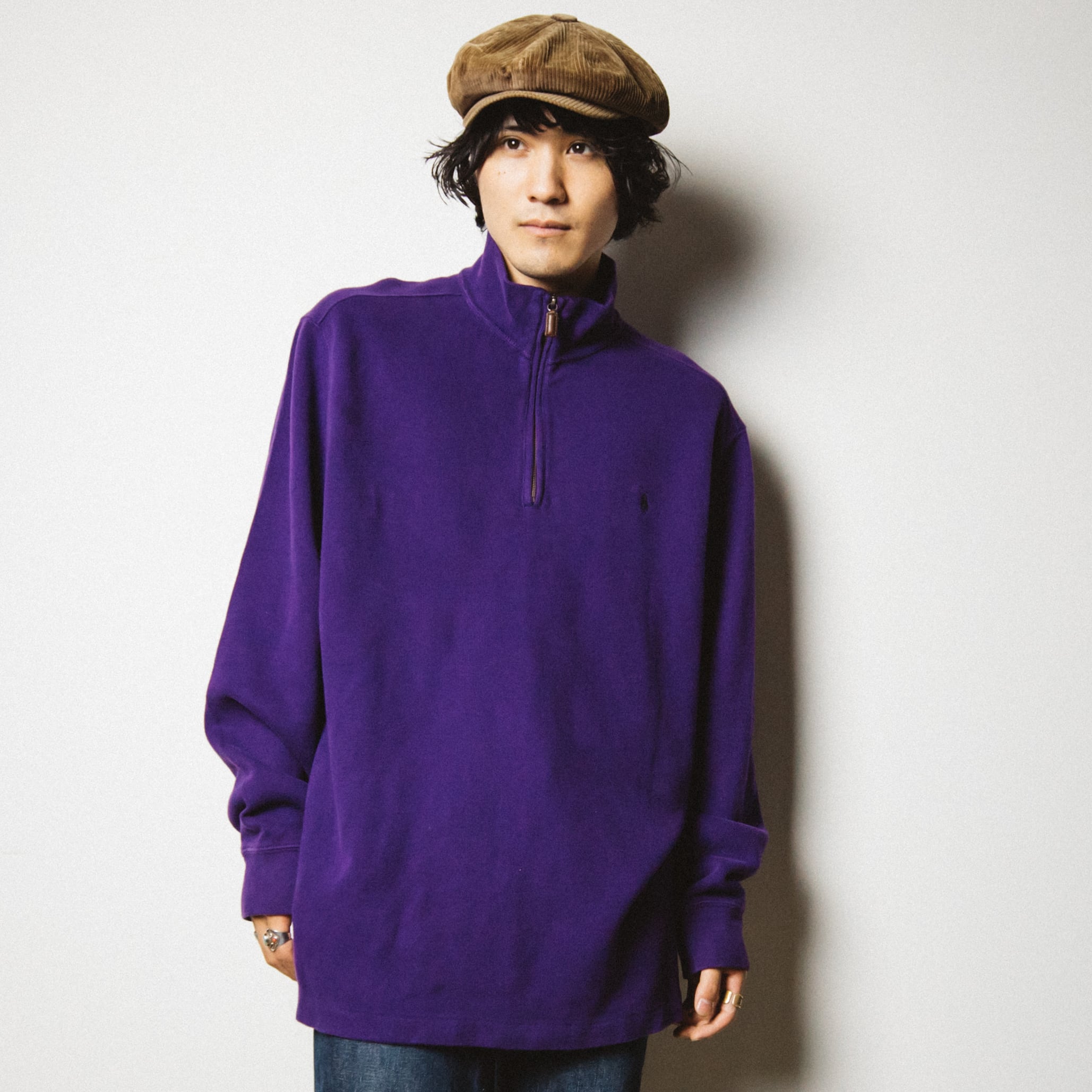 POLO Ralph Laurenのパープルカラーハーフジップスウェットです。