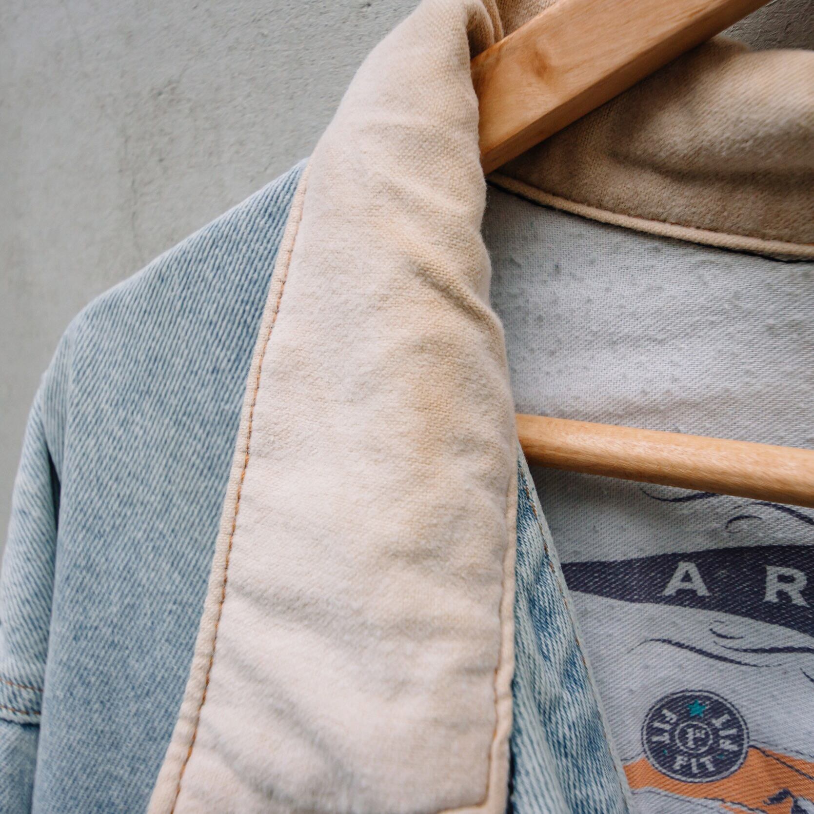 襟の生地が切り替え仕様となっているアイスウォッシュデニムジャケットです。