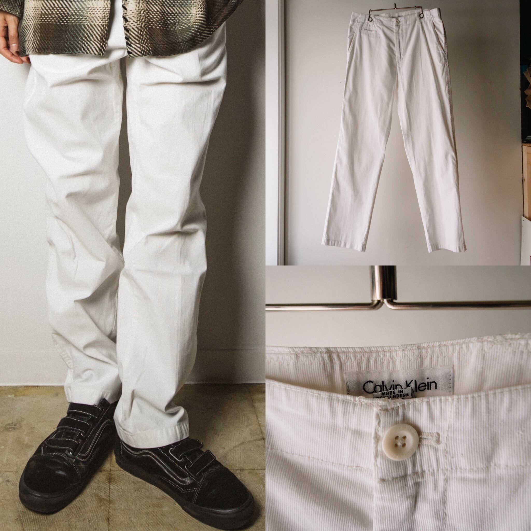 Calvin Klein 白コットンパンツ W32【0925A57】