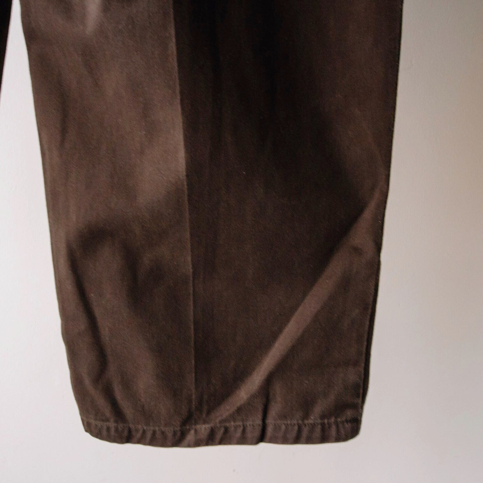 当たる照明によって見える色合いが変わる不思議な色合いのチノパンです。