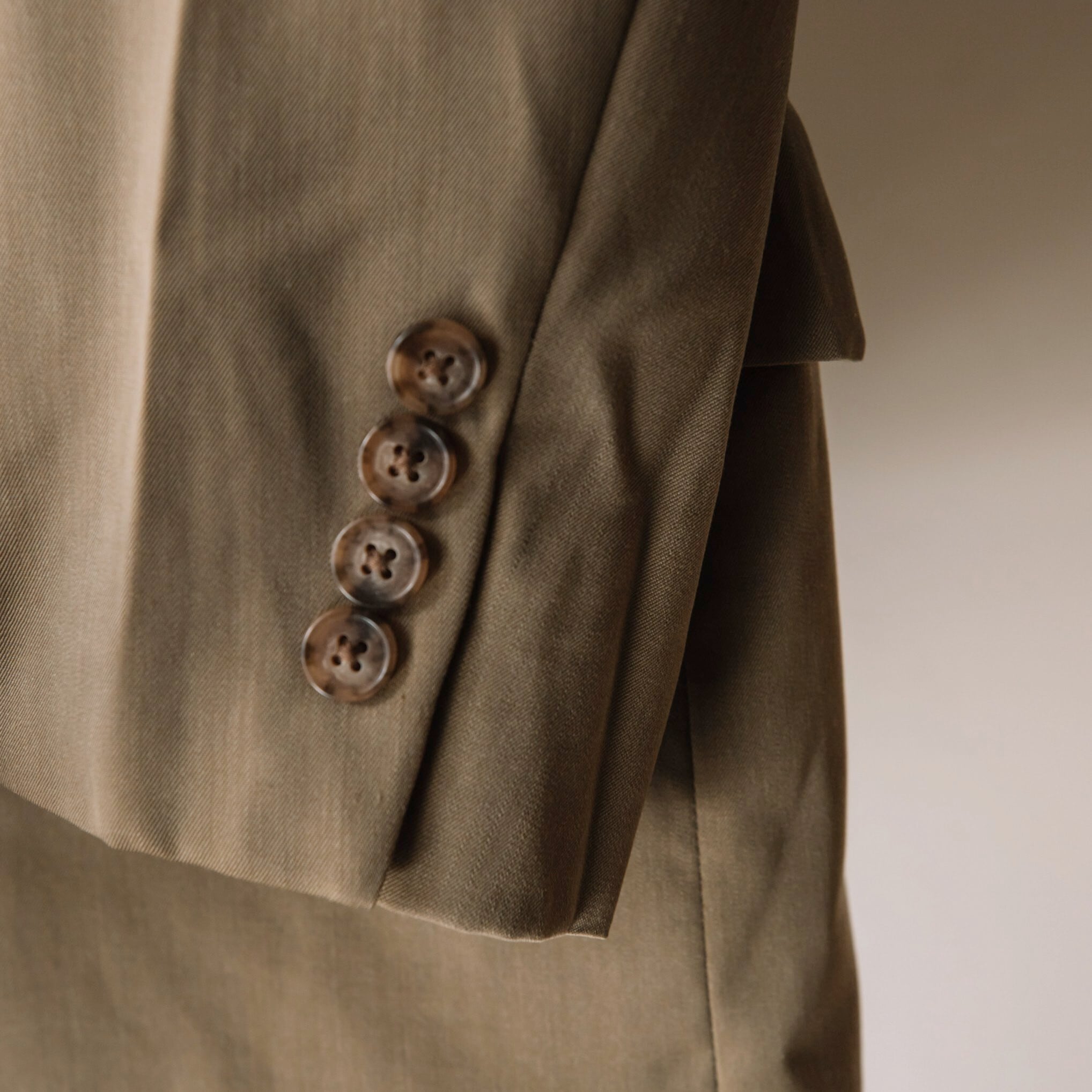 光沢感と滑らかな質感はウールギャバジンならではの代物。この高級感が他との差になるでしょう。こちらもサスペンダーボタン付きとなります。